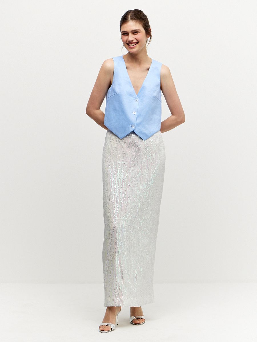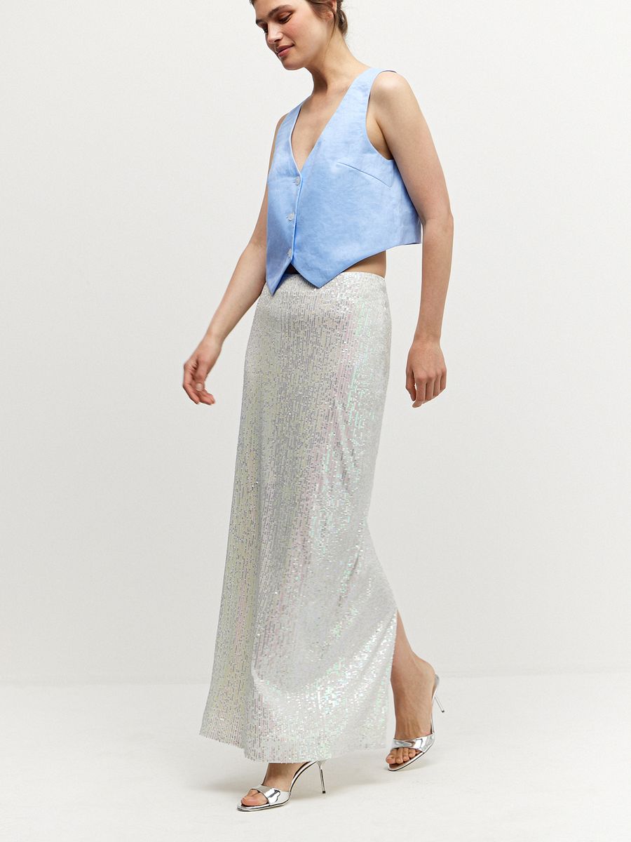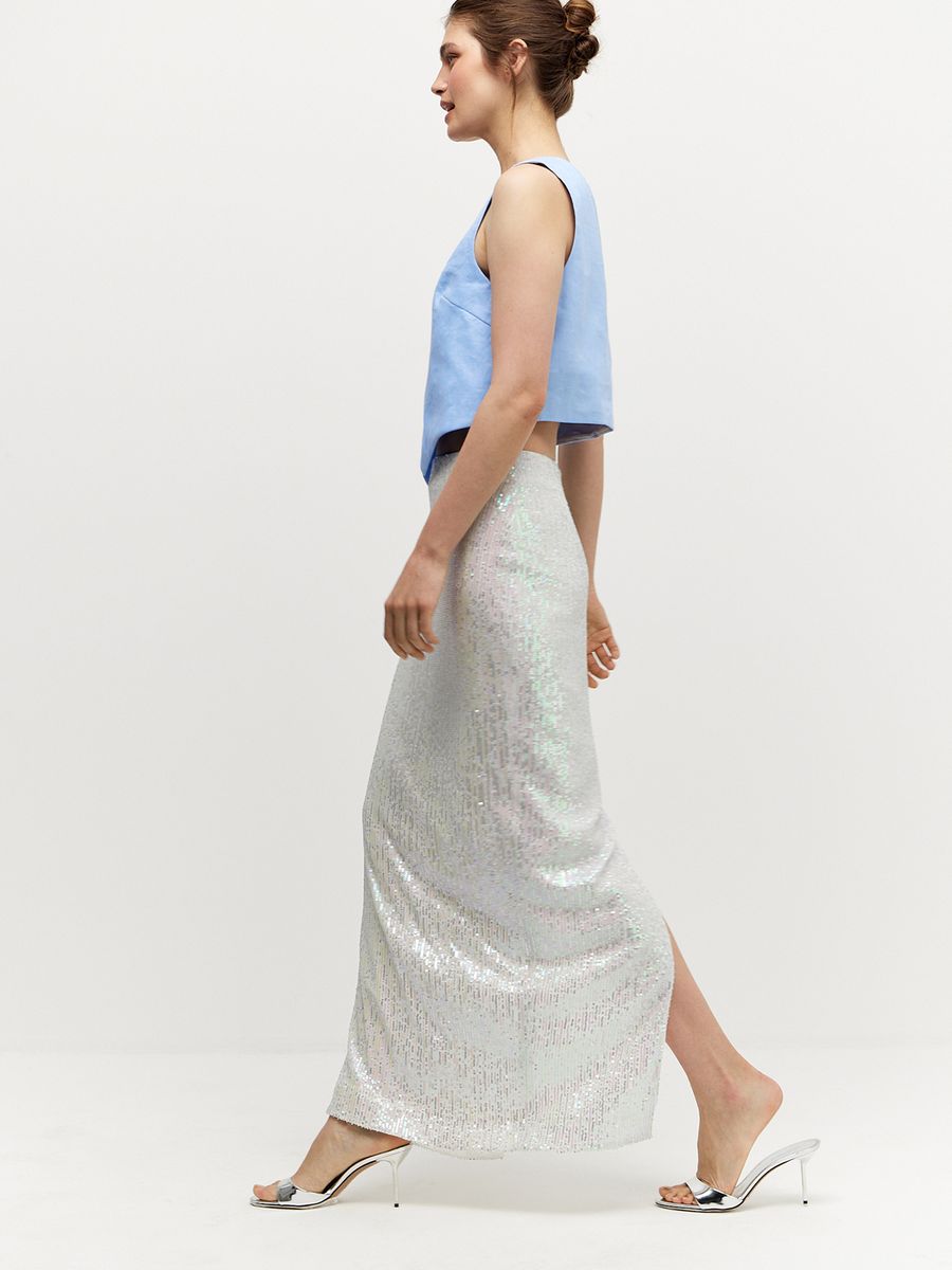 Мягкая юбка-макси из россыпи пайеток — наш особенный фаворит гардероба. Тот самый вариант, с которым можно с легкостью стилизовать роскошный образ для любой вечеринки или просто без повода создать себе праздничное настроение. Но мы обычно предпочитаем второй вариант.