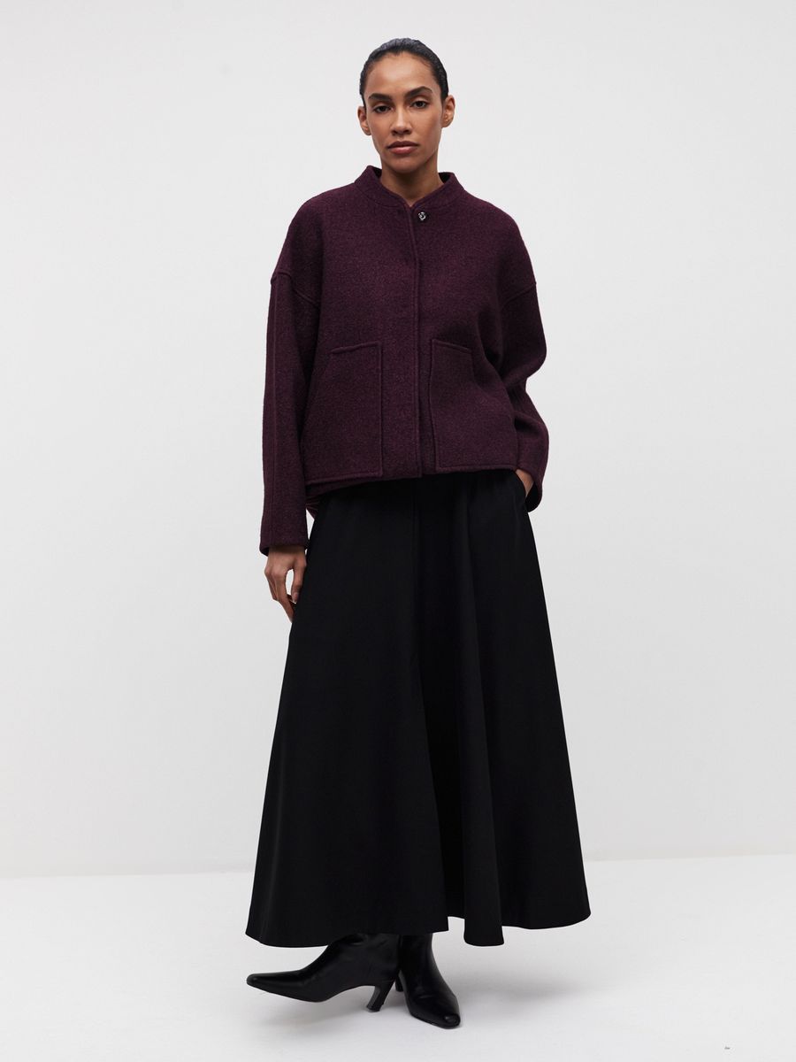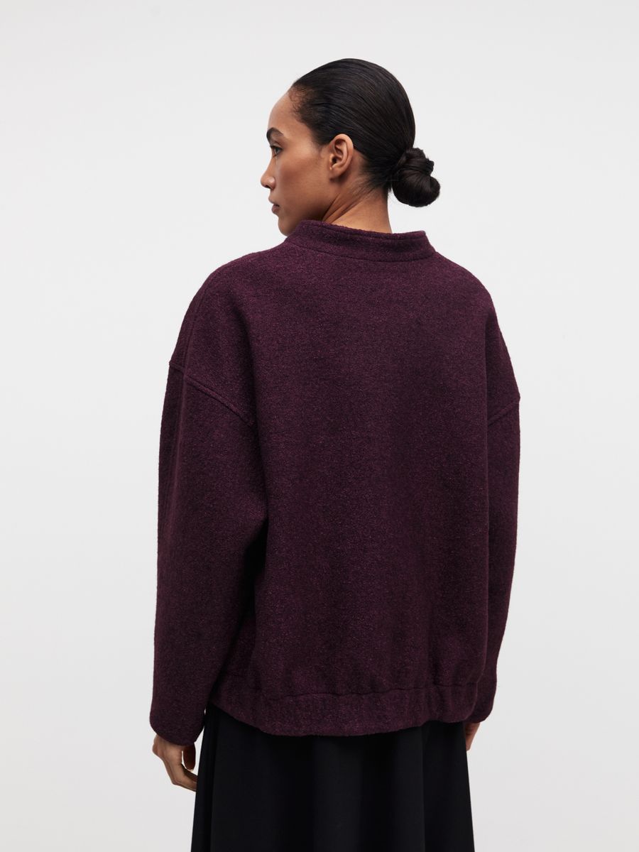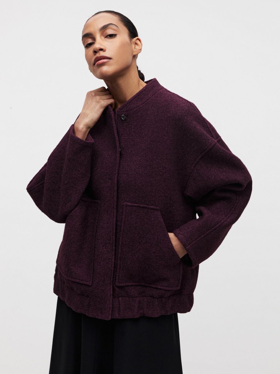 Объемный бомбер Warming Liqueur — как согревающий глоток ягодного напитка в прохладный весенний день. Мягкий материал из шерсти словно обнимает, придавая ощущение комфорта, а насыщенный цвет добавляет нотку дерзости в любой образ.