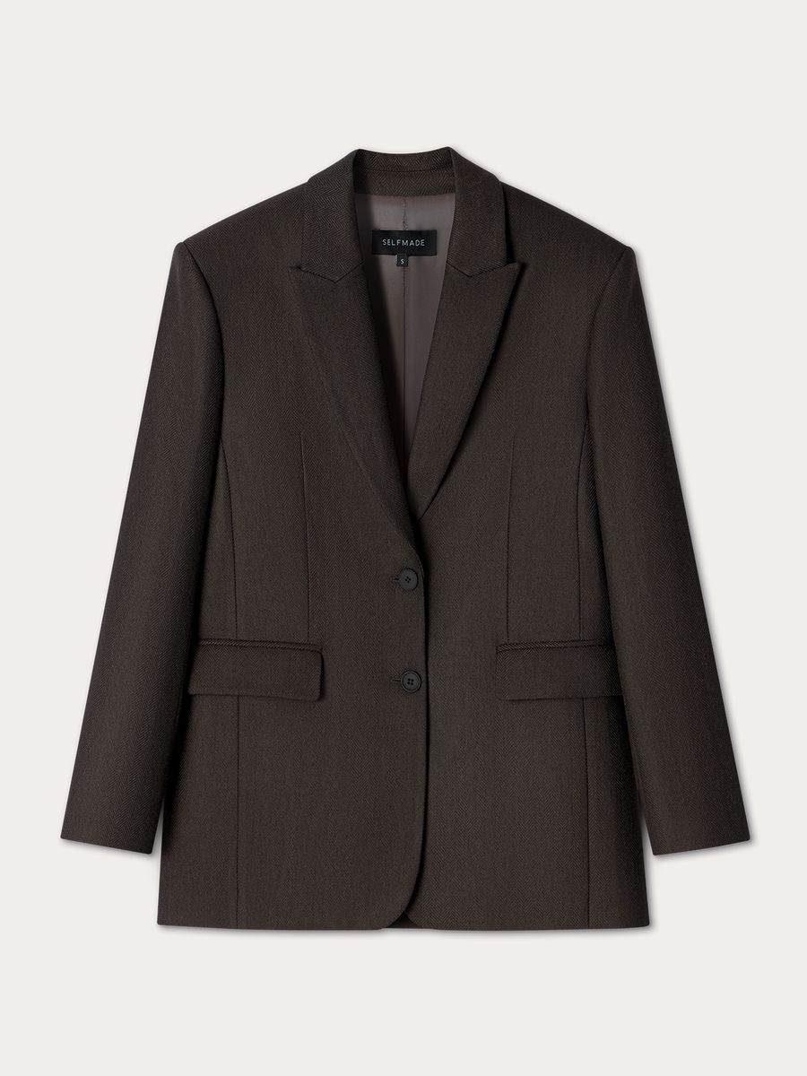 Свободный жакет Timeless Elegance — дань классике, которая никогда не выходит из моды. Его мягкий объем и строгие линии — аллюзия на архив лучших силуэтов 80-х, переосмысленных для современной городской эстетики. Глубокий оттенок и фактура ткани подчеркивают настроение осени, а продуманный крой делает жакет универсальной основой для образов в духе power dressing. Носите с брюками-palazzo или утонченной юбкой из той же ткани, чтобы усилить эффект и подчеркнуть сдержанную элегантность.