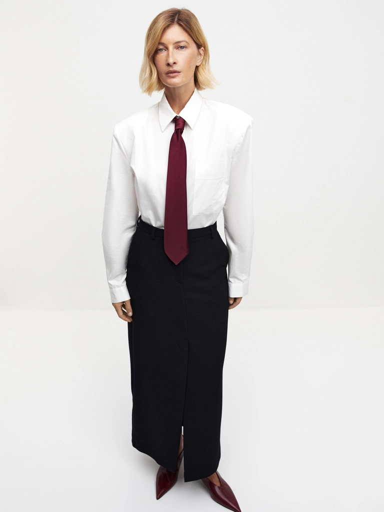 Oversize жакет Power Dressing прямого силуэта — словно позаимствованный из гардероба того самого надежного плеча, на которое можно положиться. Эта модель идеально подчеркнет вашу хрупкость и женственность, позволяя интерпретировать свое видение power dressing. Создаем с его помощью одновременно строгий и изящный образ, который станет вашим верным спутником в покорении осеннего мегаполиса. Расширенная линия плеча добавляет эффектную структуру, а oversize крой придает трендовую непринужденность. Идеально сочетается с костюмными брюками stright или юбкой Office Core, позволяя создавать по-настоящему эффектные сеты. Завершите образ крупными украшениями и лаконичными аксессуарами в духе иконической Линды Евангелисты.