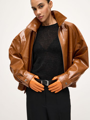 Перчатки из натуральной кожи statement piece — тот самый айтем, способный сделать любой базовый образ модным заявлением. Насыщенный цвет и роскошный материал добавляют нотку extra и приковывают внимание. Идеальный аксессуар для тех, кто знает — дьявол кроется в деталях. Выбираем оттенок по настроению и спешим создавать модные аутфиты для динамичной осени в большом городе. Универсальные перчатки эффектно сочетаются с любой верхней одеждой: элегантными пальто, дерзкими косухами и casual бомберами.