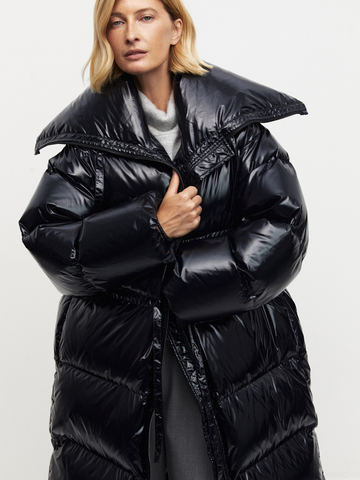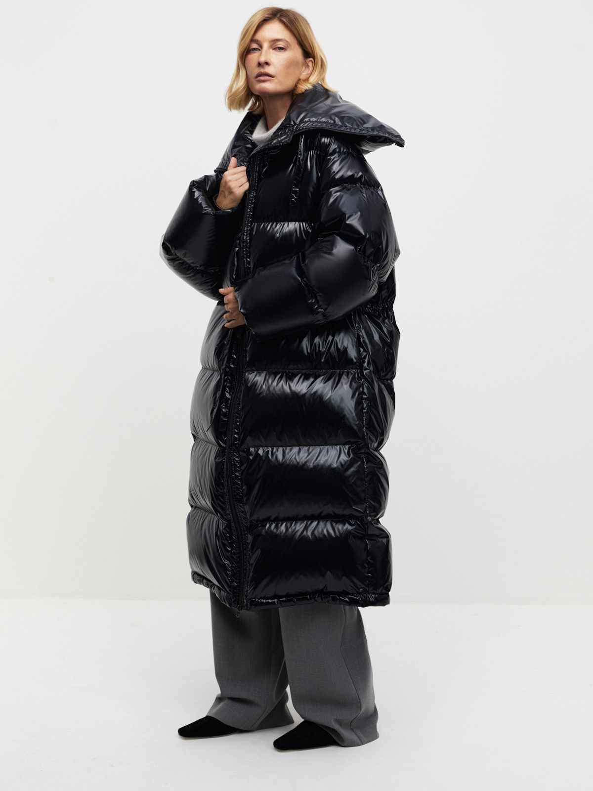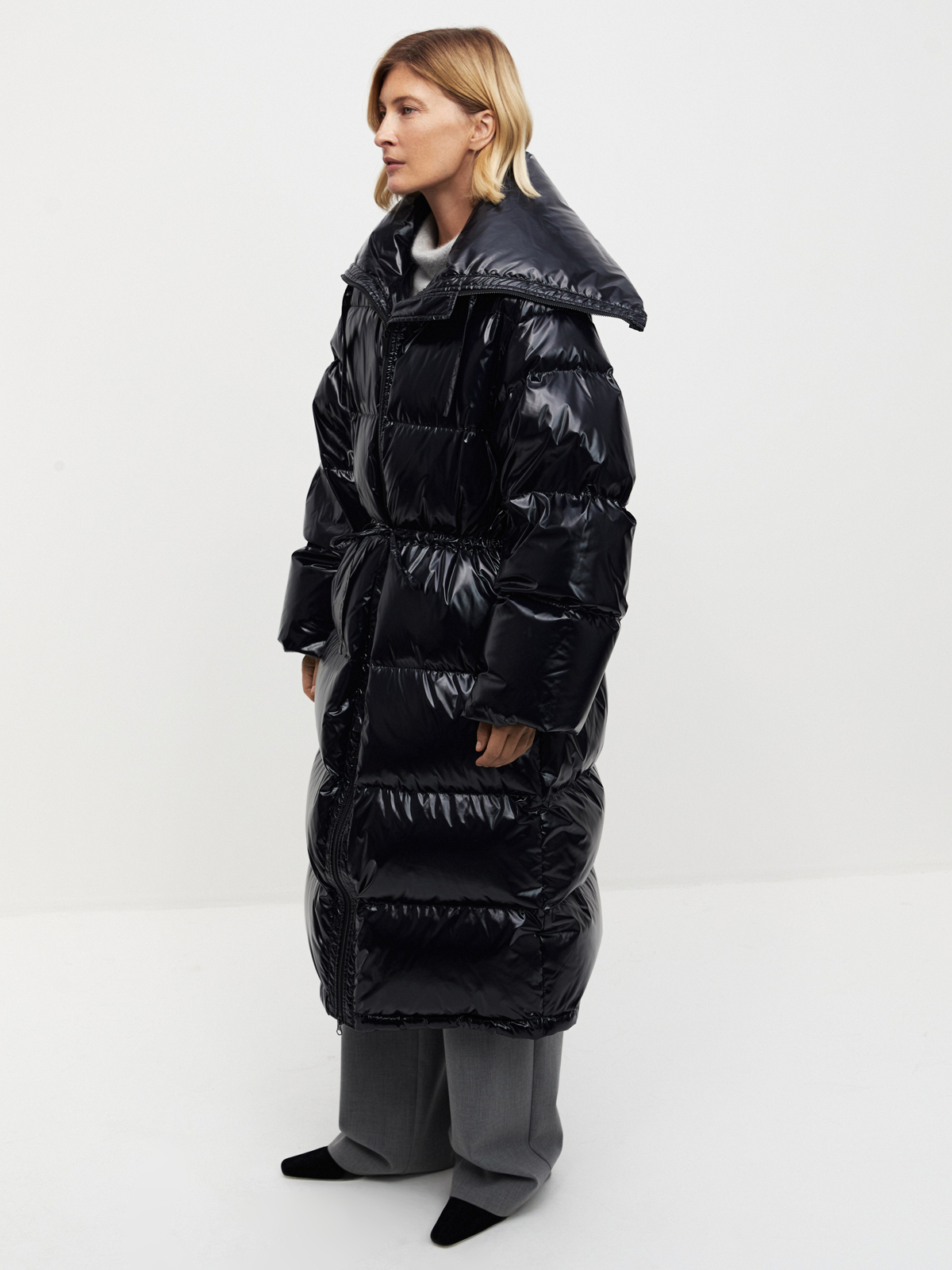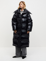 Удлиненный пуховик maxi glossy идеален для зимних дней, когда хочется максимального комфорта и уюта, не отказываясь от эффектного образа. Его глянцевая поверхность привлекает внимание, добавляя выразительности любому выходу, а продуманные детали делают его максимально функциональным. Высокий воротник-стойка надежно защищает от холодного ветра, а разрез сзади, который можно легко расстегнуть или застегнуть, адаптируется к вашим потребностям и погодным условиям. Благодаря кулиске на поясе, можно подчеркнуть талию для более приталенного силуэта или оставить пуховик прямым, создавая расслабленную стилизацию. Универсальная модель для городской зимы, где эстетика и практичность сочетаются в одном изделии.