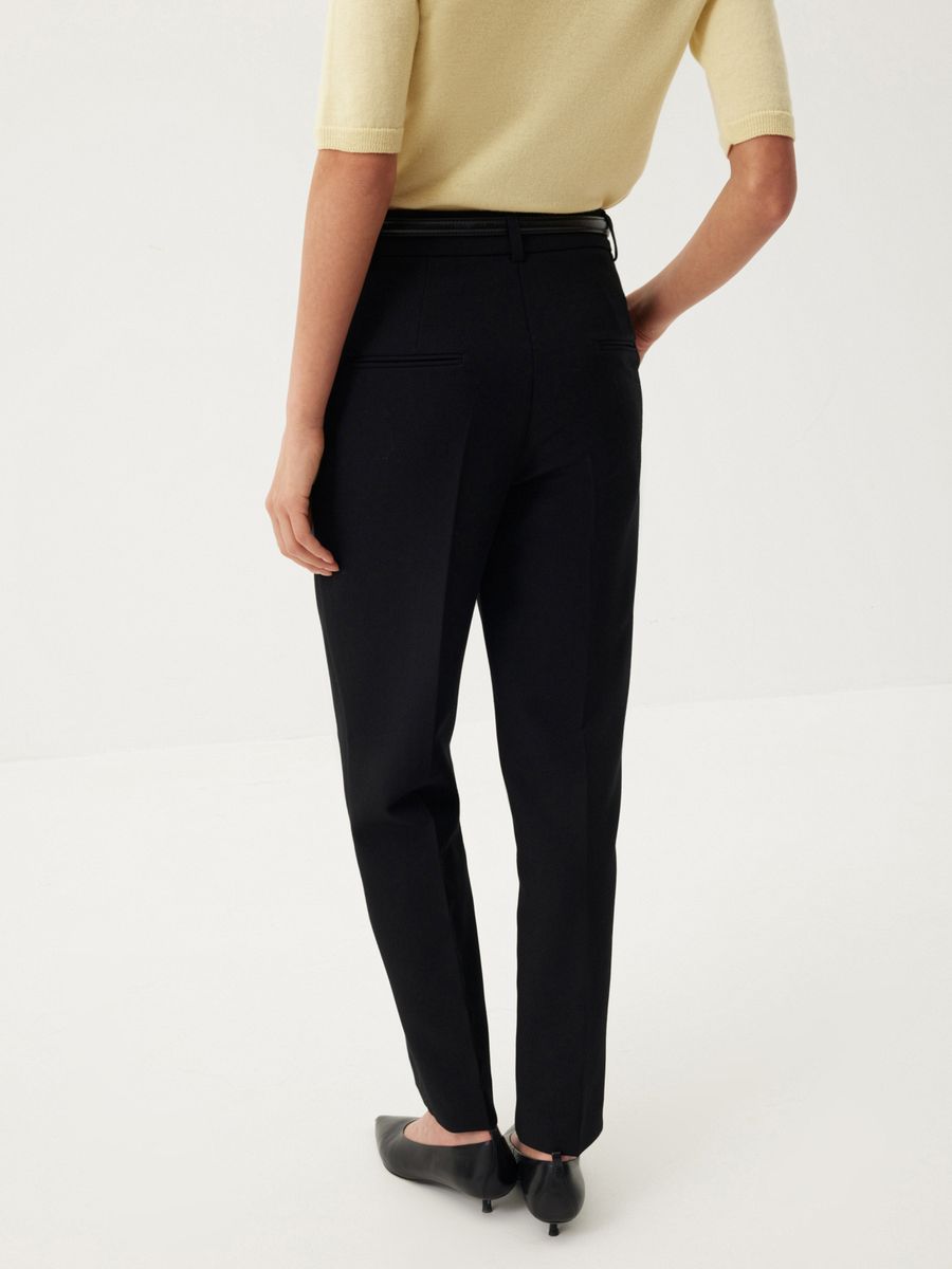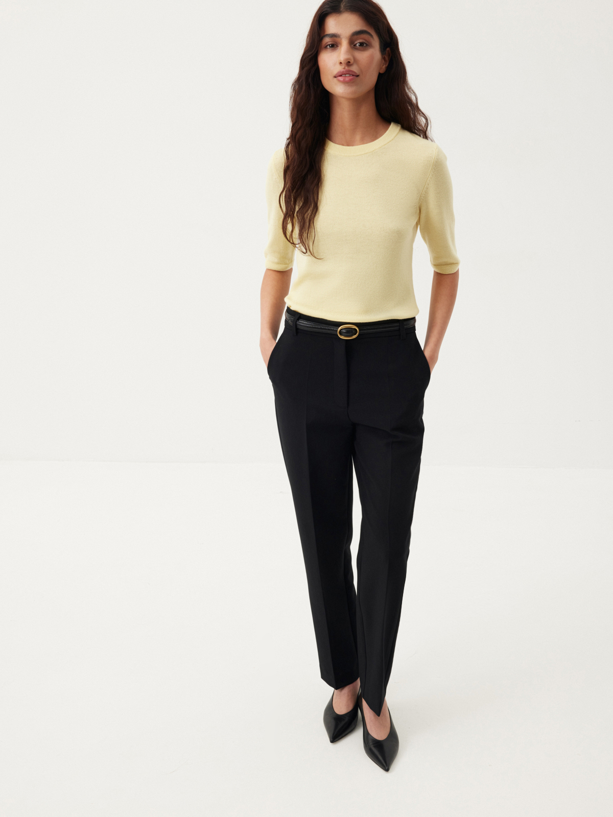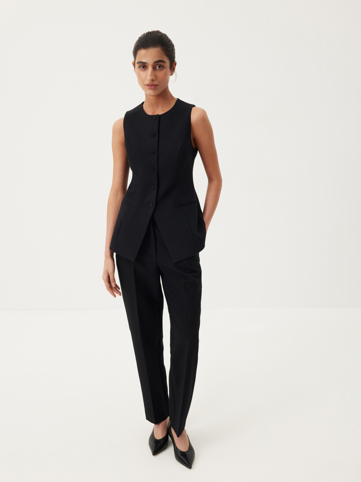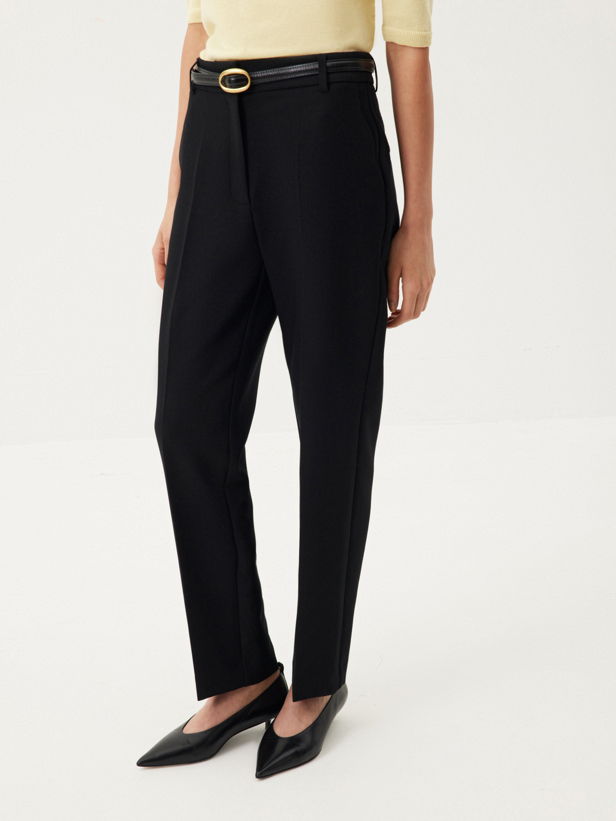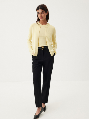 Лаконичные брюки Tailoring — сочетание мастерски выверенного кроя и современного взгляда на классику. Сужающийся книзу силуэт со строгими стрелками и четкими прямыми линиями придает образу графичности. Минималистичная модель из плотной костюмной ткани, незаменимая для деловых образов и особенных случаев, — идеальная инвестиция в базовый гардероб. Носим брюки в сдержанном ахроматическом дуэте с рубашкой из хлопка Daily White, совершенном в своей простоте, или собираем освежающий сет со светло-желтым кардиганом и топом из мягкой шерсти.