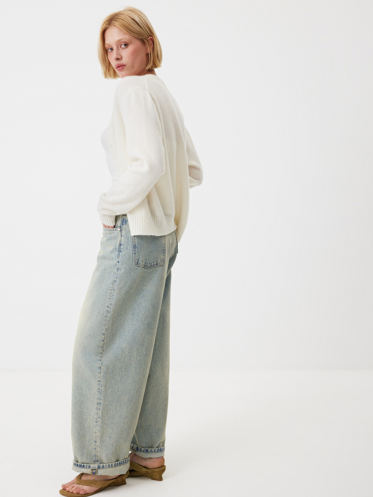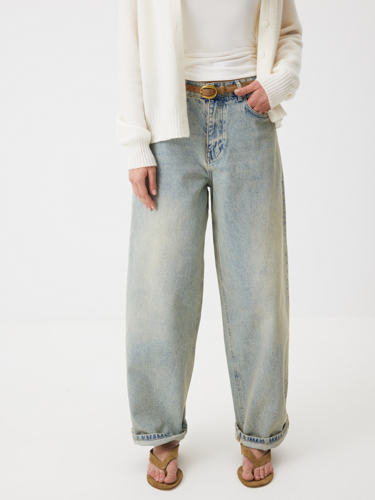 Джинсы, созданные для неспешных прогулок по городу, встреч с друзьями в любимых кофейнях и спонтанных поездок за пределы мегаполиса. Свободный силуэт, высокая посадка и идеально выверенный винтажный оттенок делают их той самой парой, к которой хочется возвращаться снова и снова. Сочетаются со всем, становятся незаменимыми в гардеробе и уверенно занимают место любимых джинсов на долгое время.