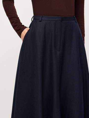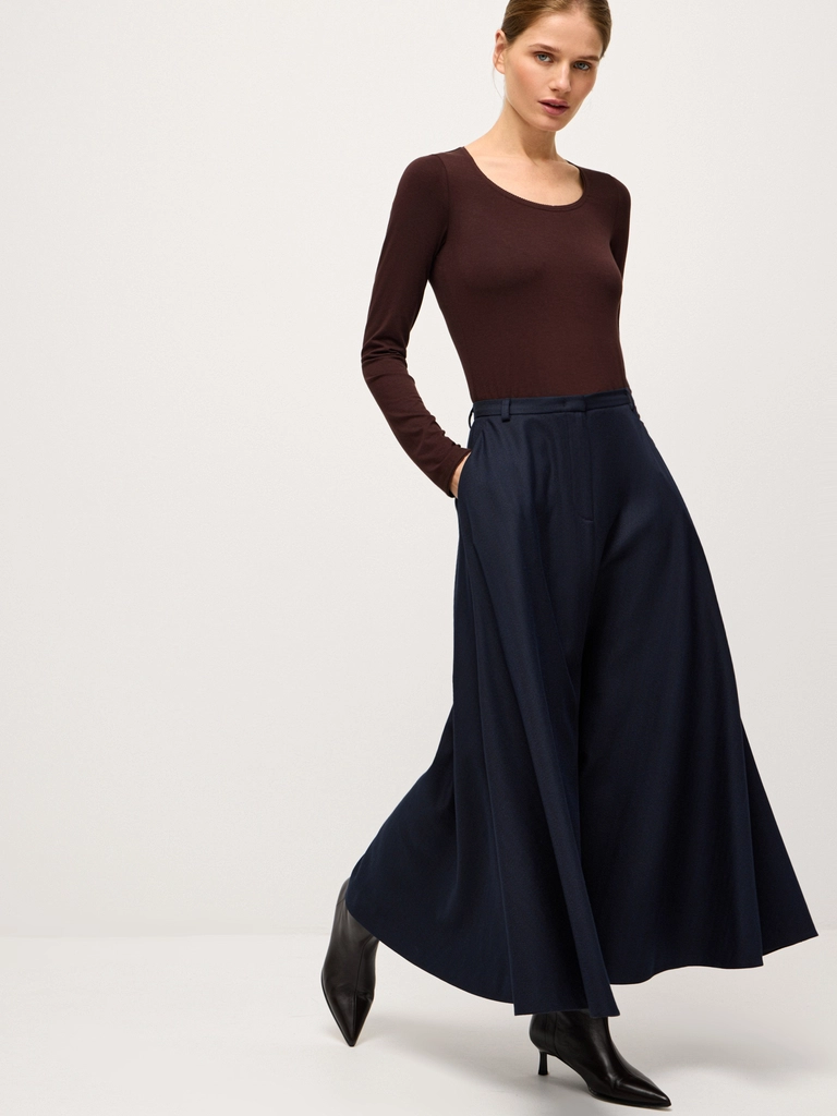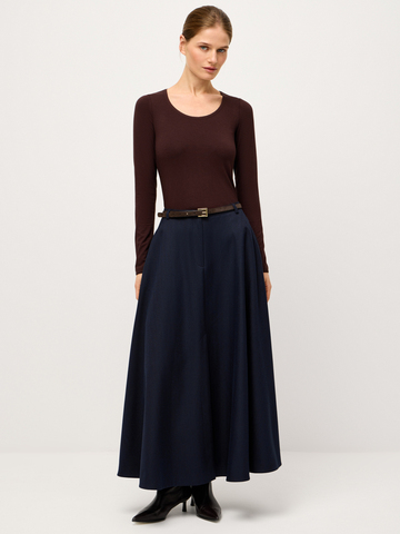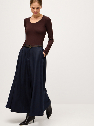 Изящная юбка Morning rush — бескомпромиссный выбор для женственных образов в динамичном ритме большого города. Красота модели раскрывается в движении благодаря расклешенному крою с мягкими складками и эффектными разрезами спереди и по спинке. Еще один акцент — глубокий оттенок полуночного неба, он идеально сочетается с палитрой холодного сезона и вносит свежий взгляд на классические стилизации. Добавляем утонченный лонгслив Underwear и подчеркиваем талию с помощью замшевого ремня Sleek — элегантность, актуальная для любых планов: от офисных будней до прогулки по городу после воскресного бранча.