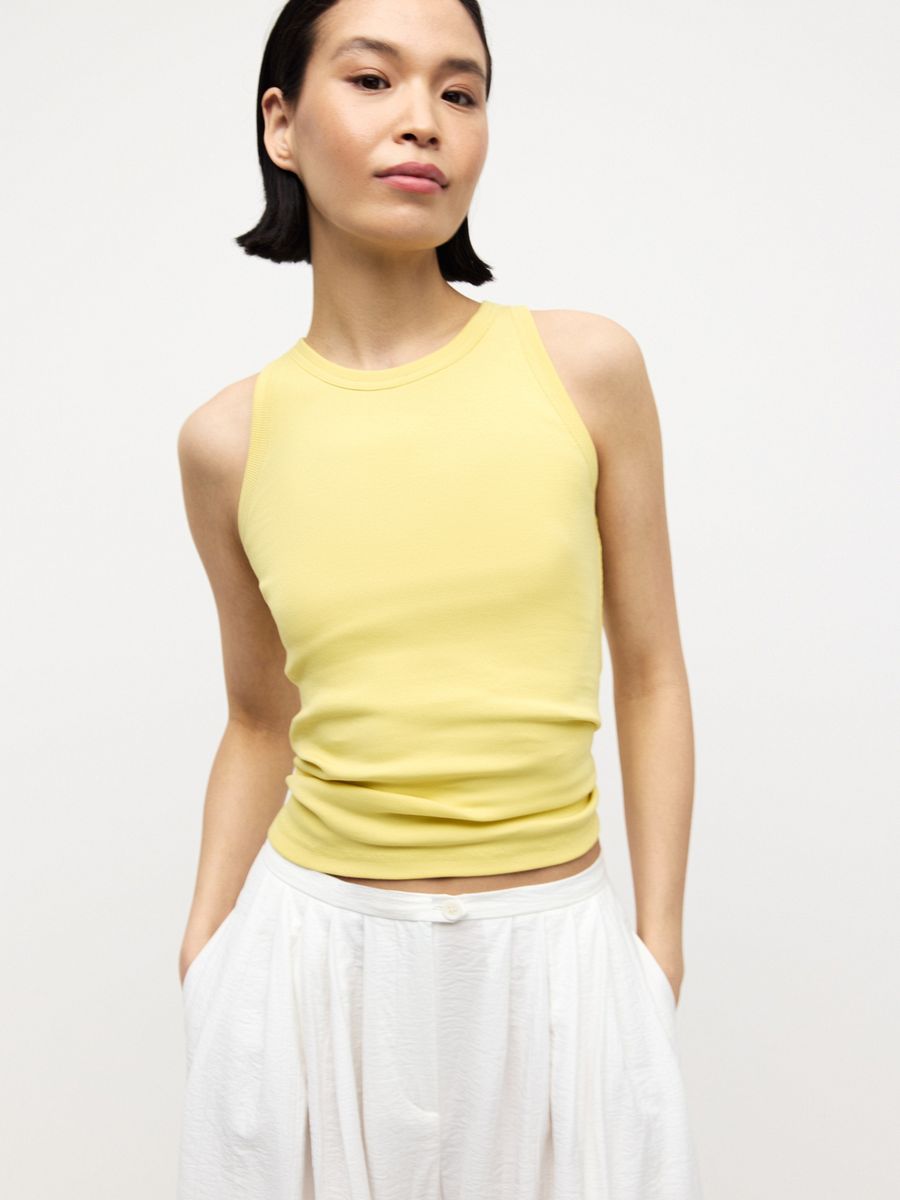 Базовый топ-халтер lemon sorbet — как первый глоток лимонада в жаркий полдень или освежающий лимонный сорбет: необходимый, яркий и по-летнему дерзкий. Его оттенок, легкий и игривый наполняет образ динамикой и выразительностью. Плотная натуральная ткань идеально ложится по фигуре, подчеркивая ее естественные линии, а открытые плечи и деликатный вырез помогут сделать образ одновременно свободным и собранным. Минималистичное и комфортное исполнение делают его базой, к которой хочется возвращаться снова и снова.
