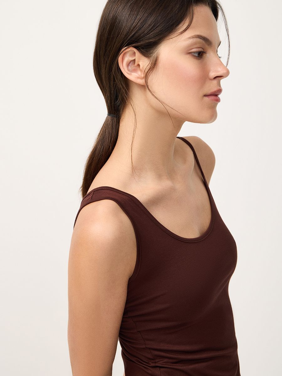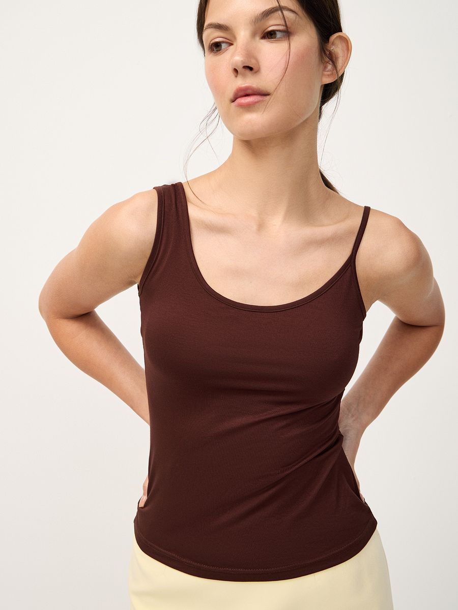 Асимметричный топ Two Type — игра на контрастах и графичное переосмысление базовых изделий. Модель, в которой два силуэта соединены в одном. Ассиметричные бретели делают топ сложным по конструкции и визуально запоминающимся. Сочетайте с брючными костюмами в стиле modern tailoring или любой лаконичной базой — этот топ станет тем самым акцентом, который меняет звучание классического образа.