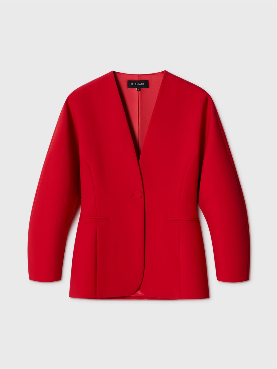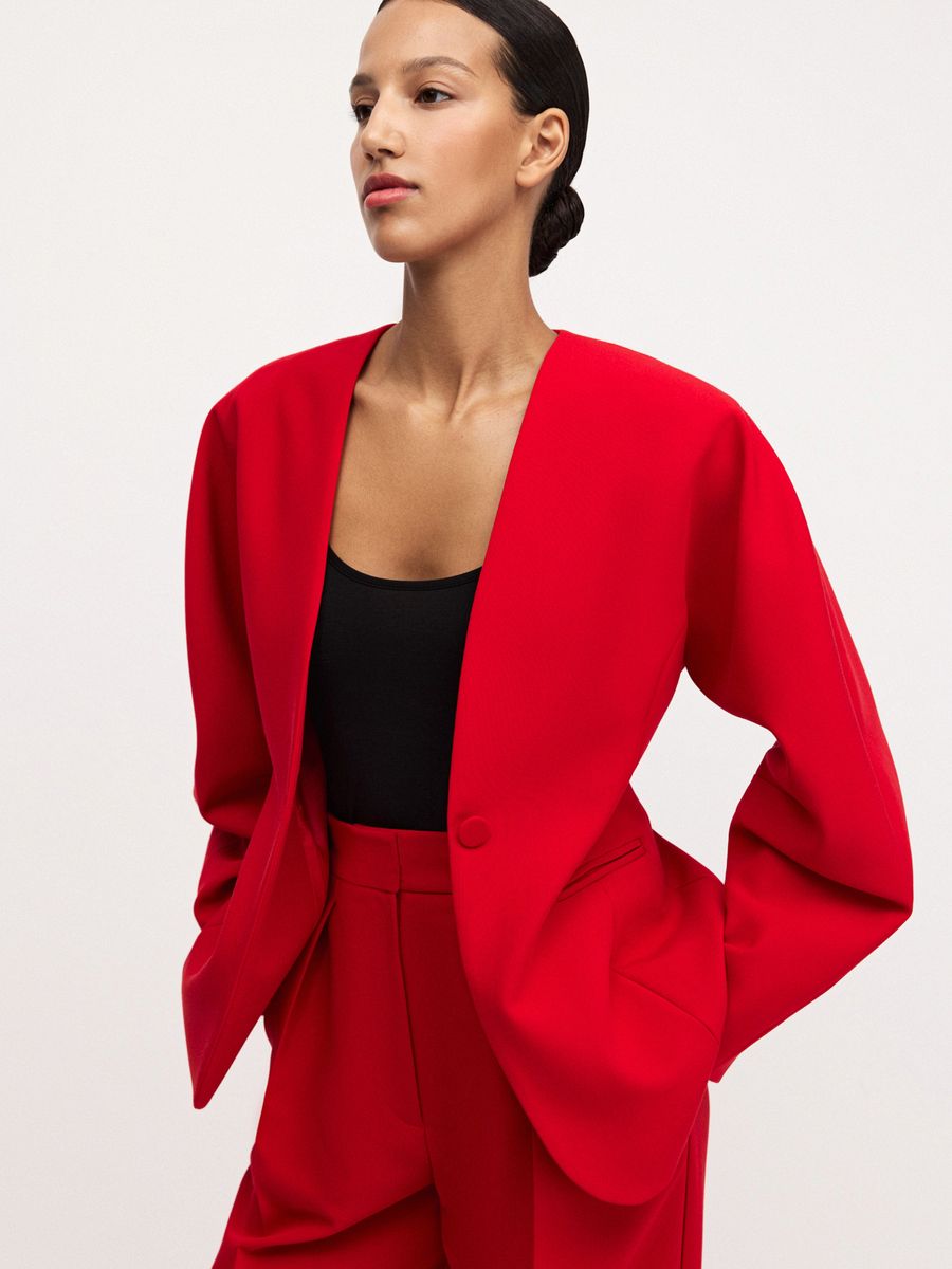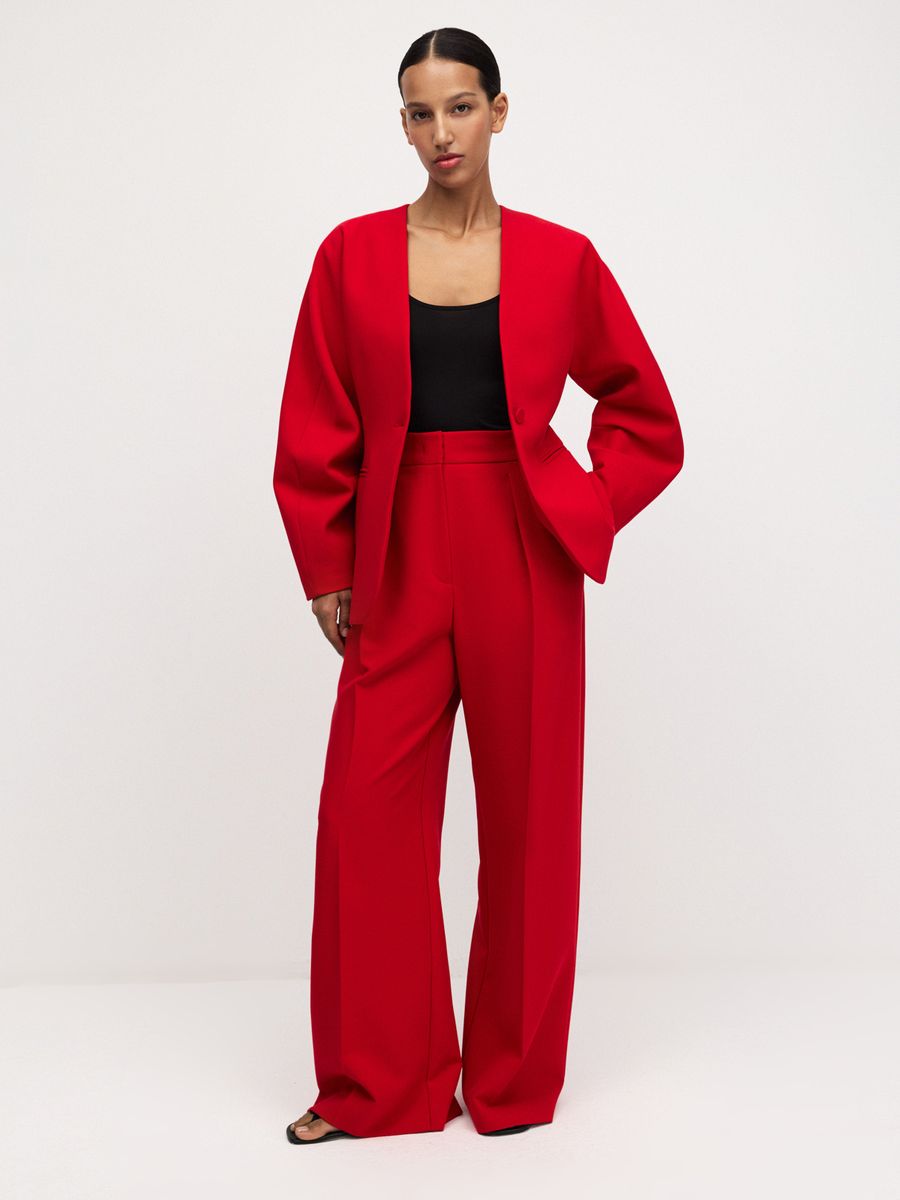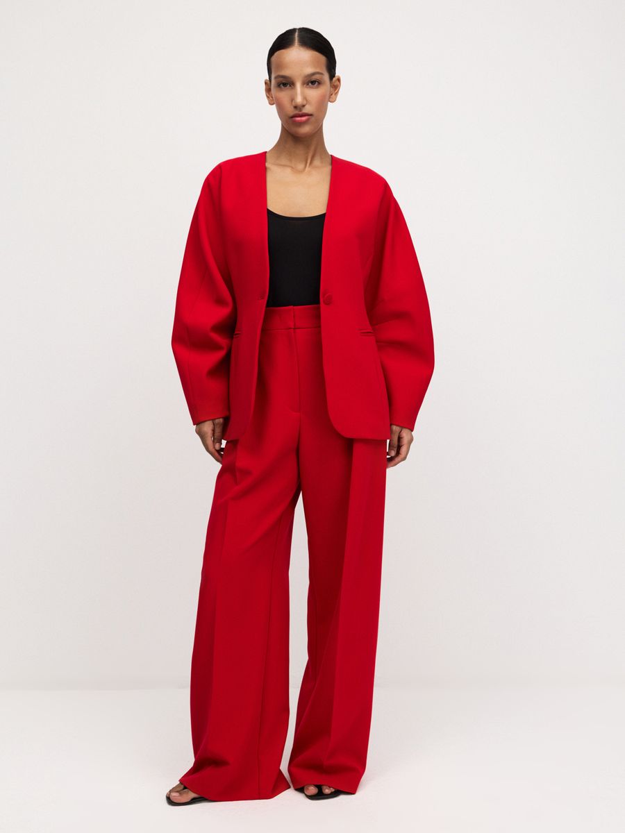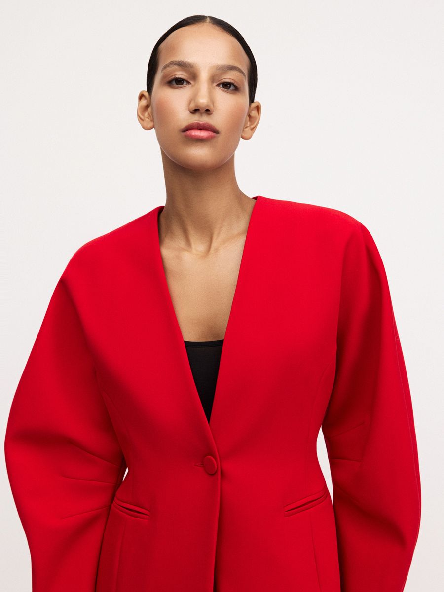 Структурный жакет The Right Red — воплощение графичной женственности и легкой дерзости. Чистые линии, округлые плечи и объемные рукава формируют скульптурный силуэт с мягким акцентом на талию, а благодаря структуре костюмной ткани, жакет отлично держит форму. Идеален в паре с эффектными брюками на высокой посадке того же оттенка — для выразительного и яркого выхода или в комплекте с юбкой длины midaxi Red Mist — настоящее воплощение элегантности и смелости.