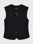 В этой модели жилета из костюмной ткани органично сочетаются классический дизайн и современная эстетика — идеальная комбинация для функционального гардероба. Внимание к деталям создает эстетичный визуальный контраст: приталенный силуэт, расширенная линия плеч, V-образный вырез, подчеркивающий линию шеи. Четкие линии, аккуратный крой и глубокий черный цвет выделяют его строгий минимализм, одновременно создавая впечатление экстравагантности. Жилет станет повседневной заменой футболке или майке на широких бретелях. Функциональная модель, которая станет завещающим элементом для костюма-тройки или главным акцентом в сочетании с джинсами. С непринужденной легкостью выходим в нем на бранч с подругами или в галерею современного искусства.