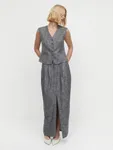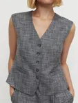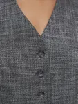 Костюмный жилет в оттенке salt&pepper — это эффектный акцент для вашего гардероба. Приталенный силуэт, V-образный вырез и ряд из пяти пуговиц вместе создают элегантную и выразительную модель. Особое внимание стоит обратить на его уникальный цвет — salt&pepper, который придает этому жилету изысканности и фактуры. Материал сочетает в себе ахроматические оттенки, создавая нескучный вид. Рекомендуем носить его как с другими элементами одежды в серых и белых тонах, так и с контрастными деталями для создания эффектных образов.