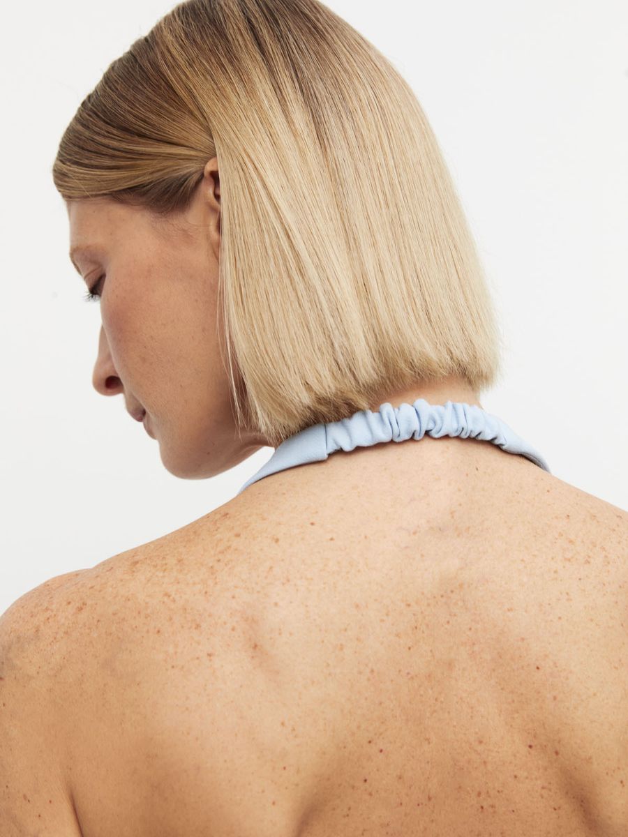 Жилет с открытой спиной в оттенке fresh air — вызов серым дням конца зимы и главный герой вашего весеннего гардероба. Нежный голубой цвет освежает, а женственная открытая спина добавляет игривой дерзости. Лаконичный фасон с идеальной посадкой подчеркивает фигуру и придает образу выразительности.