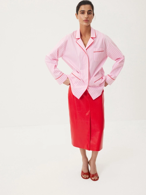 Объемная футболка c принтом «Champagne and Lipstick» — изящный способ добавить нотку кокетства в повседневность. Модель свободного кроя выполнена из мягкого хлопка, чтобы каждый образ с ней сопровождался ощущением комфорта и уверенности. Дополните изделие чувственными брюками Impulse Red или носите с любимыми джинсами и юбками, заигрывая с разным настроением стилизаций.