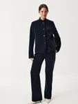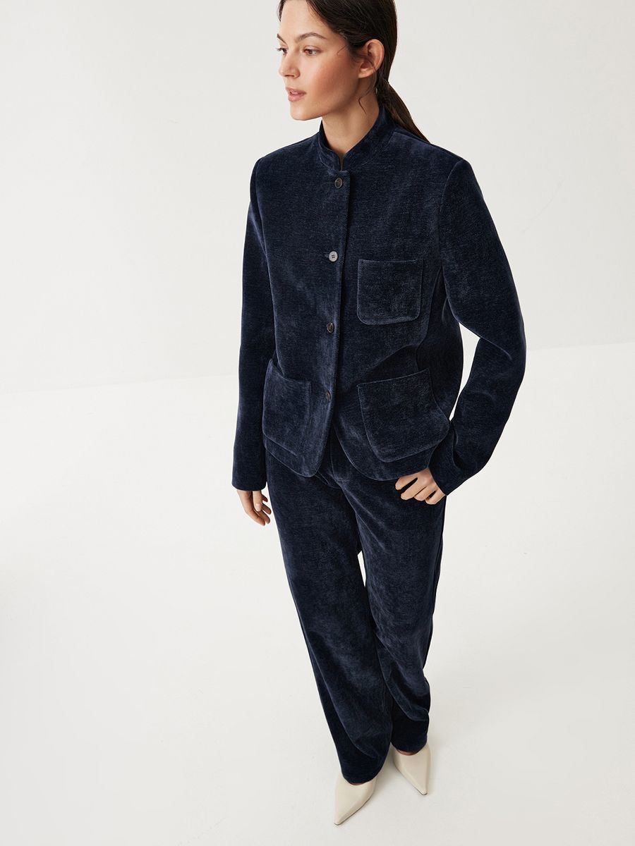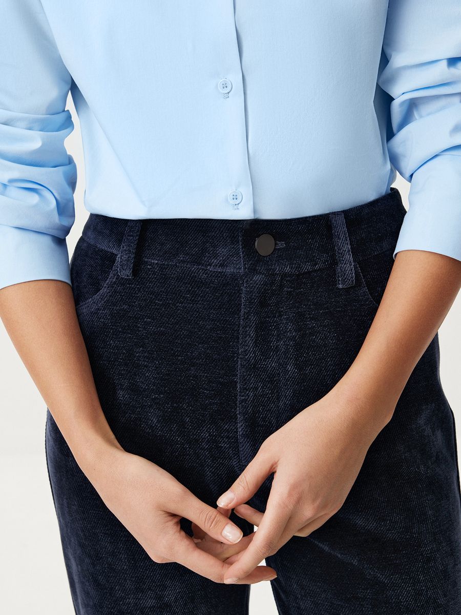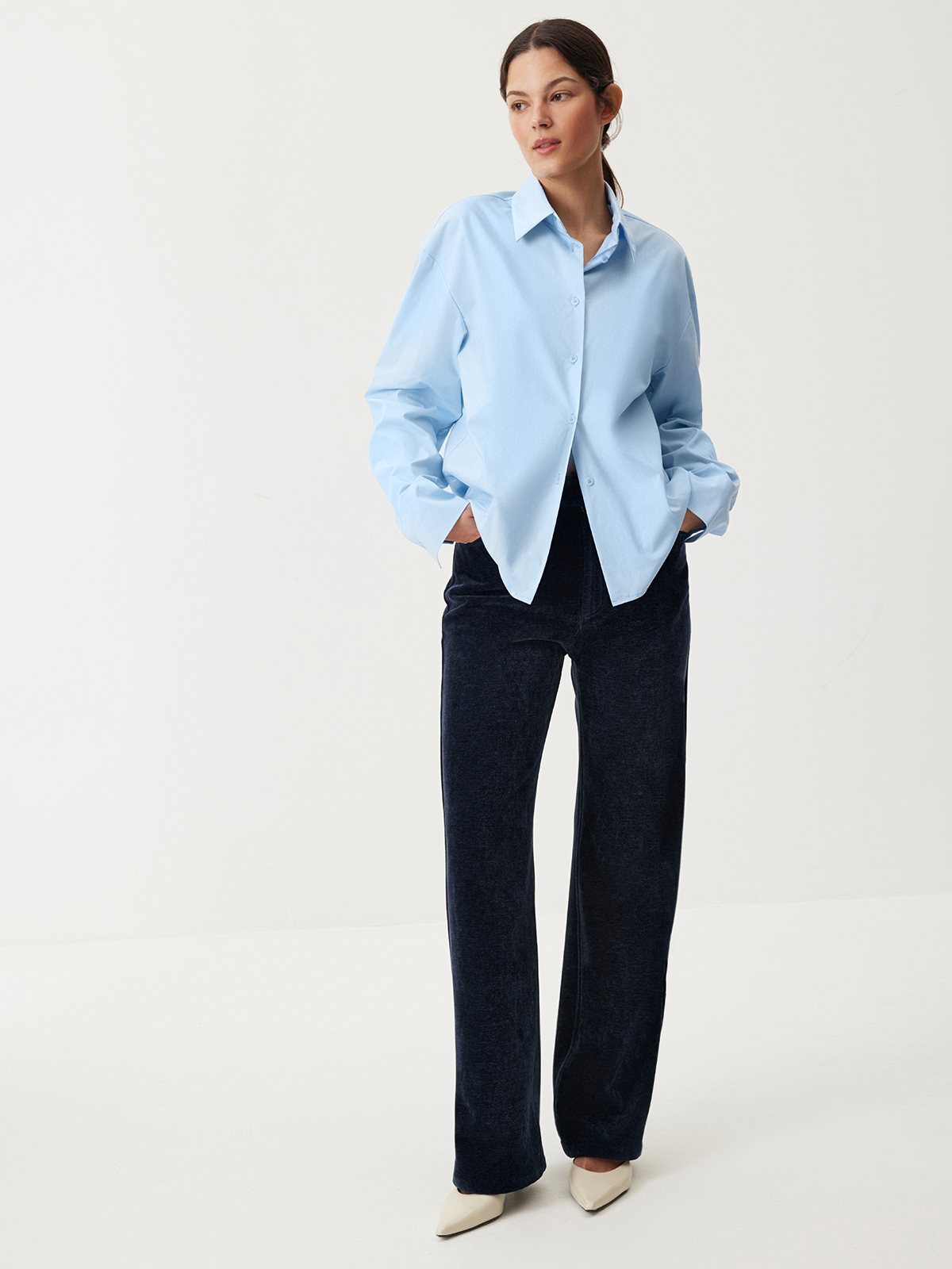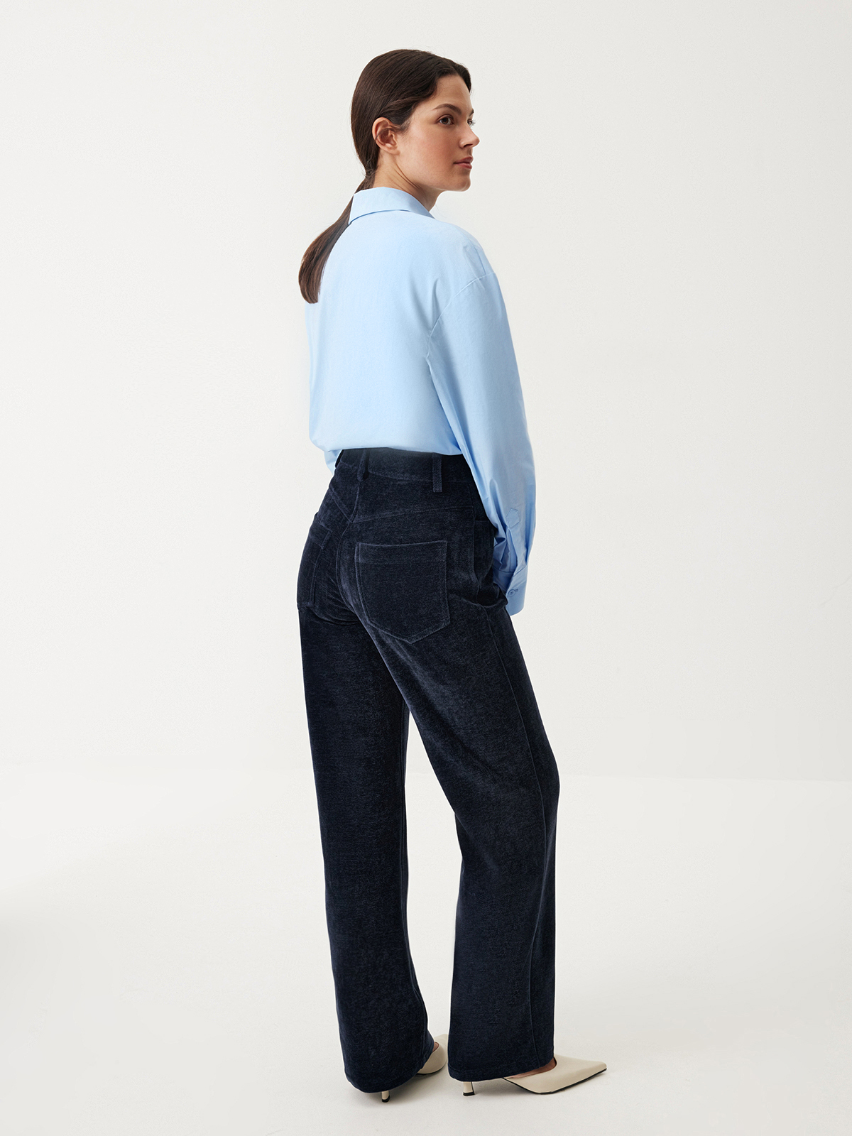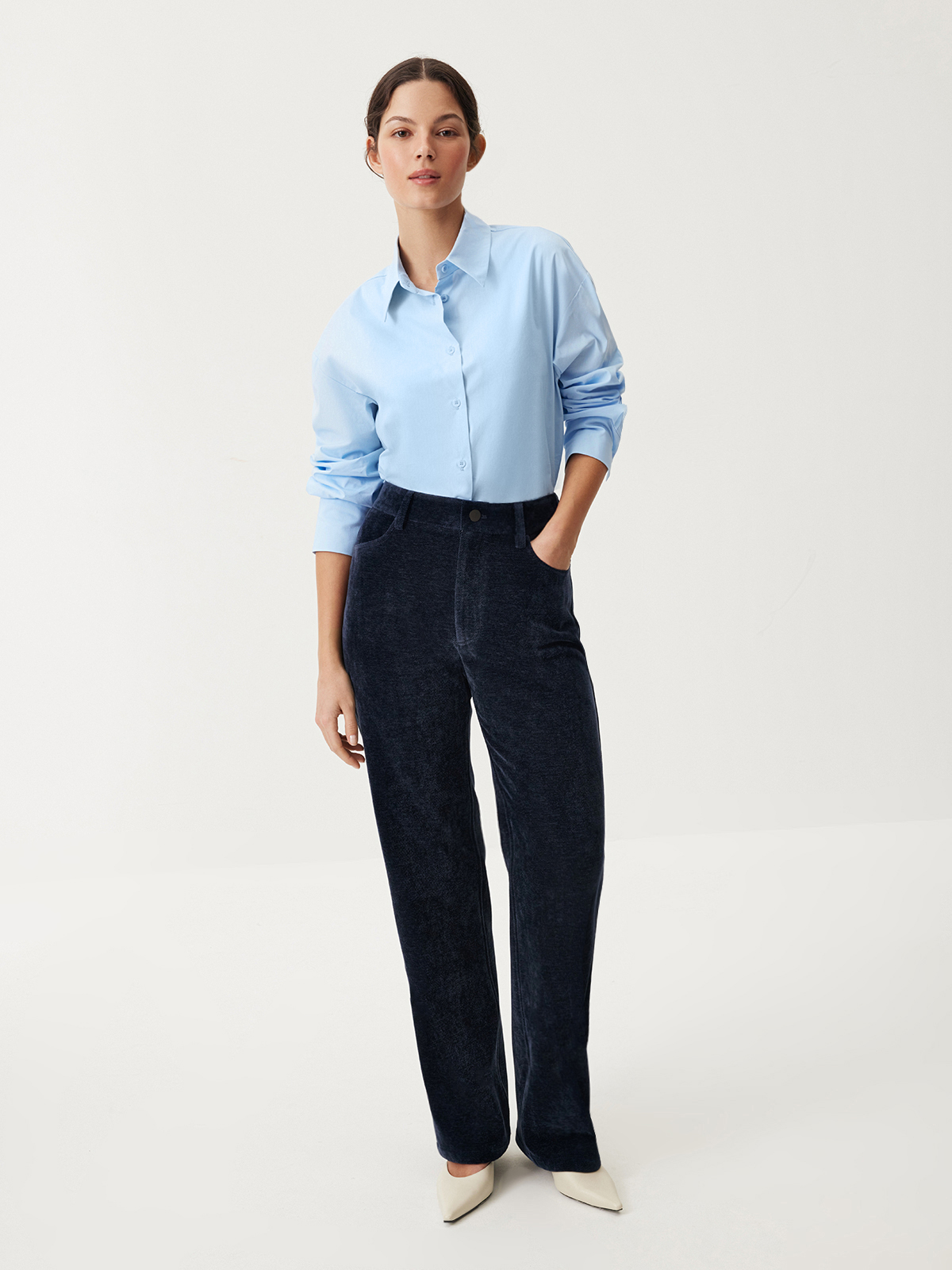 Прямые брюки Modern East — тот самый айтем, придающий глубину и выразительность любому образу. Насыщенный темно-синий оттенок и мягкий бархатистый вельвет вдохновляют на яркие цветовые сочетания и эксперименты со стилем. Модель минималистичного силуэта гармонично впишется в ваш ритм жизни: по будням сочетайте с классическими рубашками, а по выходным отдавайте предпочтение уютным стилизациям с мягким трикотажем. Соберите монохромный образ с лаконичным жакетом, чтобы в полном объеме насладиться роскошной фактурой вельвета.