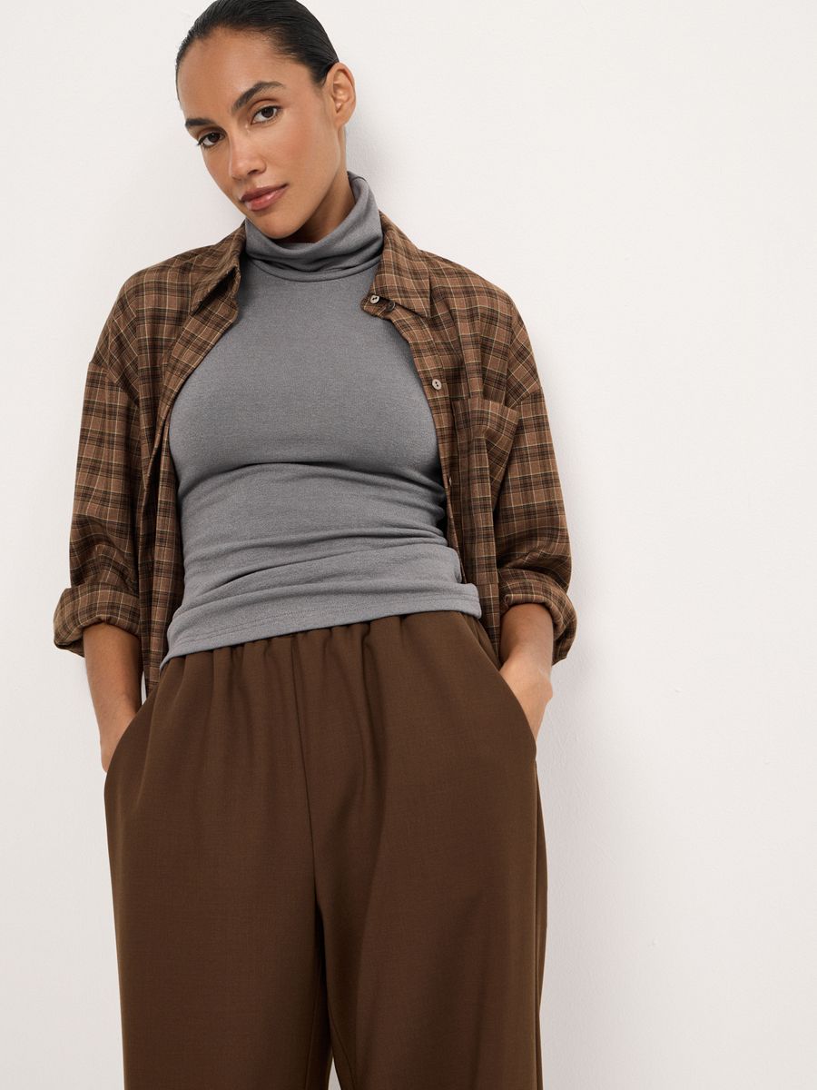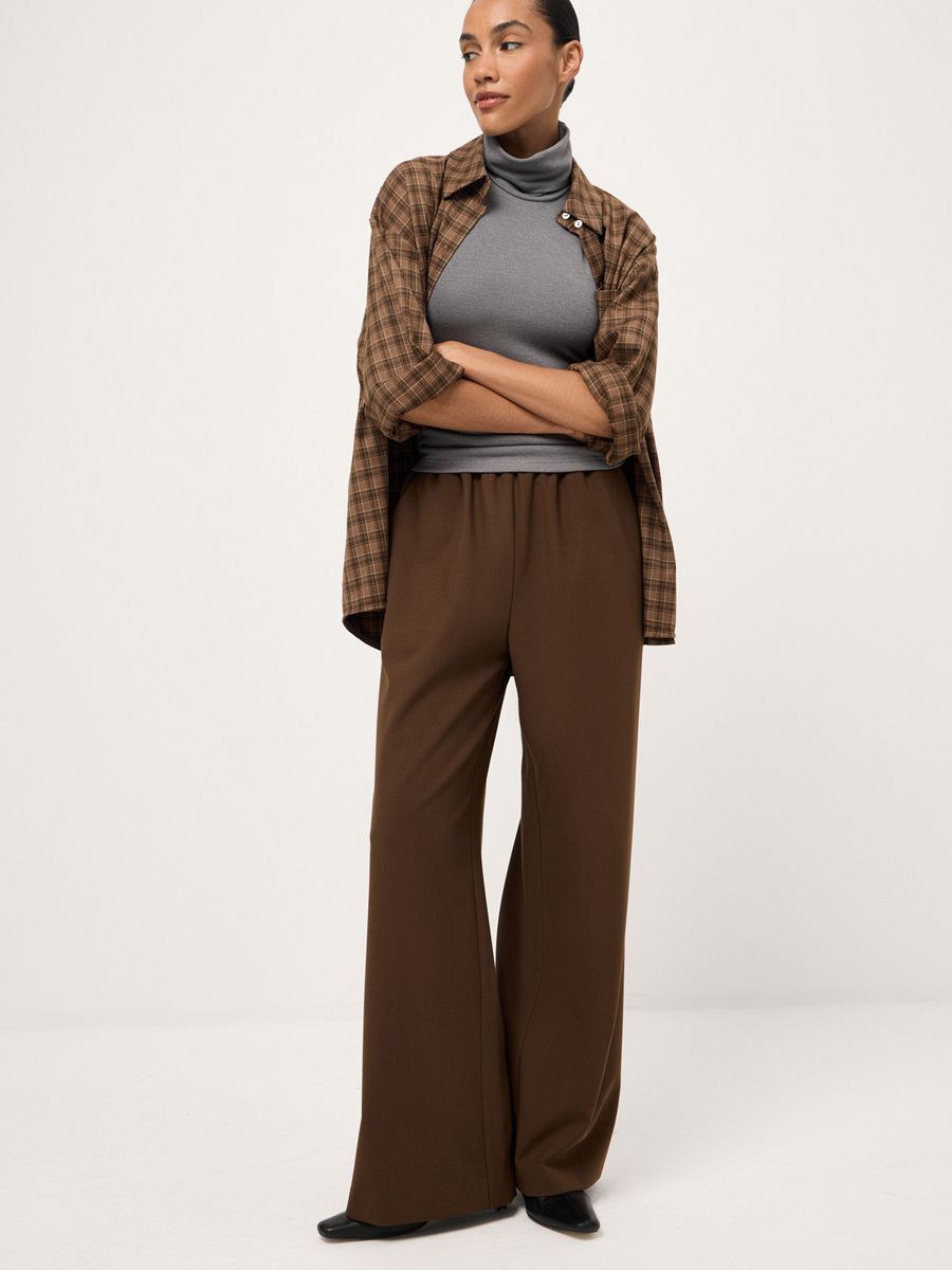 Расслабленные брюки Cosy Item созданы для тех моментов, когда комфорт выходит на первый план. Свободный крой и мягкий эластичный пояс позволяют двигаться легко и непринужденно, а фактурная ткань с добавлением вискозы делает модель одинаково актуальной для будней в офисе и неспешных воскресных прогулок. Носим с безупречной базой и завершаем образ акцентной косухой 80s Era или бомбером Casual Business. Выбираем модель за деликатную элегантность и непередаваемое чувство уюта.