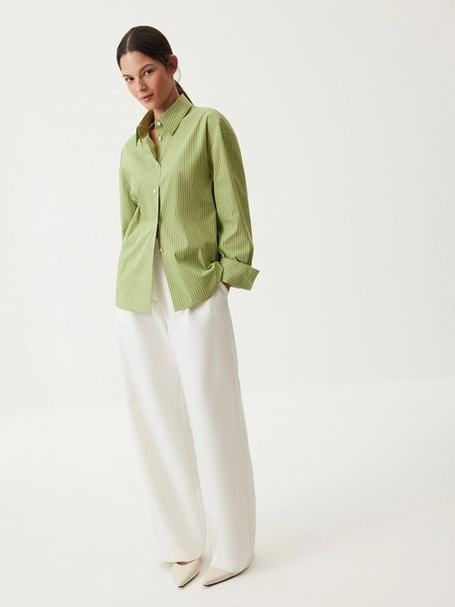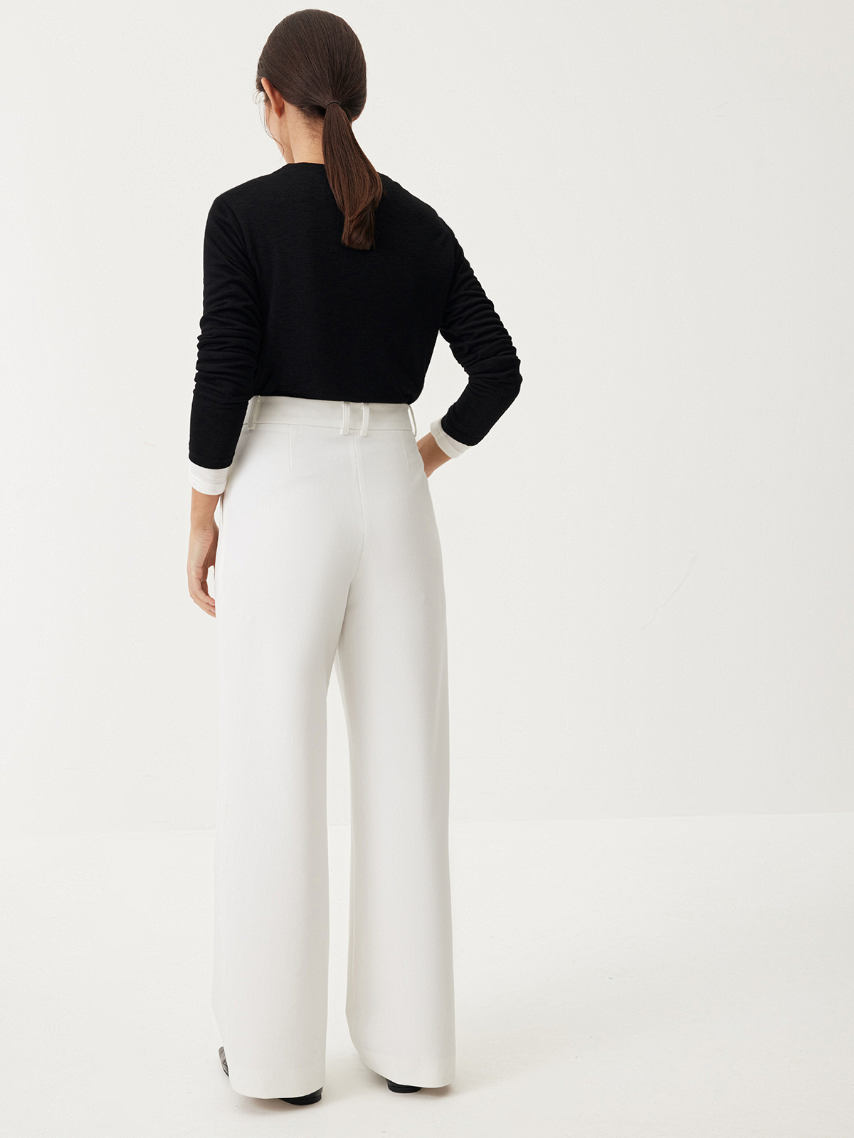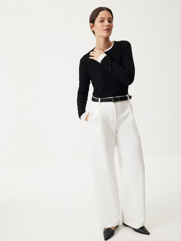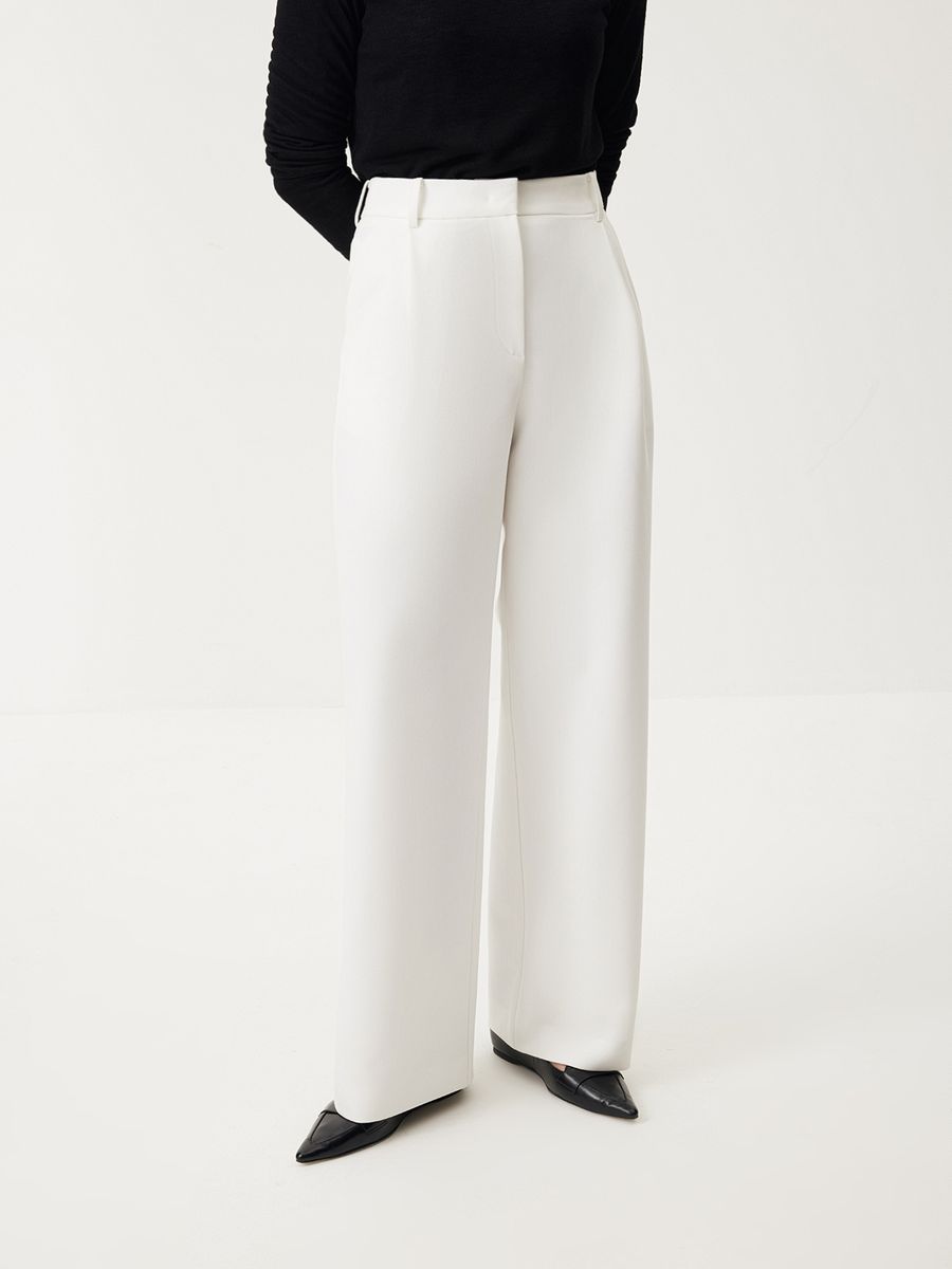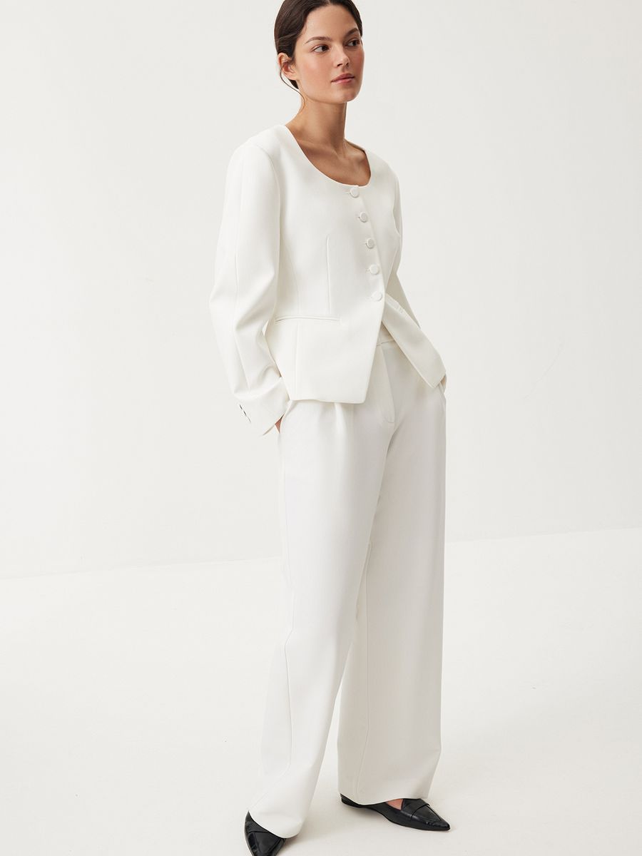 Брюки Classic Code — роскошное сочетание лаконичности, идеально выверенного кроя и освежающего молочного оттенка. Модель, с которой каждый офисный или casual образ будет выглядеть безукоризненно стильно благодаря элегантной завышенной талии с защипами и продуманному объему. Минималистичный дизайн и классическая костюмная ткань позволяют легко интегрировать изделие в гардероб и создавать выразительные комбинации с любым верхом: от базовых лонгсливов до нарядных вечерних топов.