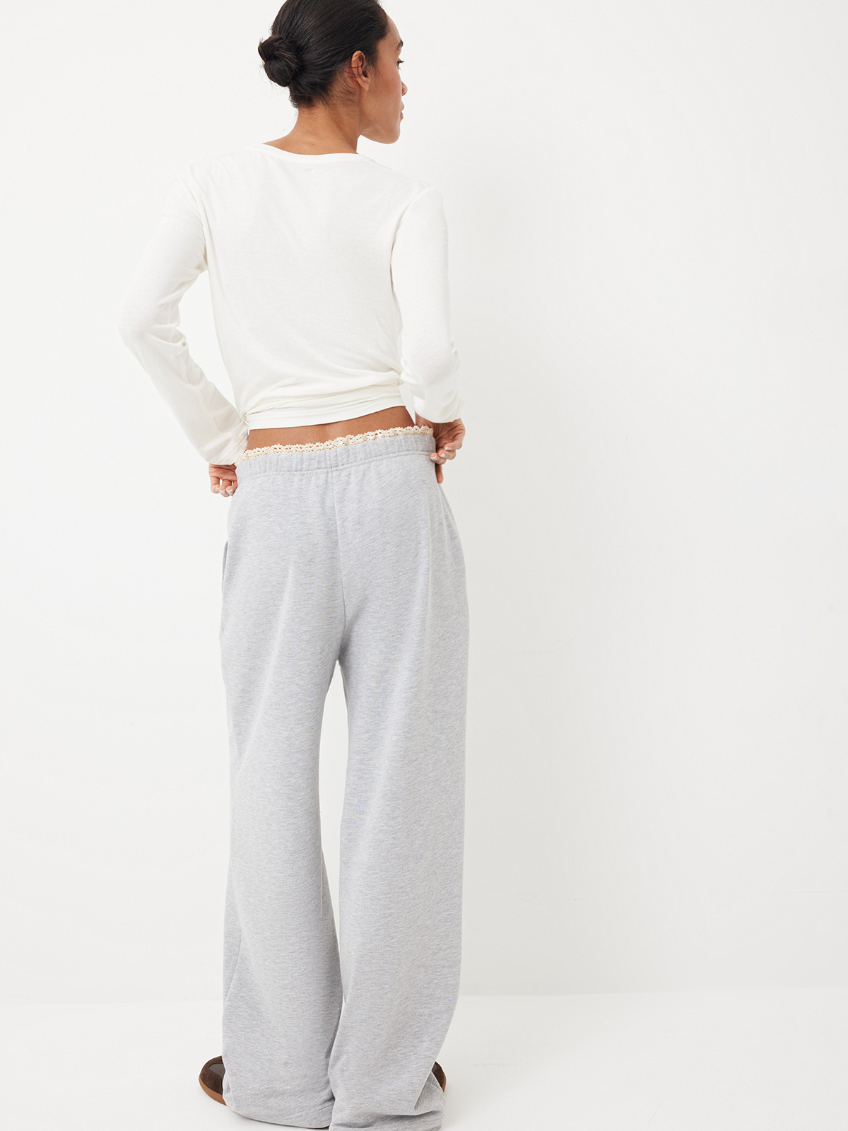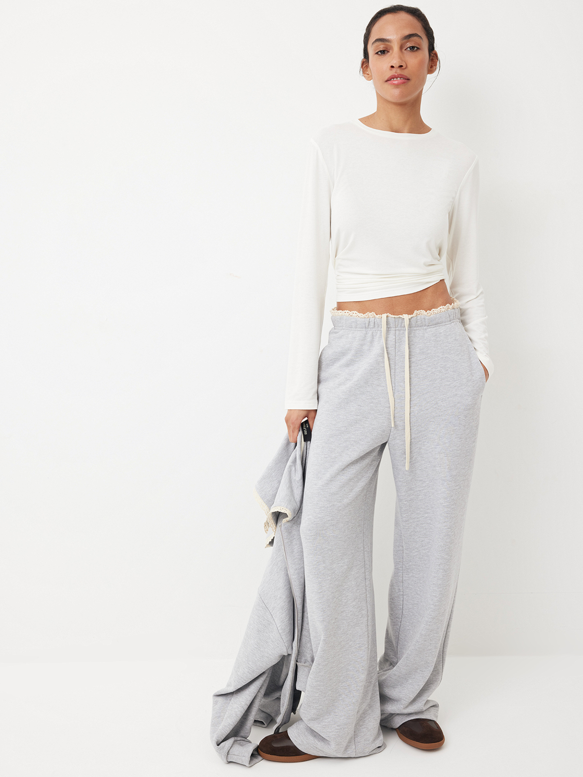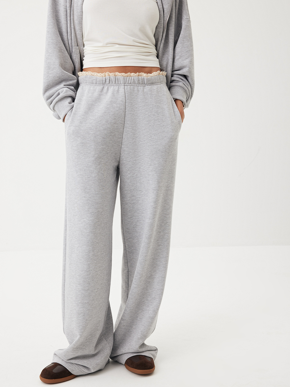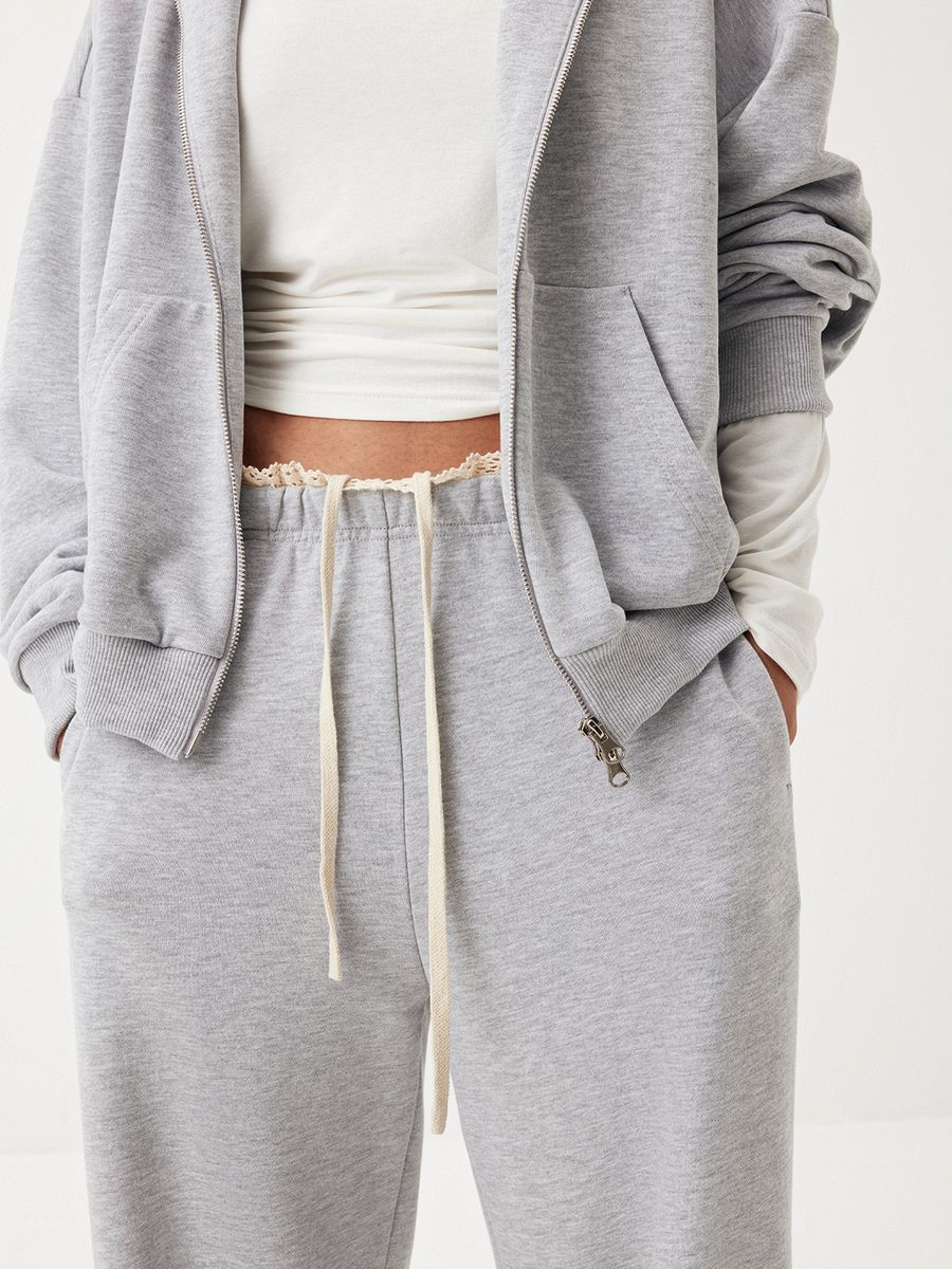 Брюки Classic Grey — идеальное отражение тренда на контрастность. Изделие изящно сочетает нежность кружева и расслабленный силуэт, превращая универсальную базу в модный айтем. Свободная модель из плотного футера с хлопком дополнена эластичным поясом, чтобы вы чувствовали себя комфортно и уверенно в каждом моменте повседневности. Носим с футболкой Base и худи на молнии из сета для поездок за город, прогулок и лаконичных городских выходов.
