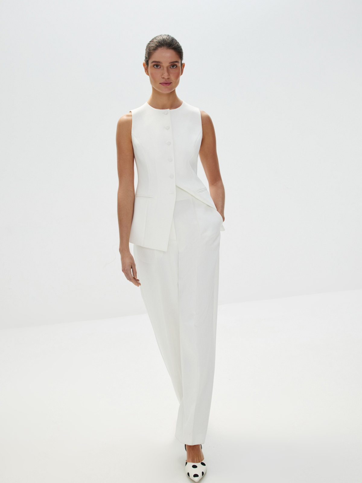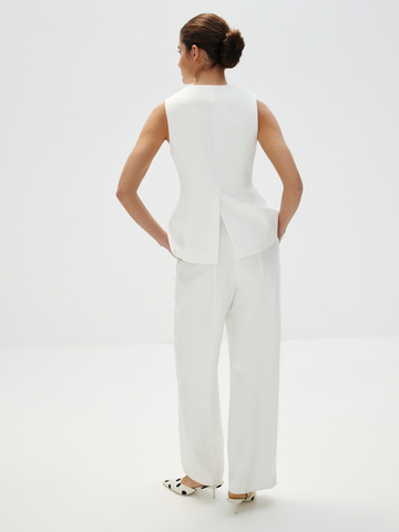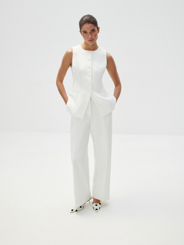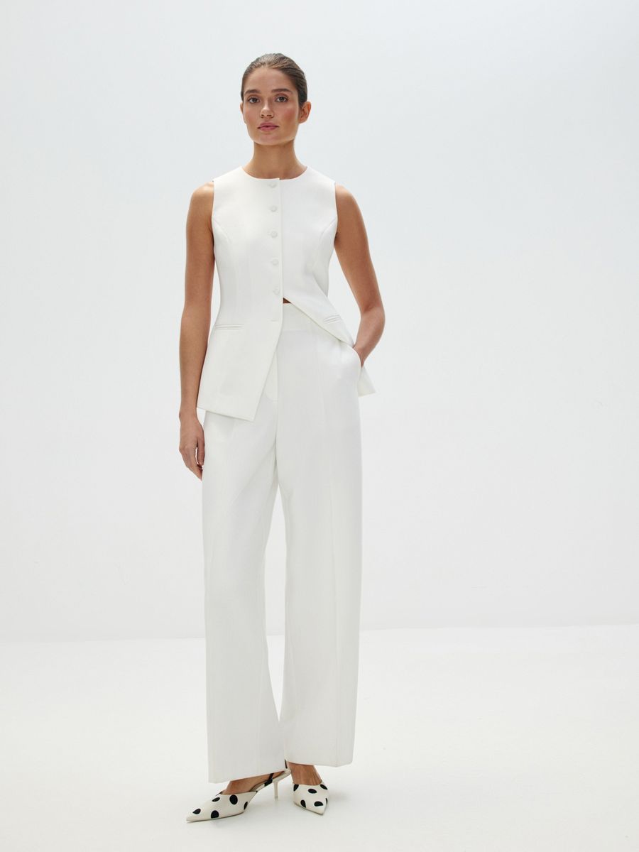 Брюки «Ужин на двоих» — классика, которая поддержит любой элегантный выход. Модель с высокой талией и стрелками создает выразительный силуэт, плавно подчеркивая изящные изгибы фигуры. Вневременное изделие, актуальное как для торжественных событий, так и повседневных моментов. Носим в комбинации с изящным жилетом — всегда безупречно и женственно.