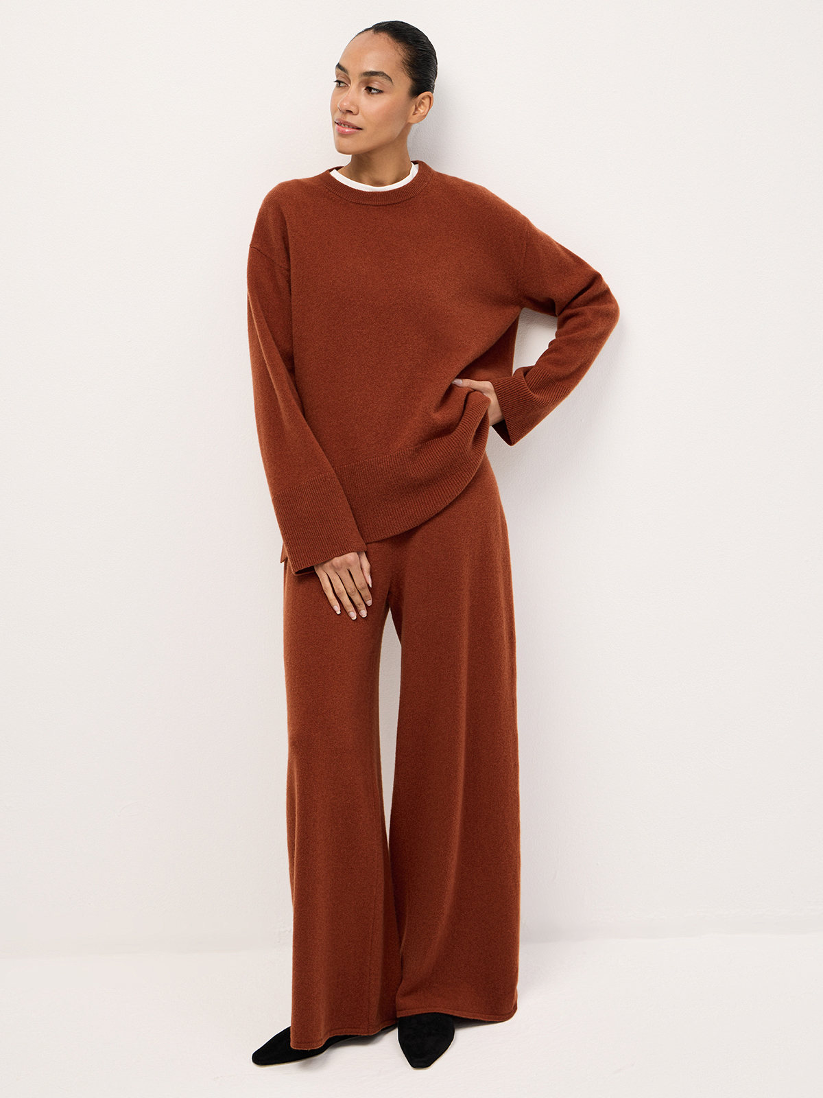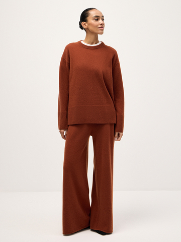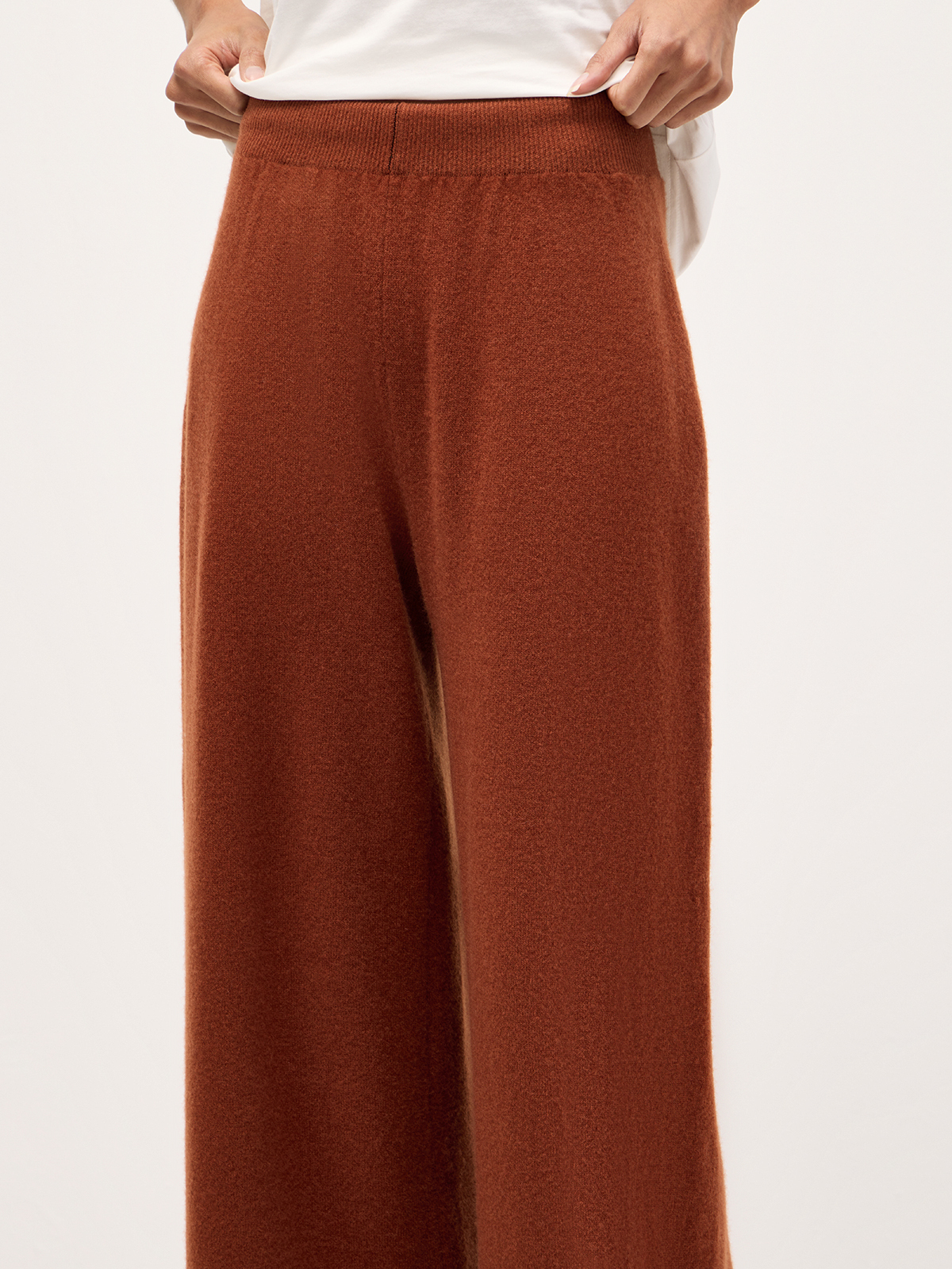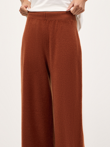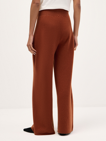 Брюки merino wool — ваш выбор в пользу комфорта и лаконичного стиля. Модель из нежной шерстяной пряжи австралийского мериноса добавит расслабленности в динамичные будни и станет идеальной основой капсульного гардероба для поездок за город. Слегка расклешенный крой с мягкой широкой резинкой на талии позволяет ощущать себя свободно и создает современный женственный силуэт. Собираем изысканный терракотовый сет с джемпером и наслаждаемся уютом в любой ситуации или стилизуем с теплой клетчатой рубашкой, добавляя образу непринужденный характер.