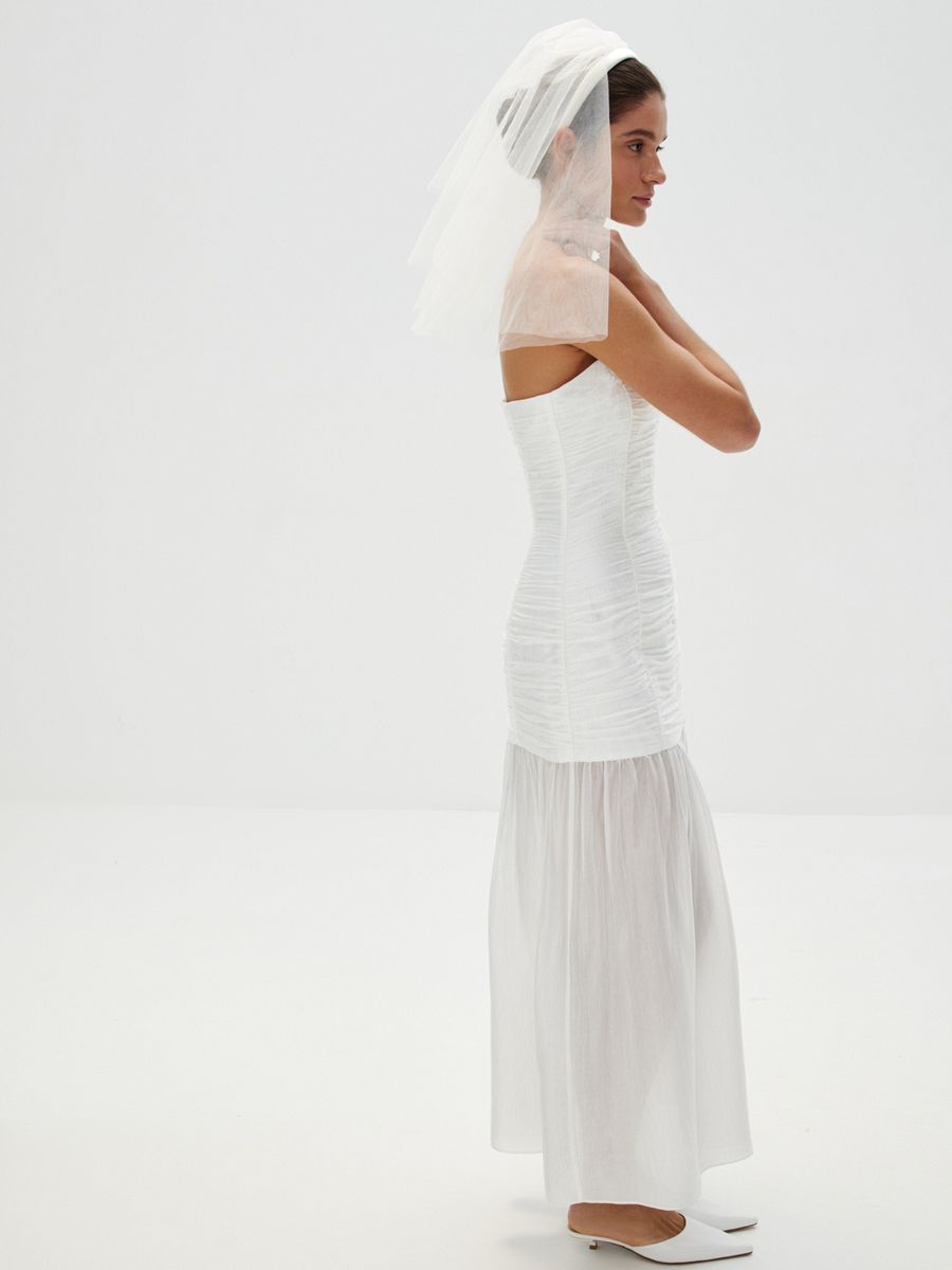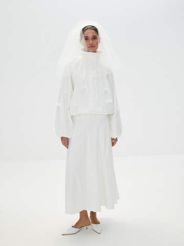 Пышная фата «Долго и счастливо» создана для искренних признаний, смеха и слез радости в ваш долгожданный день. Специально для свадебной коллекции мы переосмыслили форму традиционного украшения невесты и создали укороченную модель на нежном атласном ободке. Изделие создано вручную с особенным вниманием и любовью к деталям. Идеальна в сочетании с любыми торжественными образами.