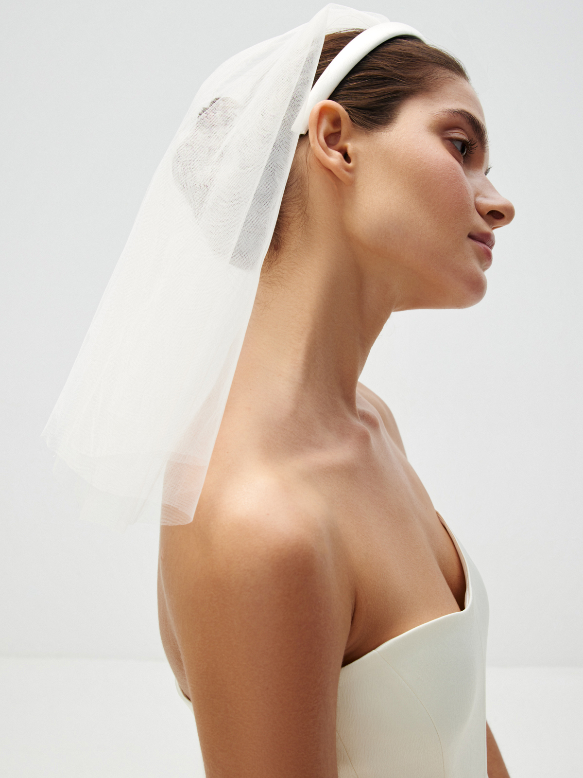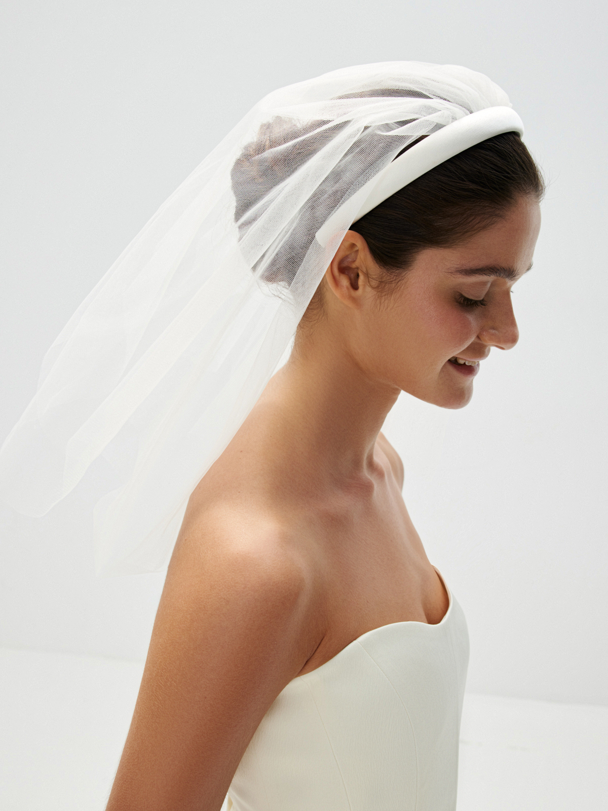 Укороченная длина фаты. Ободок, обшитый атласной тканью. Ручная работа.