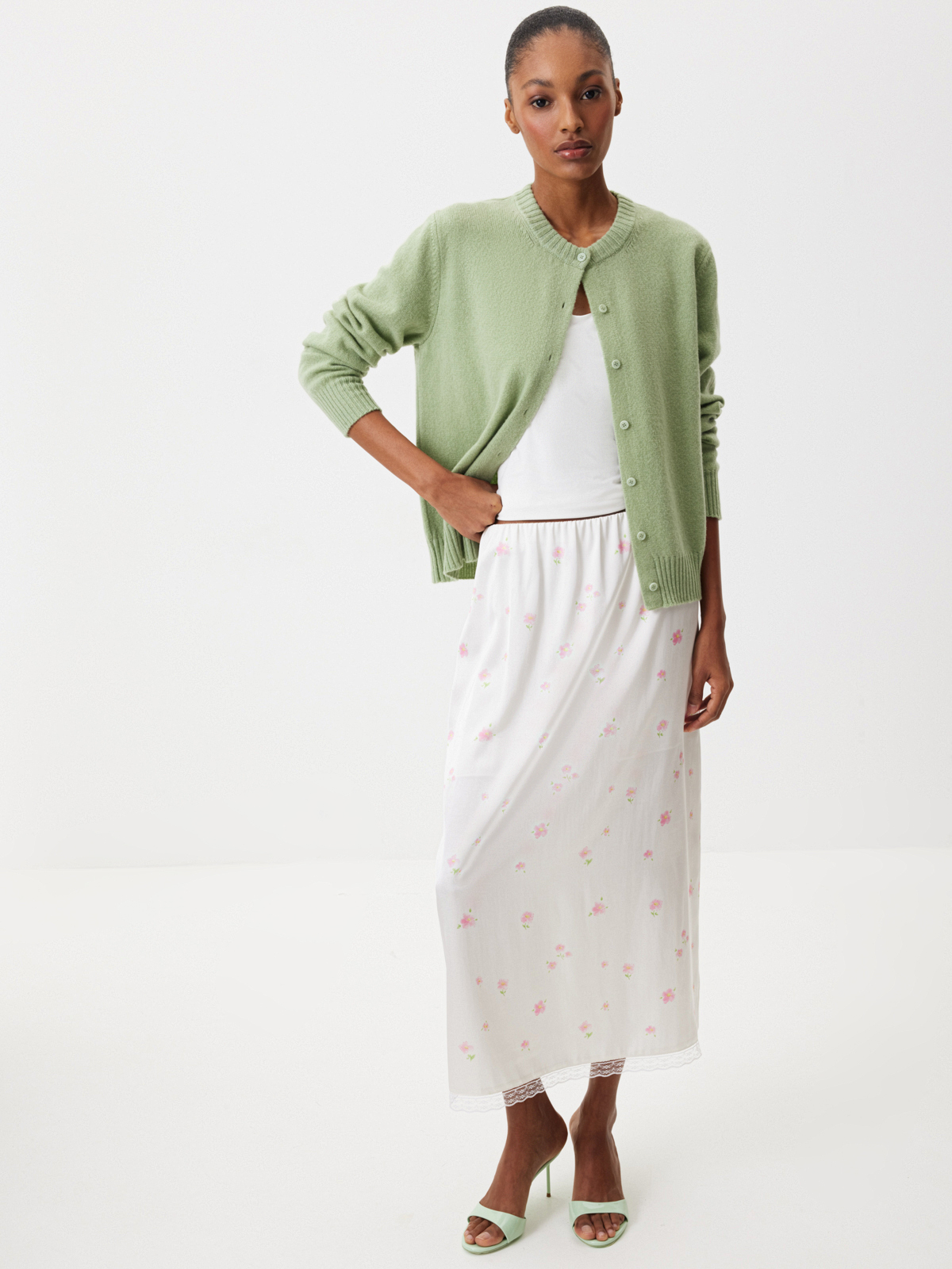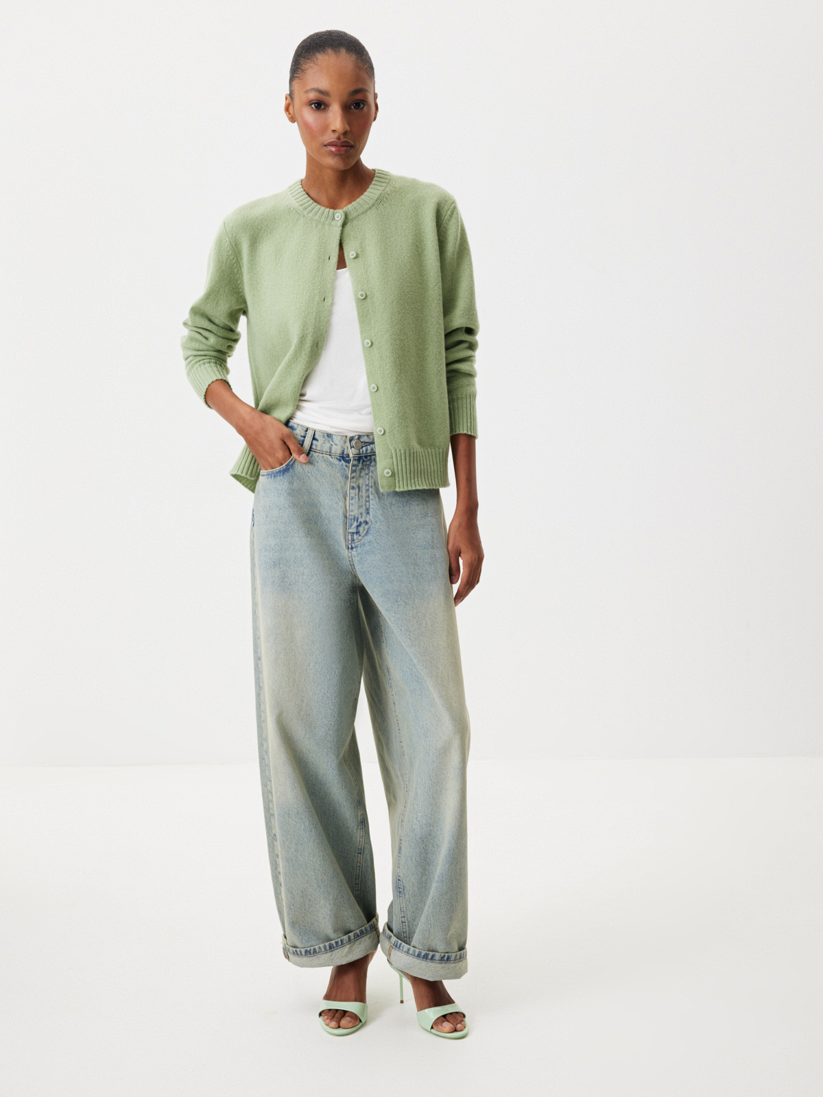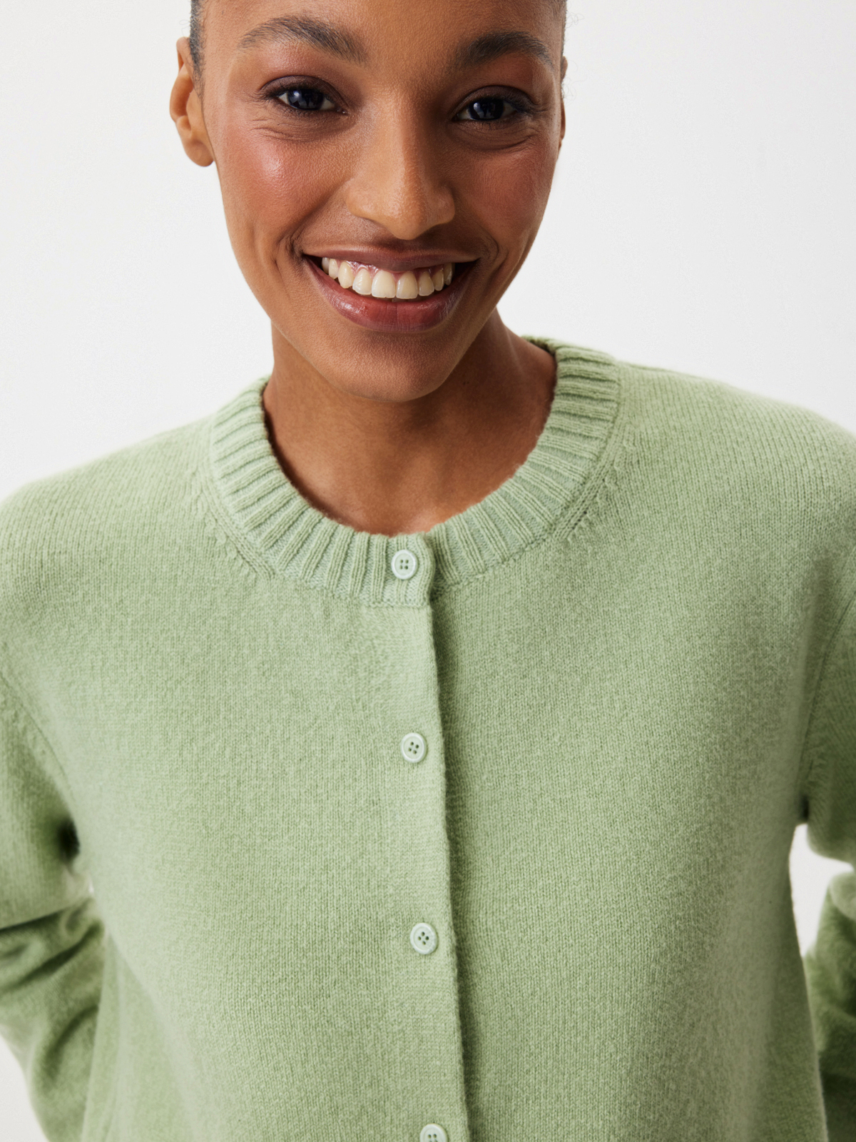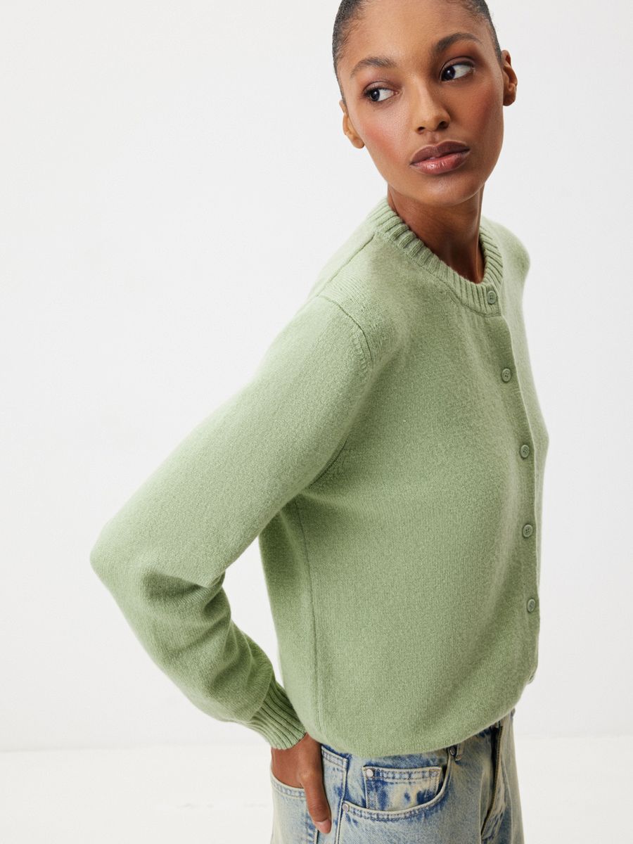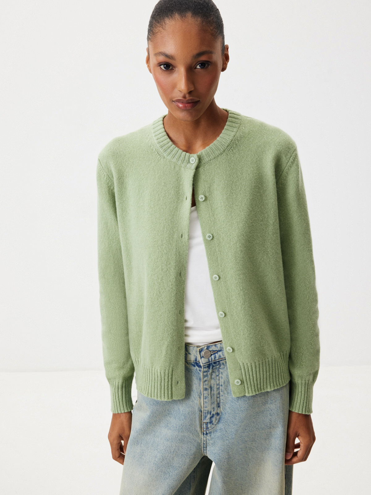 Нежный кардиган «Фисташковый крем» — изделие, с которым не захочется расставаться до наступления первых жарких дней. Мягкий кашемир, лаконичный крой и освежающий зеленый оттенок делают модель лучшей инвестицией в базовый гардероб на долгие годы. Выбираем изделие за полную свободу стилизаций: носите кардиган соло с любыми брюками, джинсами и юбками или играйте с многослойными комбинациями.