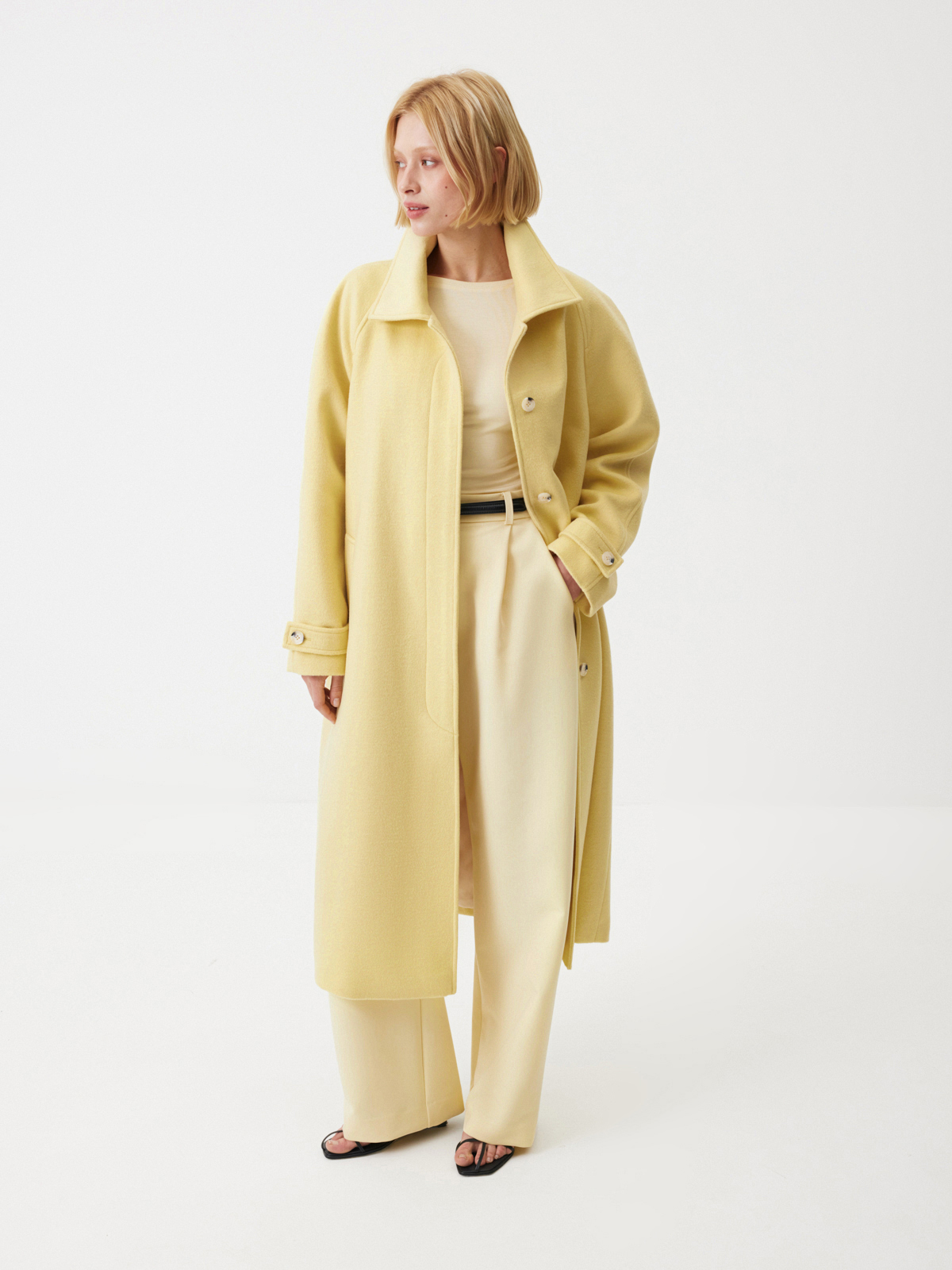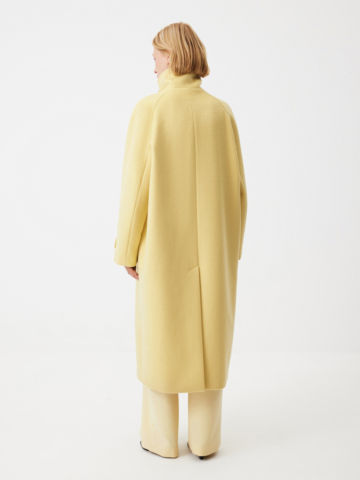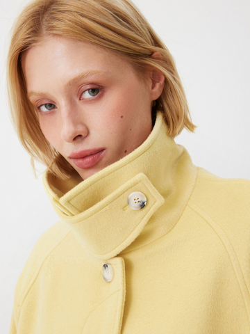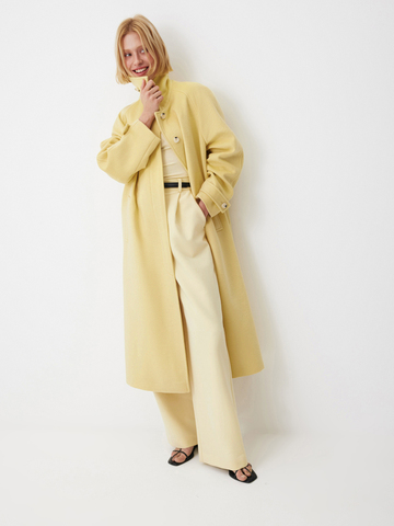 Объемное пальто Sunkissed в солнечно-желтом оттенке — для долгих свиданий с собой и любимым городом. Чтобы каждый образ с ним выглядел безукоризненно стильно, мы добавили к актуальному объемному крою рукава реглан, планку на пуговицах и съемную деталь на воротнике, благодаря которой он легко трансформируется из отложного в стойку. Роскошная ткань с шерстью идеально согревает и дарит ощущение комфорта в прохладном сезоне. Вдохновляемся на освежающие стилизации и носим модель с палаццо Morning Butter и лонгсливом Little Accent в тон.