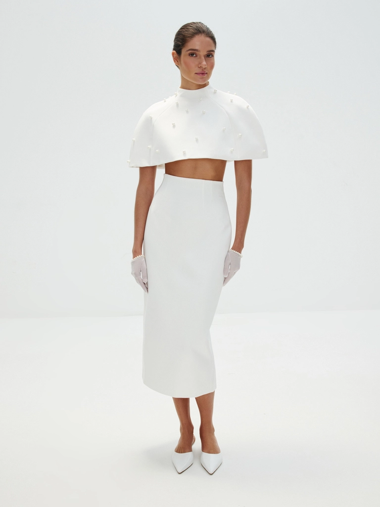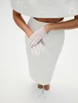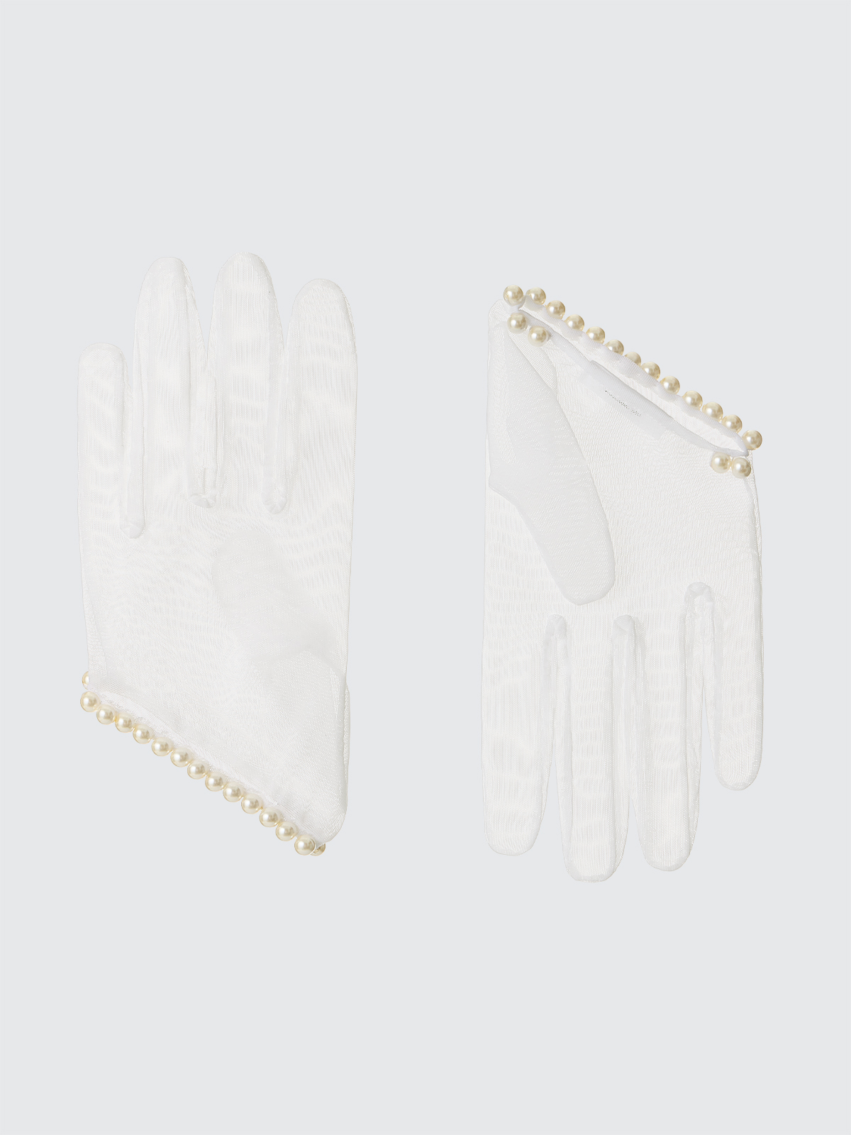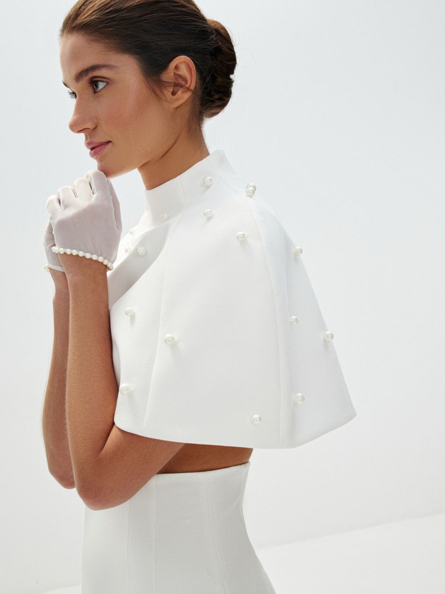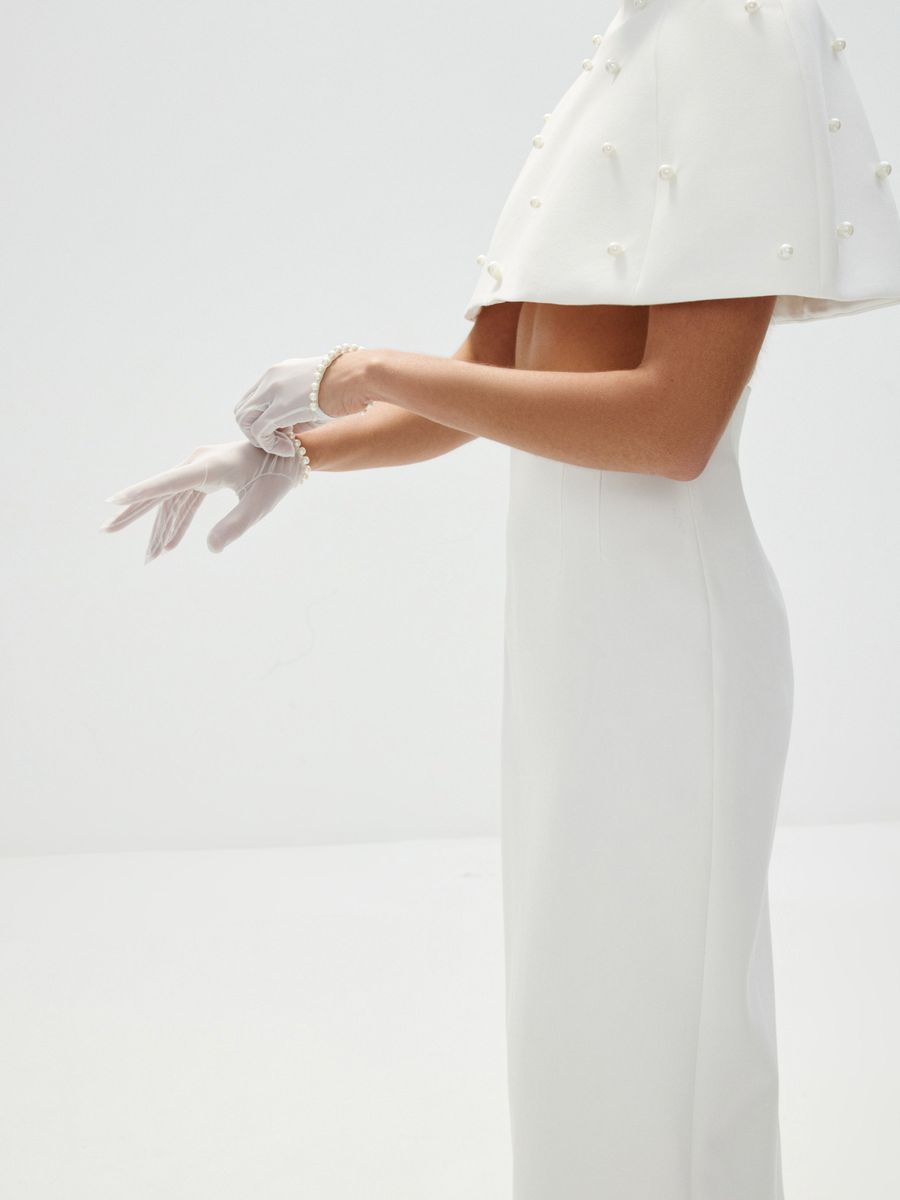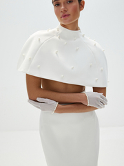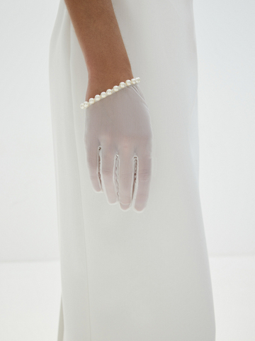 Изящные перчатки с жемчугом «Безупречность» — изящная деталь, возвращающая в эпоху элегантности 50-х годов. Изделие, с которым ваш свадебный образ станет образцом утонченного стиля, выполнено вручную из невесомой сетки и расшито стеклянным жемчугом. Создает безупречную комбинацию с кейпом «Грейс» и любыми изделиями с изысканным характером.