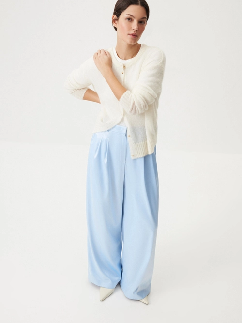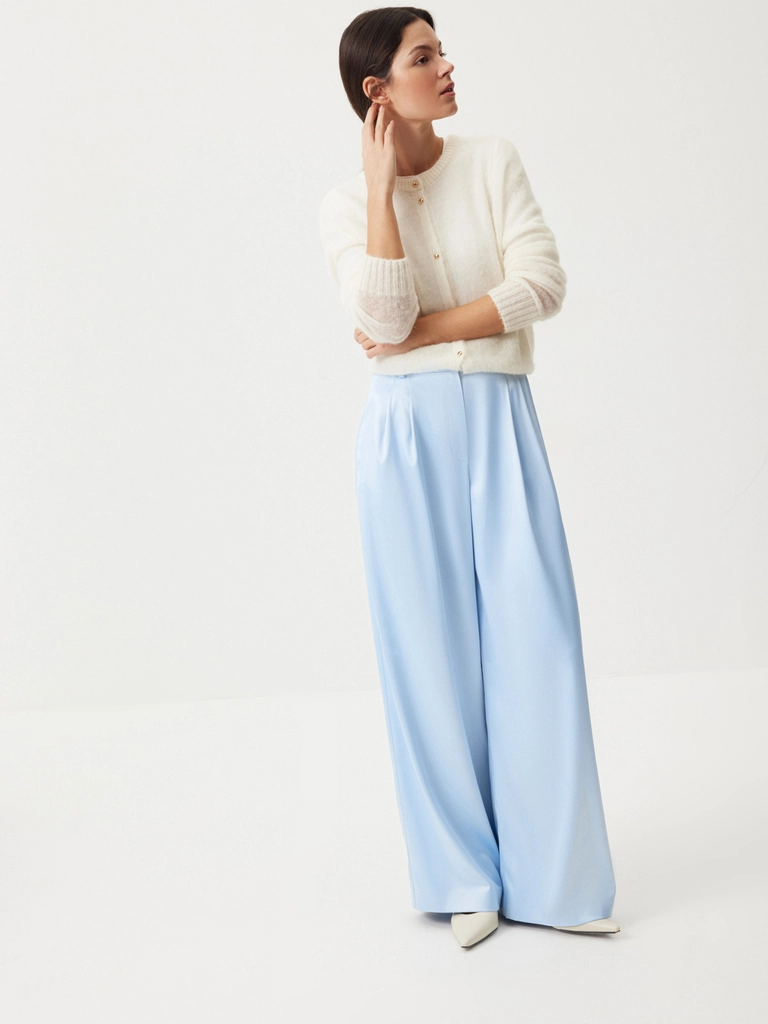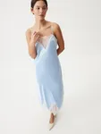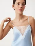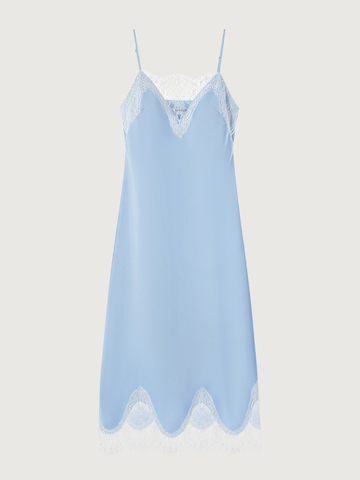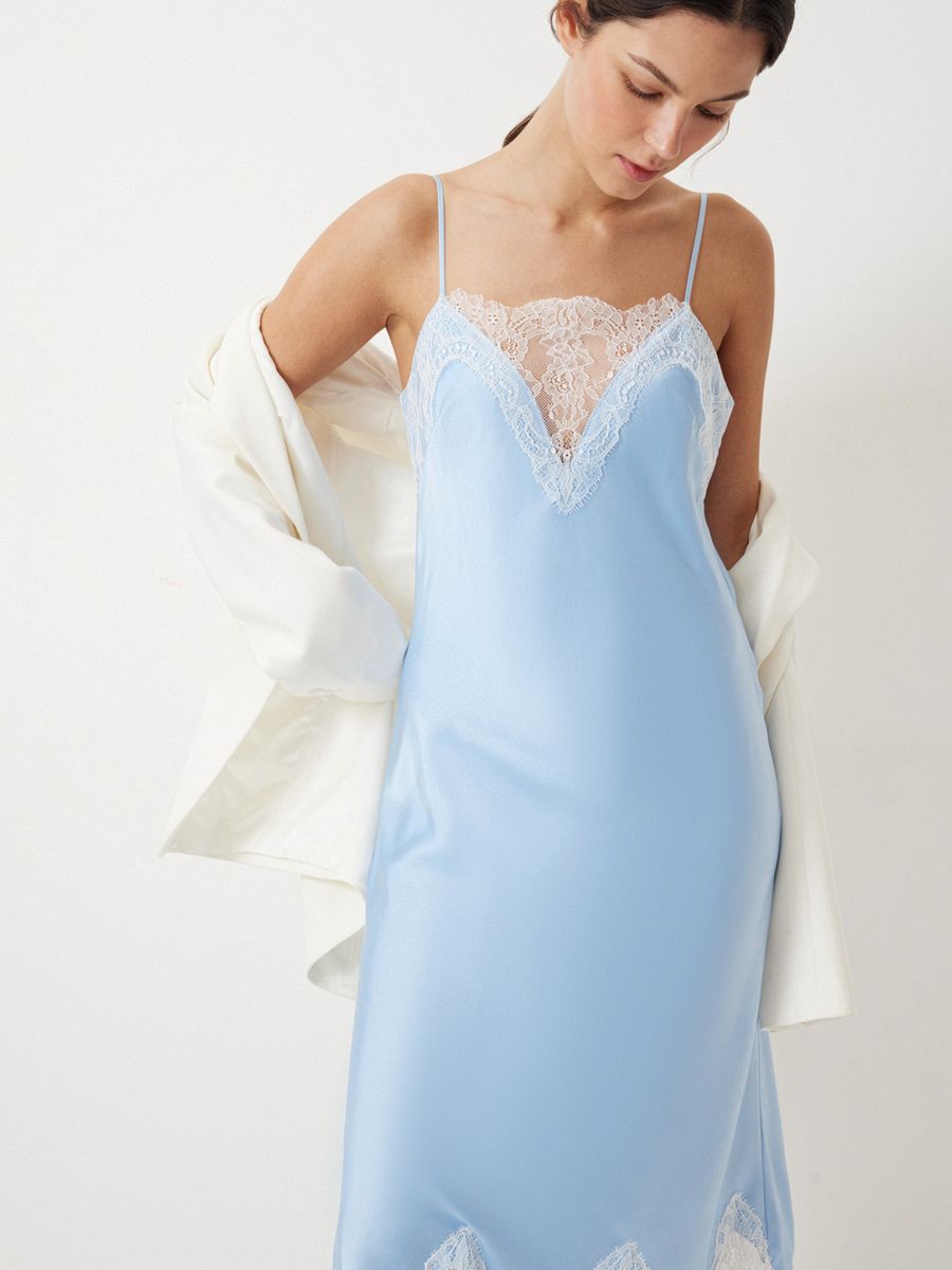 Изящное платье Sweet Meringue — словно отражение самой нежной и чувственной стороны женской натуры. Низ изделия выглядит полупрозрачным благодаря укороченной внутренней подкладке. Носим с минималистичными аксессуарами и обувью, оставляя воздушное кружево, освежающий голубой оттенок и легкий сатиновый блеск в центре внимания. Дополняем романтичный характер модели легким кардиганом из шерсти альпака Wool Mix для вдохновляюще красивого образа.