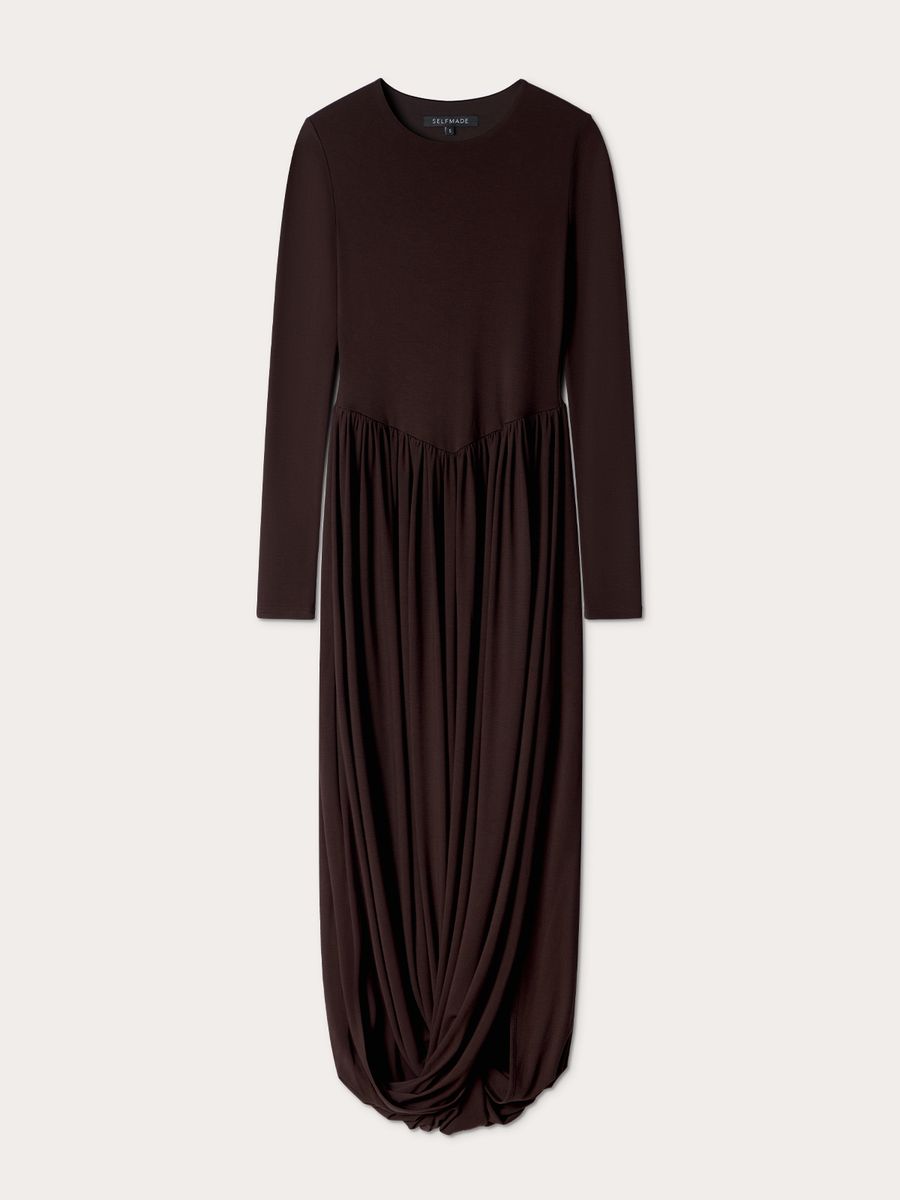 Архитектурное платье Cream Mousse — возрождение античной красоты в мягких и утонченных линиях. Вискозная ткань нежно струится по коже, создавая множество изысканных складок. Выразительный крой с базовым верхом и акцентной юбкой с высоким разрезом сбоку подчеркивает женственный силуэт — одновременно лаконичный и восхищающий с первого взгляда. Подбираем аккуратные лодочки и минимум аксессуаров, позволяя одному айтему сделать образ эффектным и подчеркнуто элегантным.