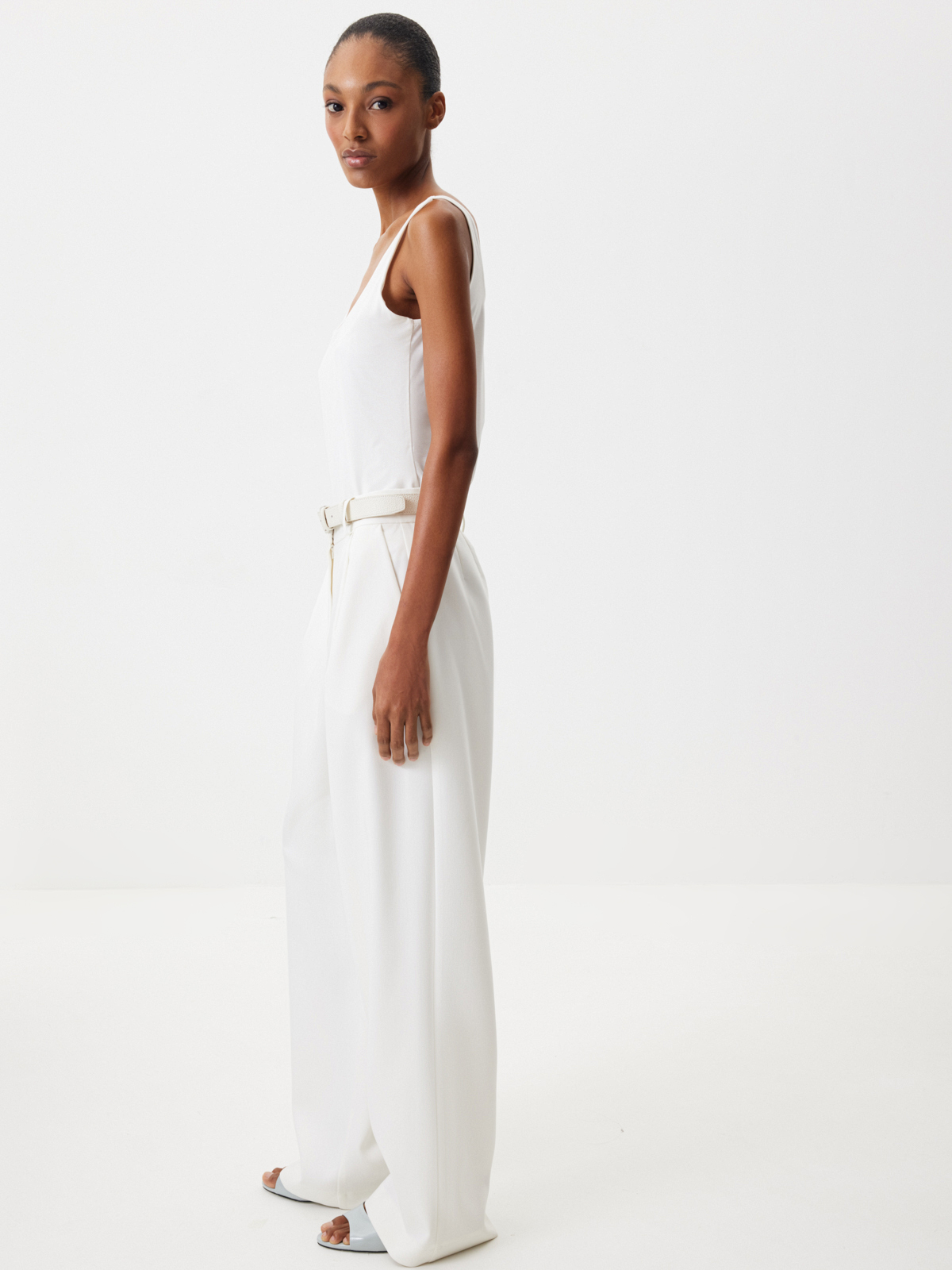 Классика SELFMADE — безукоризненные брюки-палаццо. Модель в освежающем молочном оттенке создана, чтобы стать вашей любимой базой не только для рабочих будней, но и любых моментов повседневности. Вневременной крой с изысканной длиной в пол подчеркивает женственный силуэт, чтобы вы чувствовали себя уверенно и комфортно, а костюмная ткань отлично держит форму, сохраняя при этом ощущение легкости, — идеальный баланс строгости и элегантности. Для выразительного вечернего образа в новом сезоне соберите сет «Весенний сад» с жакетом или жилетом в тон.