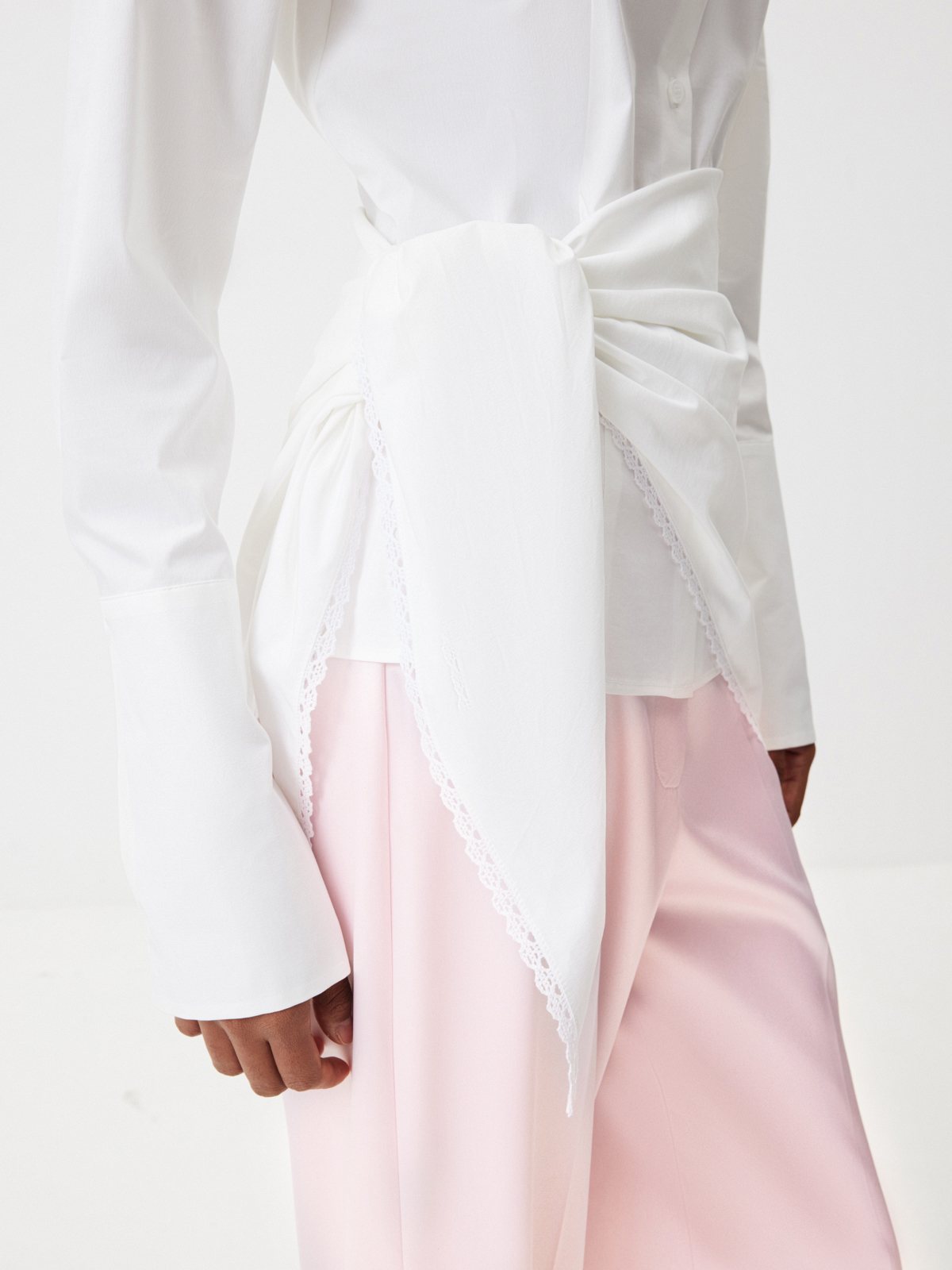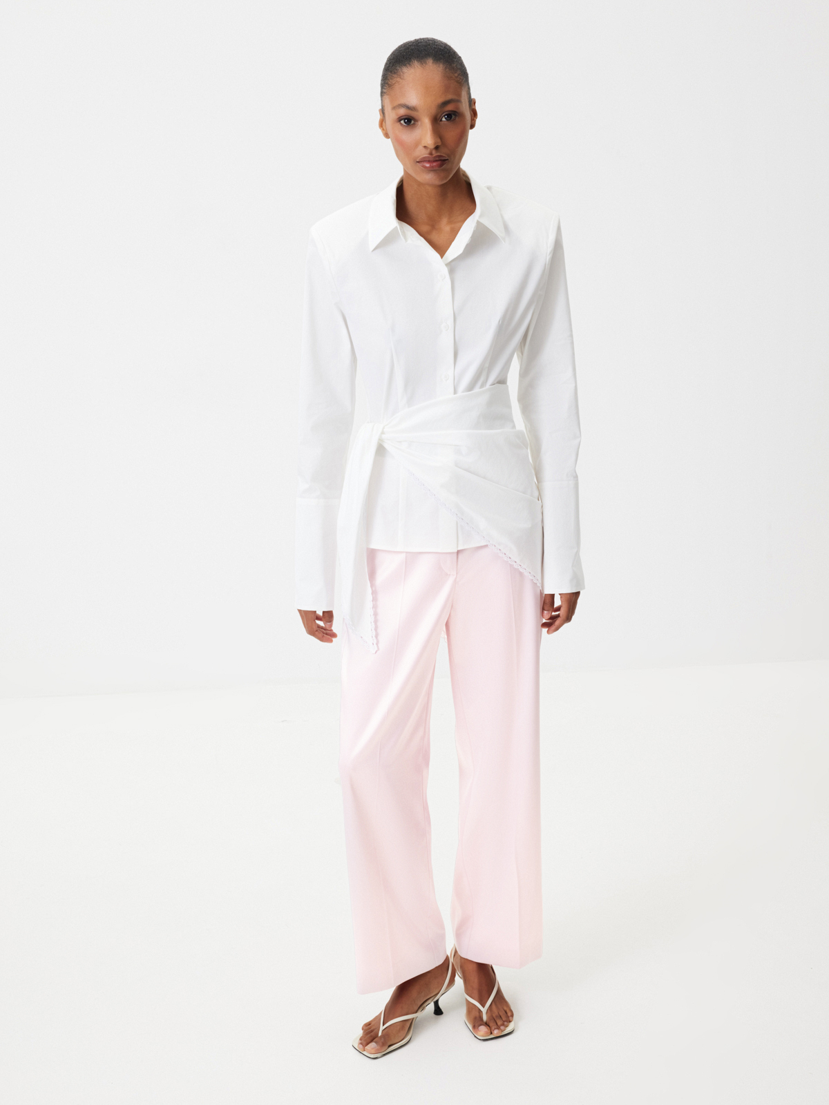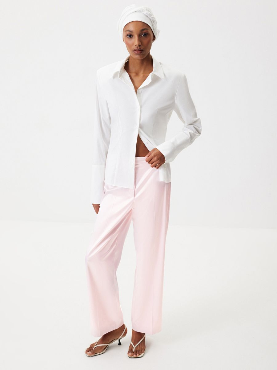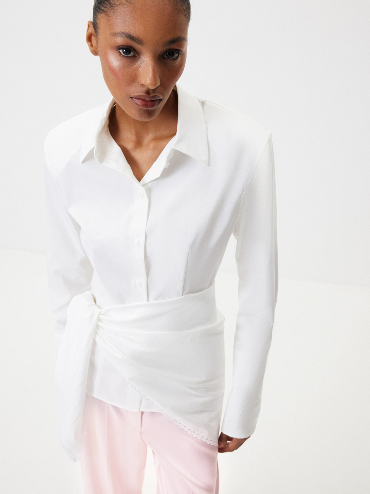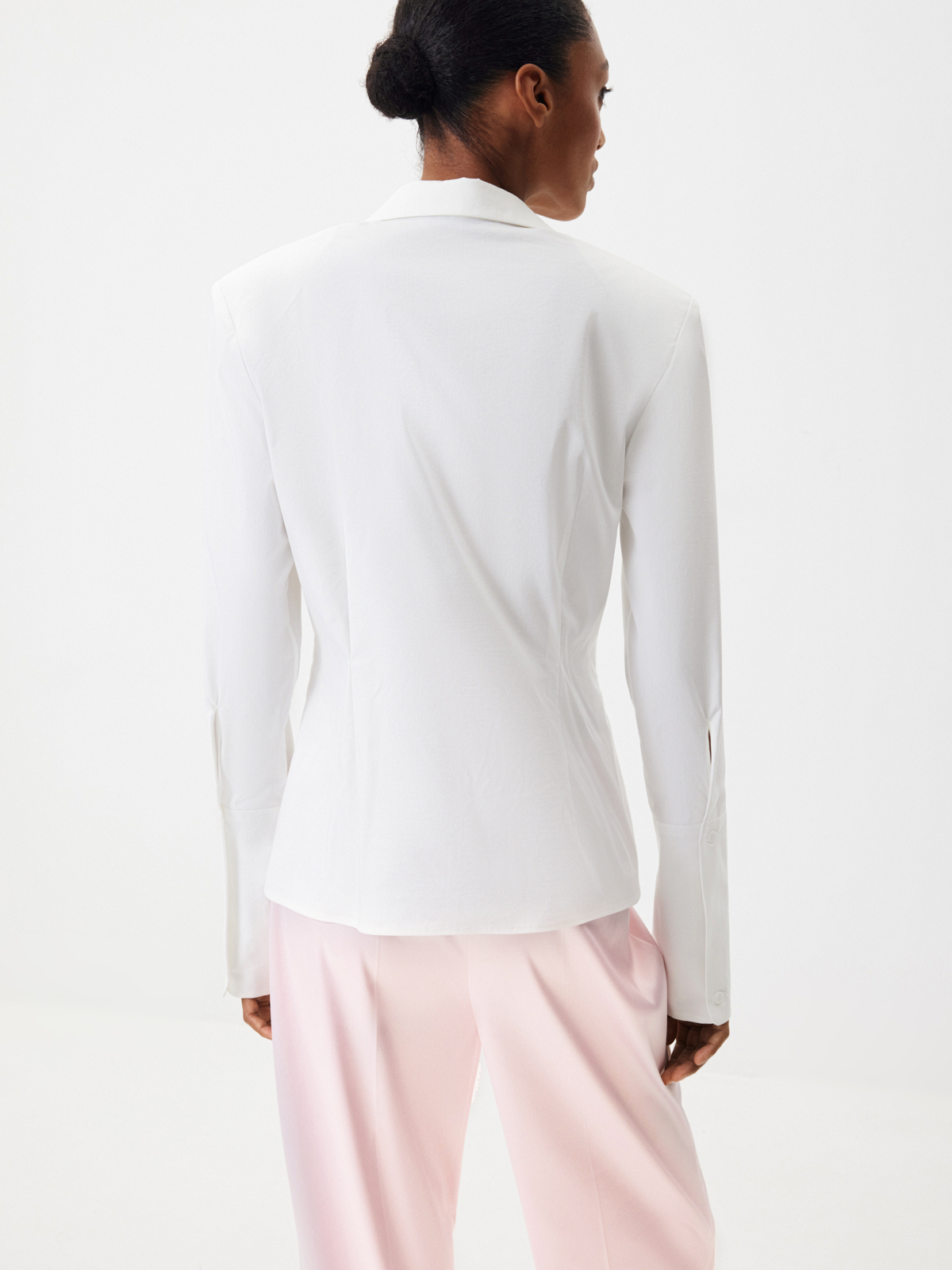 Акцентная рубашка «Медленный завтрак» как будто создана для моментов, когда мы можем посвятить время себе: неспешно собираться, выбирая, как в этот раз повязать косынку, наслаждаться кофе в тишине утреннего города. Приталенный крой с выразительной линией плеч подчеркивает силуэт, который хочется рассматривать, — идеальная альтернатива классическим прямым и свободным моделям. Для более расслабленного настроения расстегните несколько верхних пуговиц и отверните манжеты.