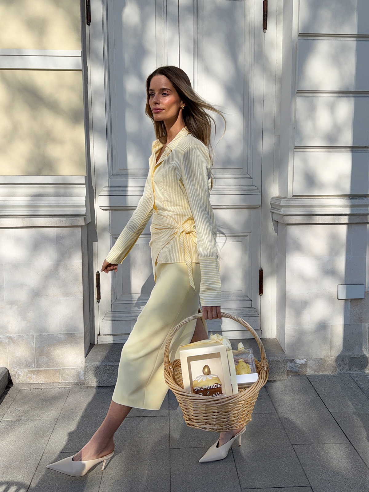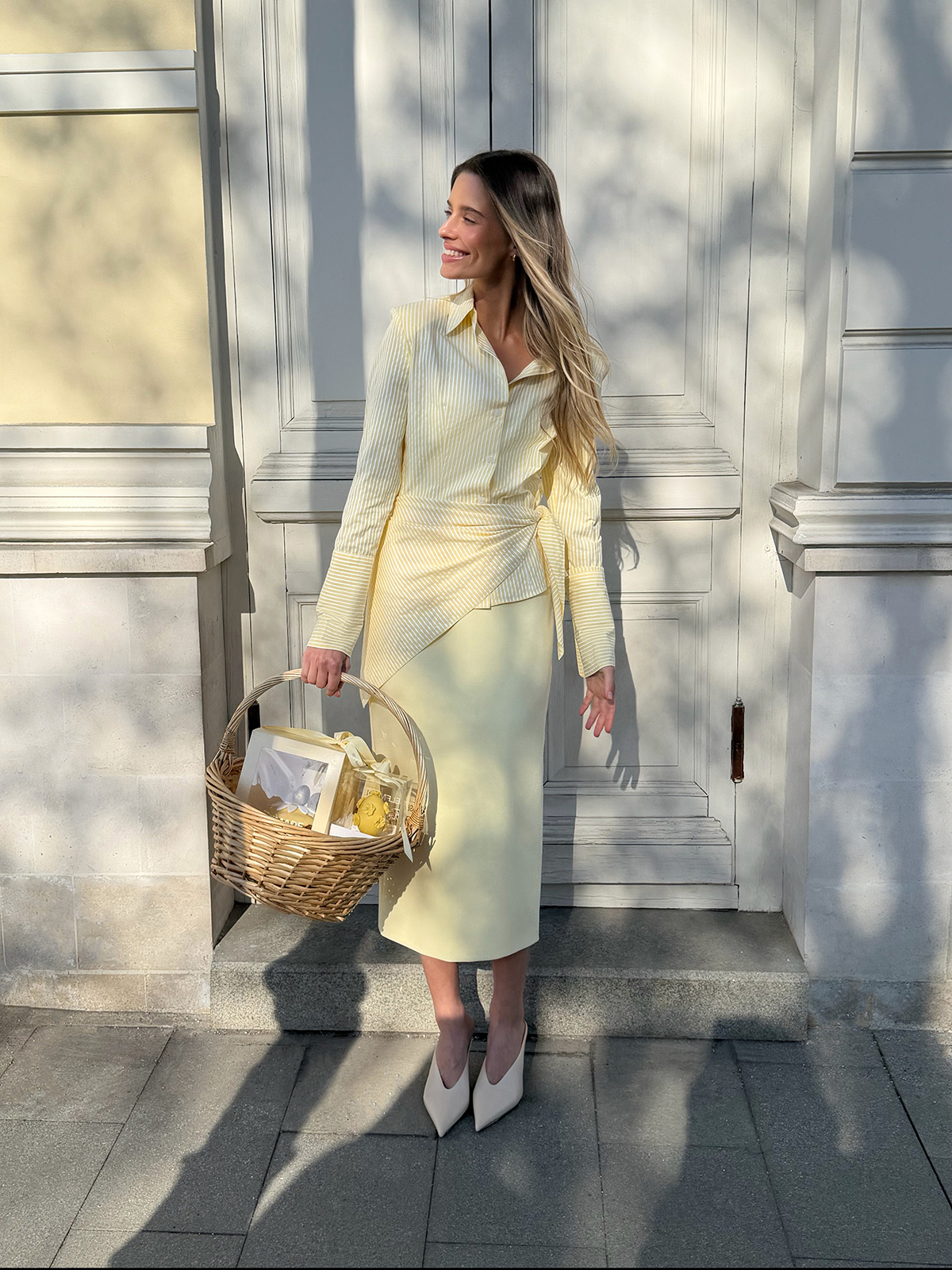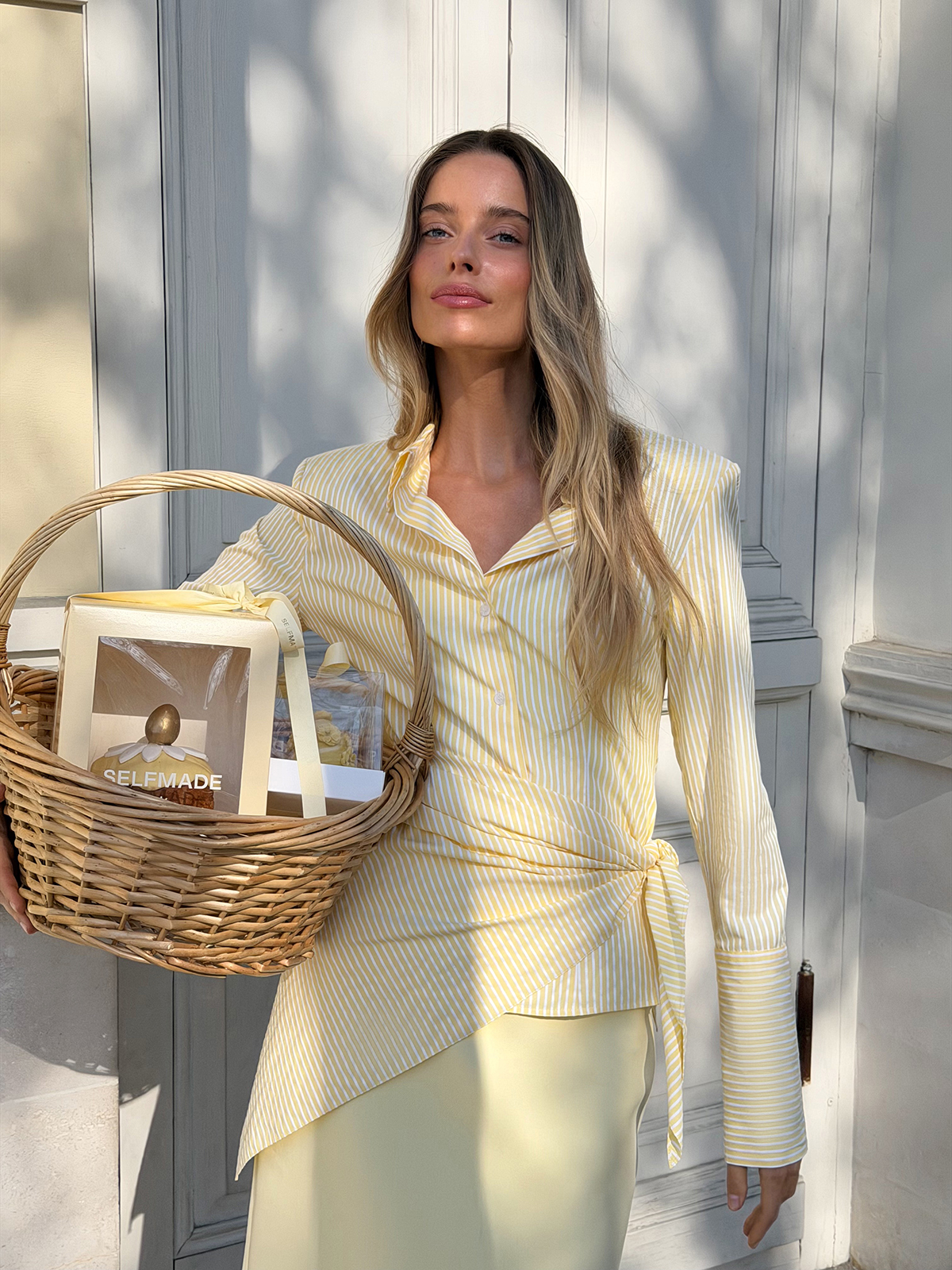 В акцентной рубашке «Искусство момента» даже самые простые события ощущаются по-особенному. Приталенный крой с выразительной линией плеч подчеркивает силуэт, который хочется рассматривать, — идеальная альтернатива классическим прямым и свободным моделям. Нежная рубашка дополнена косынкой в тон, которую можно повязать на голову, талию или аксессуары. Для более расслабленного настроения расстегните несколько верхних пуговиц и отверните манжеты.