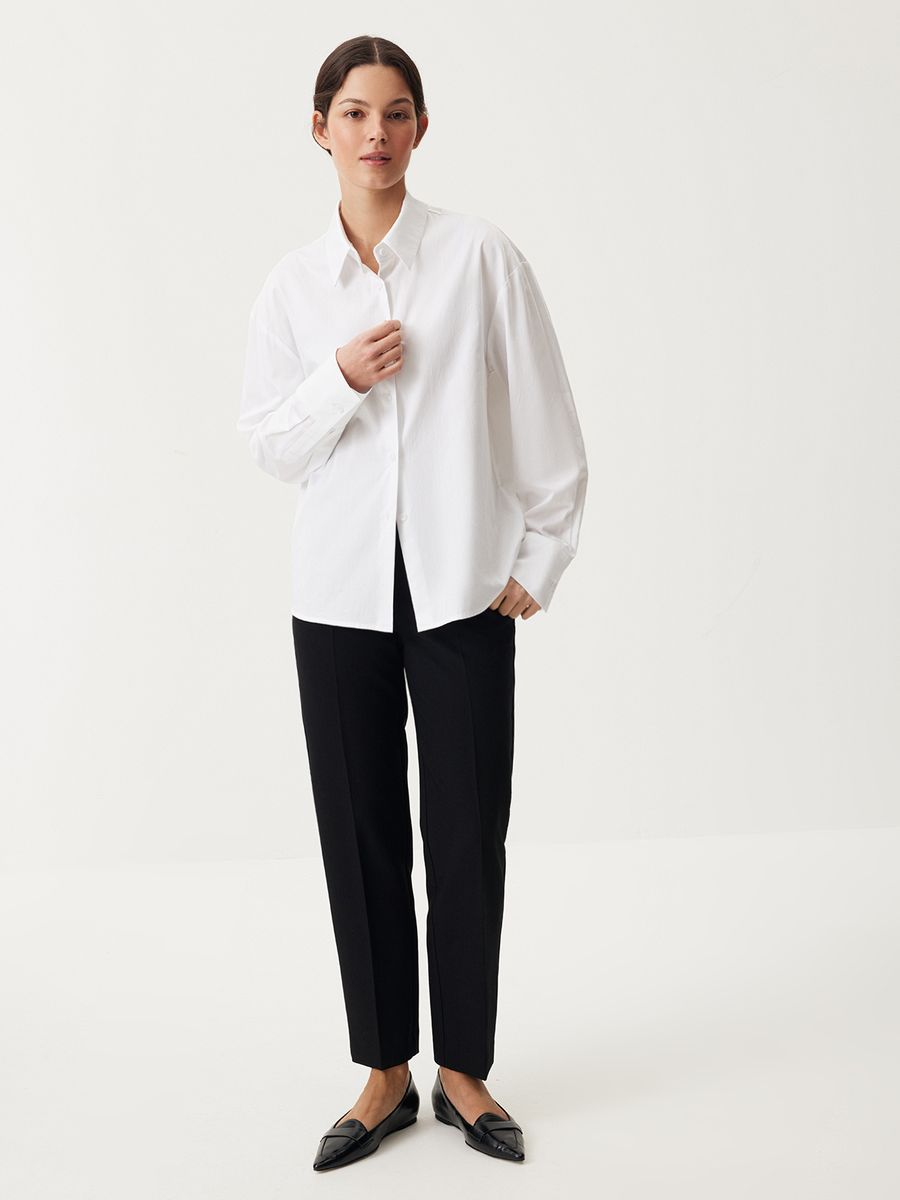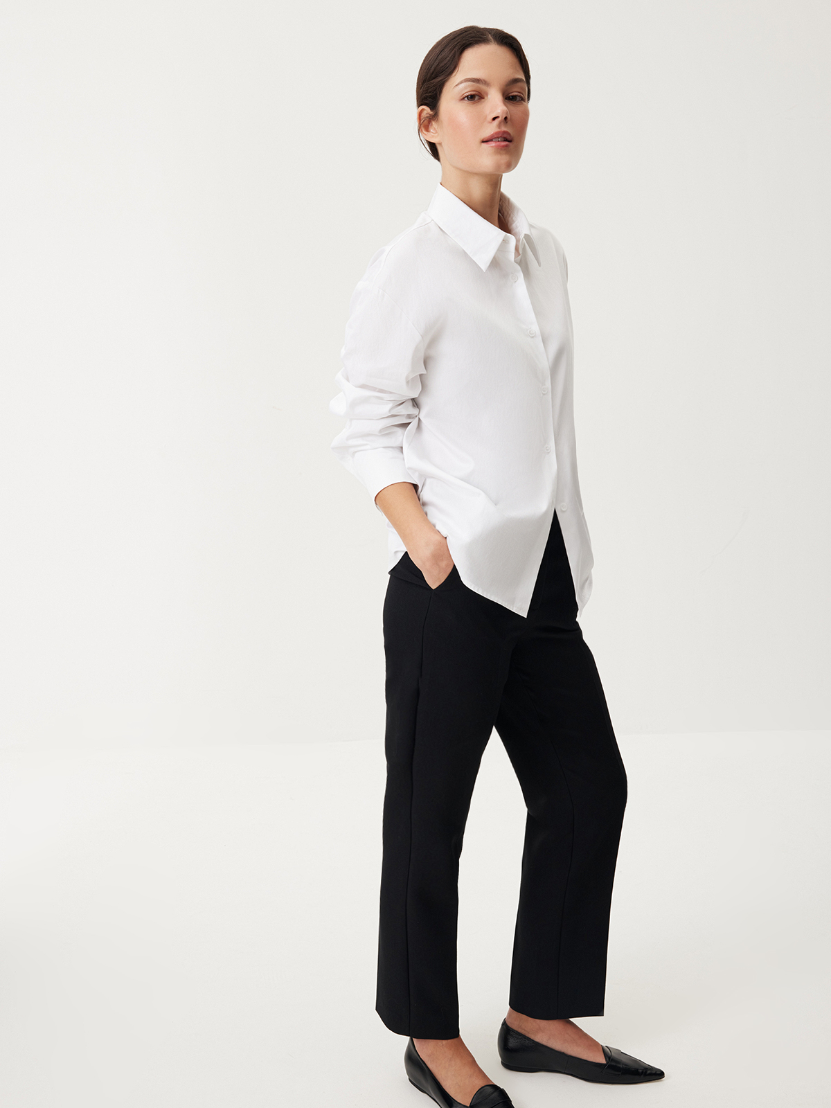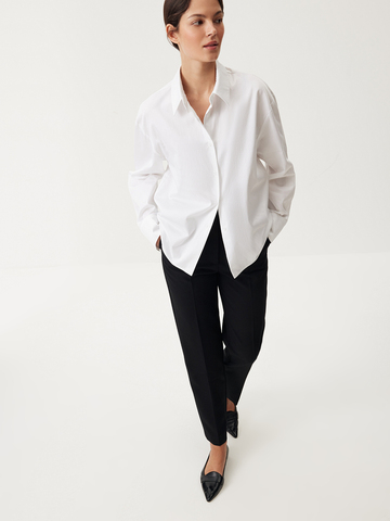Безупречная классика для динамичных будней — хлопковая рубашка Daily White. Универсальный айтем с продуманным прямым кроем, который удобно надевать под джемпер или жакет. Деликатные манжеты и воротник подчеркивают сдержанный характер модели. Носим в беспроигрышном дуэте с лаконичными брюками Tailoring. Для воскресного бранча создаем аутфит в непринужденном стиле француженок с джинсами Straight и яркой помадой.