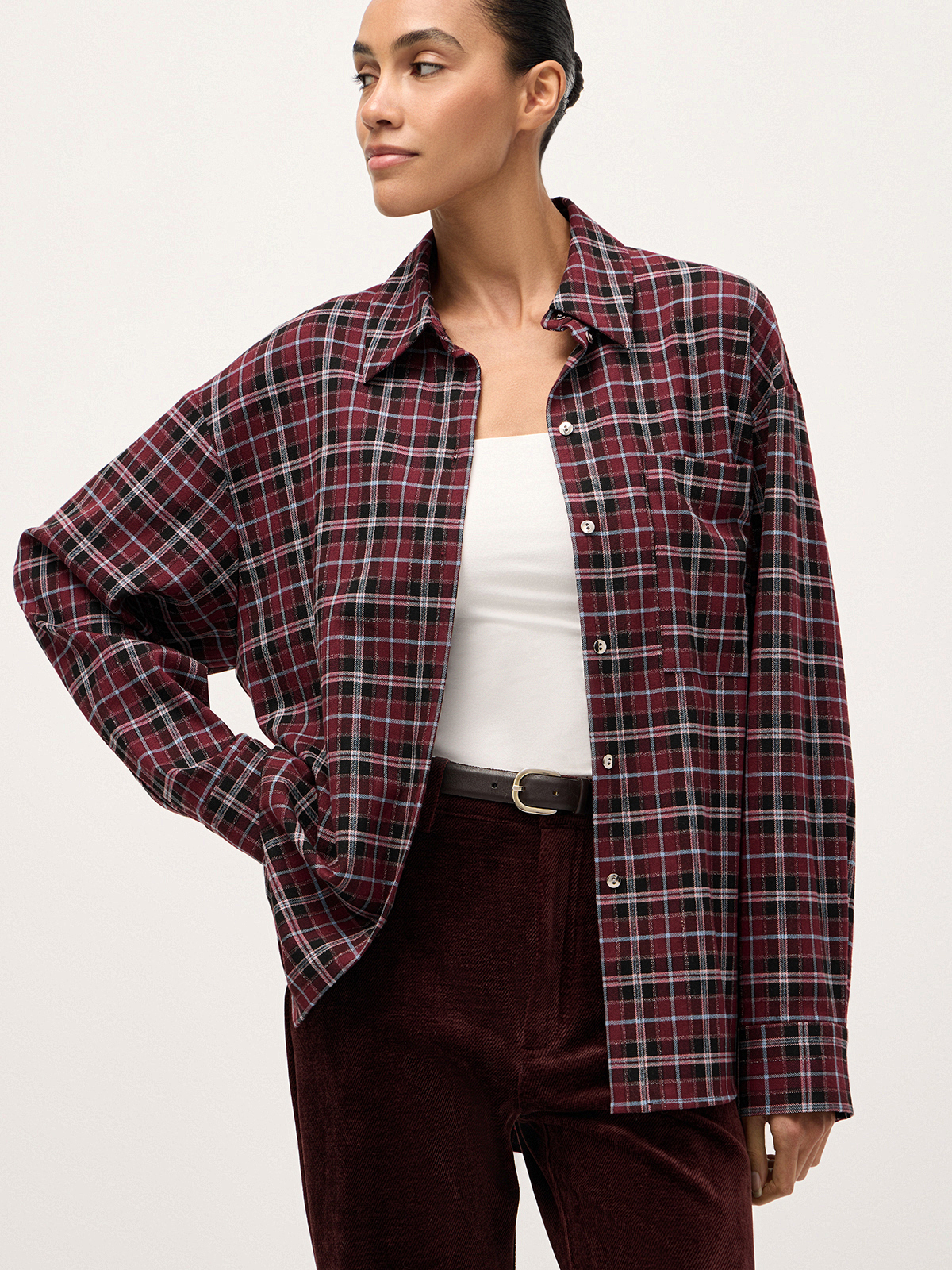 Эта свободная рубашка — настоящий must-have для осенних дней, когда хочется уюта и тепла. Её легко сочетать с комфортными костюмами из футера, объёмными свитерами или любимыми джинсами, создавая непринужденную стилизацию всего образа. Добавляем фактур в образ с помощью рубашки и непременно отдаем предпочтение многослойным аутфитам. Идеально подходит для прогулок по осеннему городу, в те моменты, когда можно насладиться прохладой и мягким утренним светом