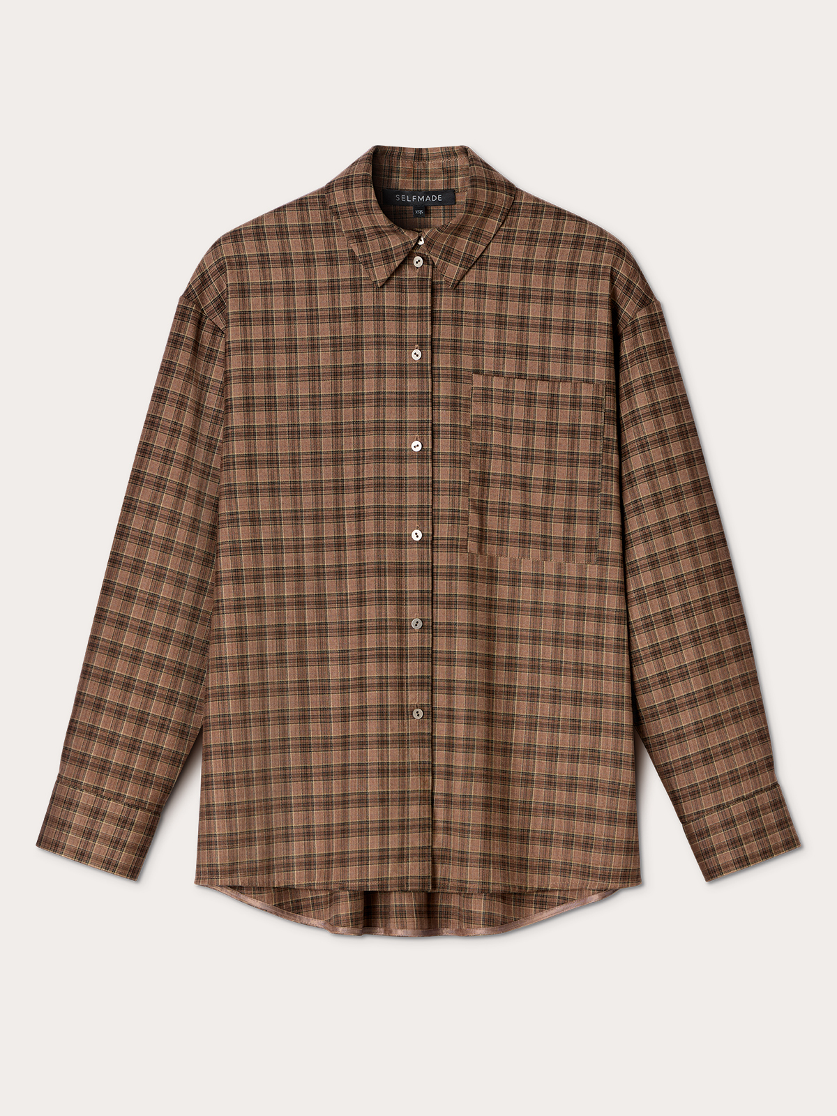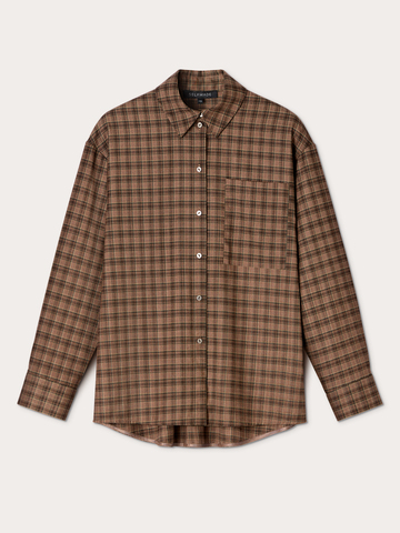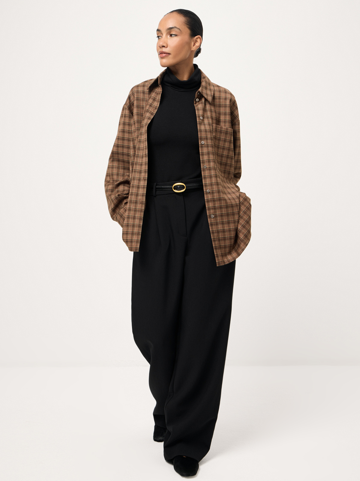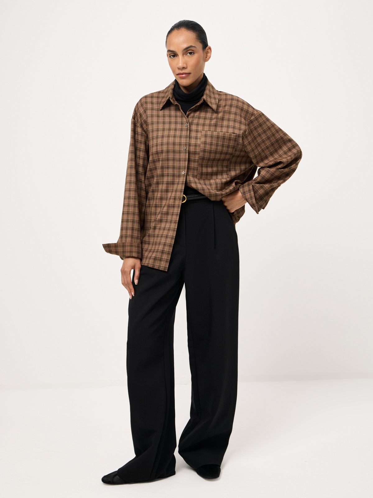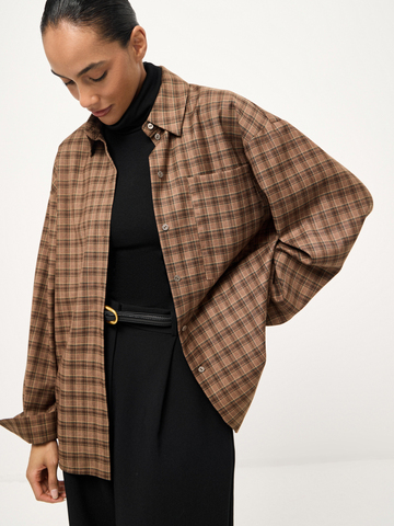 Один из тех айтемов, без которых невозможно представить осенний сезон — уютная рубашка в клетку browny tartan. Модель свободного силуэта с лаконичными металлическими пуговицами создана из мягкой структурной ткани. Многогранное изделие безупречно выглядит соло, но раскрывается в полной мере через многослойные стилизации: с облегающей футболкой base, топом на тонких бретелях или деликатной водолазкой с шерстью. Для непринужденных casual аутфитов выбираем классические джинсы straight или создаем выразительное фактурное сочетание с брюками или юбкой из вельвета.
