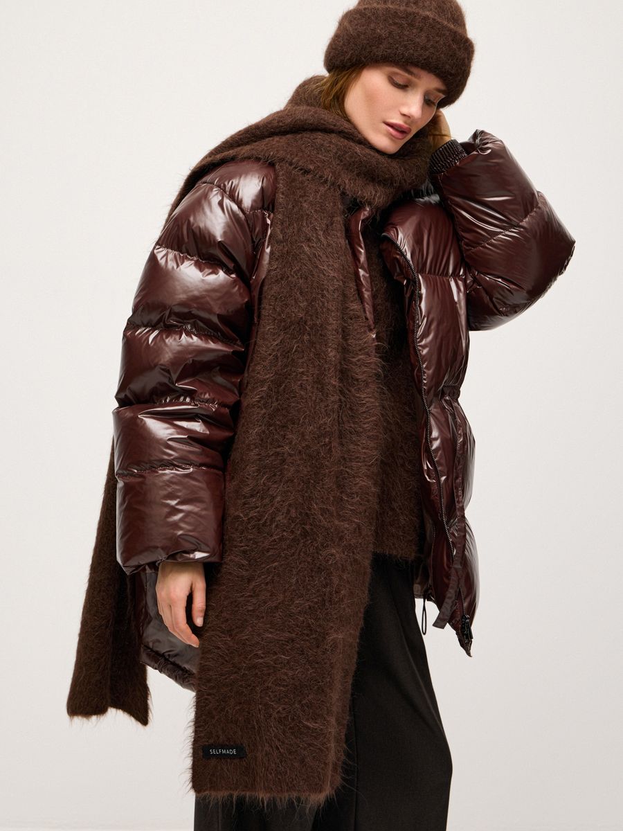 Пушистая шапка Overlayer — эффектность и уют для выразительных образов в холодном сезоне. Модель с мягчайшей фактурой выполнена из шерсти альпака, согревающей и нежной. Роскошный шоколадный оттенок позволяет легко интегрировать лаконичный айтем в осенне-зимние образы и создавать свежие стилизации. Собираем гармоничный сет с шарфом в тон, который выручит в холодную погоду и придаст настроения любому образу.