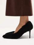 Туфли с верхом из пушистого меха Chic&Fancy — воплощение легкости, игривости и непринужденной женственности. Идеальны для моментов, когда хочется чувствовать себя раскованно и собирать восхищенные взгляды. Трендовая объемная фактура и аккуратный каблук делают пару безупречным выбором для вечеринок и торжественных событий. Носим в монохромном statement-сочетании с утонченной юбкой-миди и структурным жакетом Caviar Black.