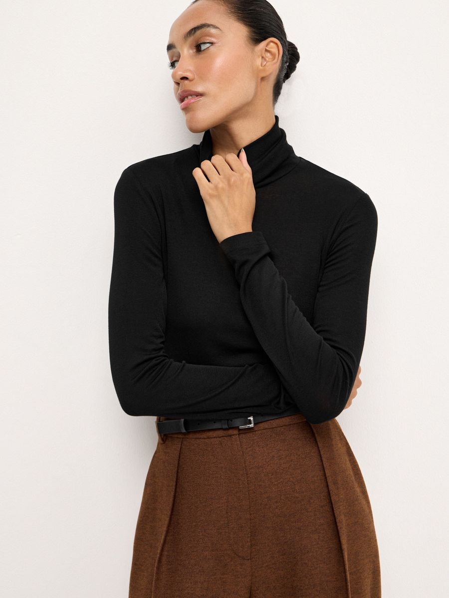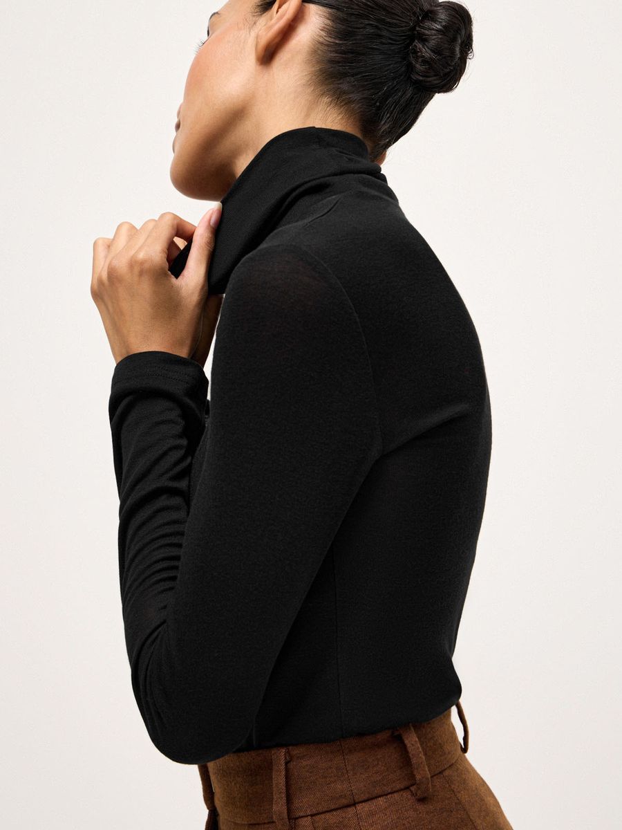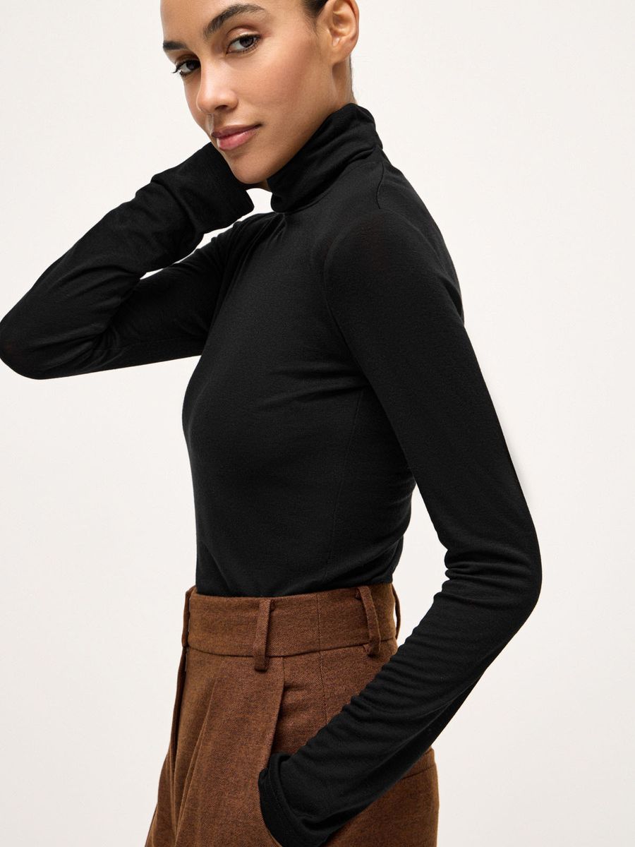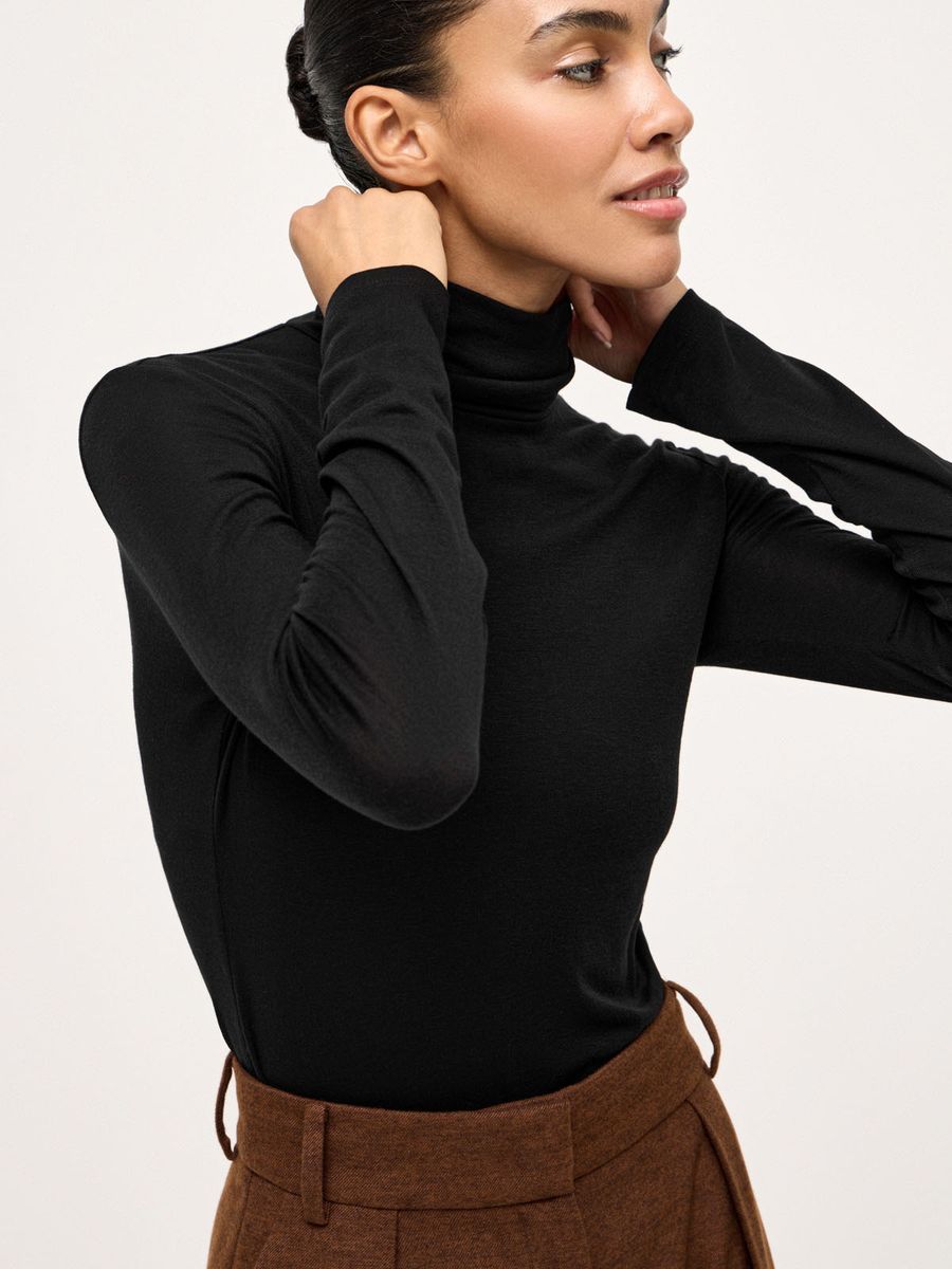 Деликатная водолазка Successful Black — мастхэв для стильных образов в холодном сезоне. Облегающий силуэт и воротник-стойка с мягкой драпировкой идеальны для создания многослойных сочетаний с рубашками, джемперами и жакетами. Трикотаж из смеси лиоцелла и шерсти с нежнейшей фактурой делает айтем любимой базой, к которой хочется возвращаться снова и снова. Не ограничиваемся одной моделью и собираем безупречную осеннюю палитру оттенков, стилизуя с любым низом: от непринужденного денима до утонченной юбки-карандаш или идеальных palazzo.