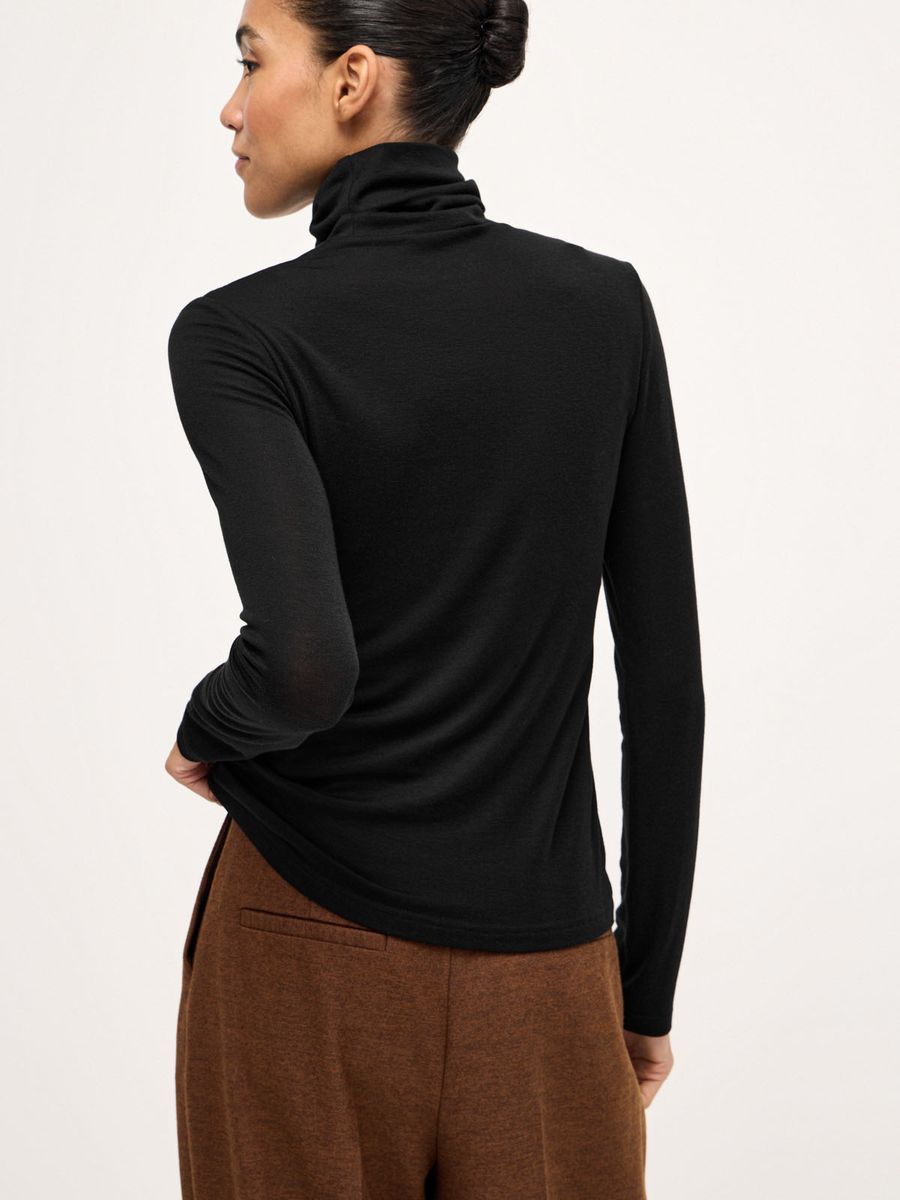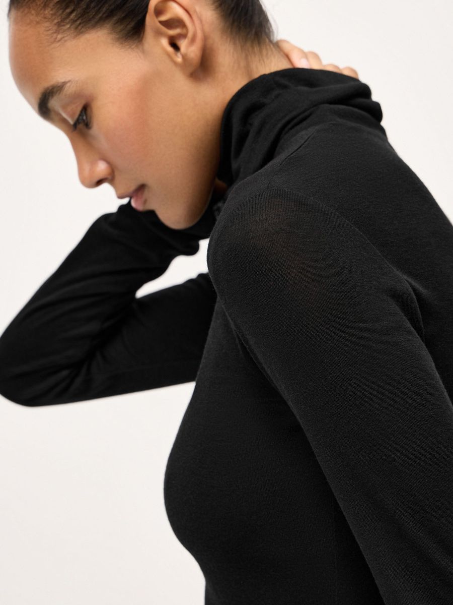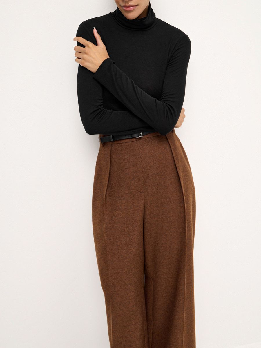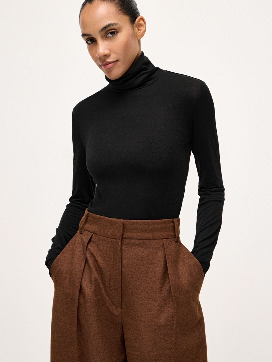 Деликатная водолазка Successful Black — мастхэв для стильных образов в холодном сезоне. Облегающий силуэт и воротник-стойка с мягкой драпировкой идеальны для создания многослойных сочетаний с рубашками, джемперами и жакетами. Трикотаж из смеси лиоцелла и шерсти с нежнейшей фактурой делает айтем любимой базой, к которой хочется возвращаться снова и снова. Не ограничиваемся одной моделью и собираем безупречную осеннюю палитру оттенков, стилизуя с любым низом: от непринужденного денима до утонченной юбки-карандаш или идеальных palazzo.