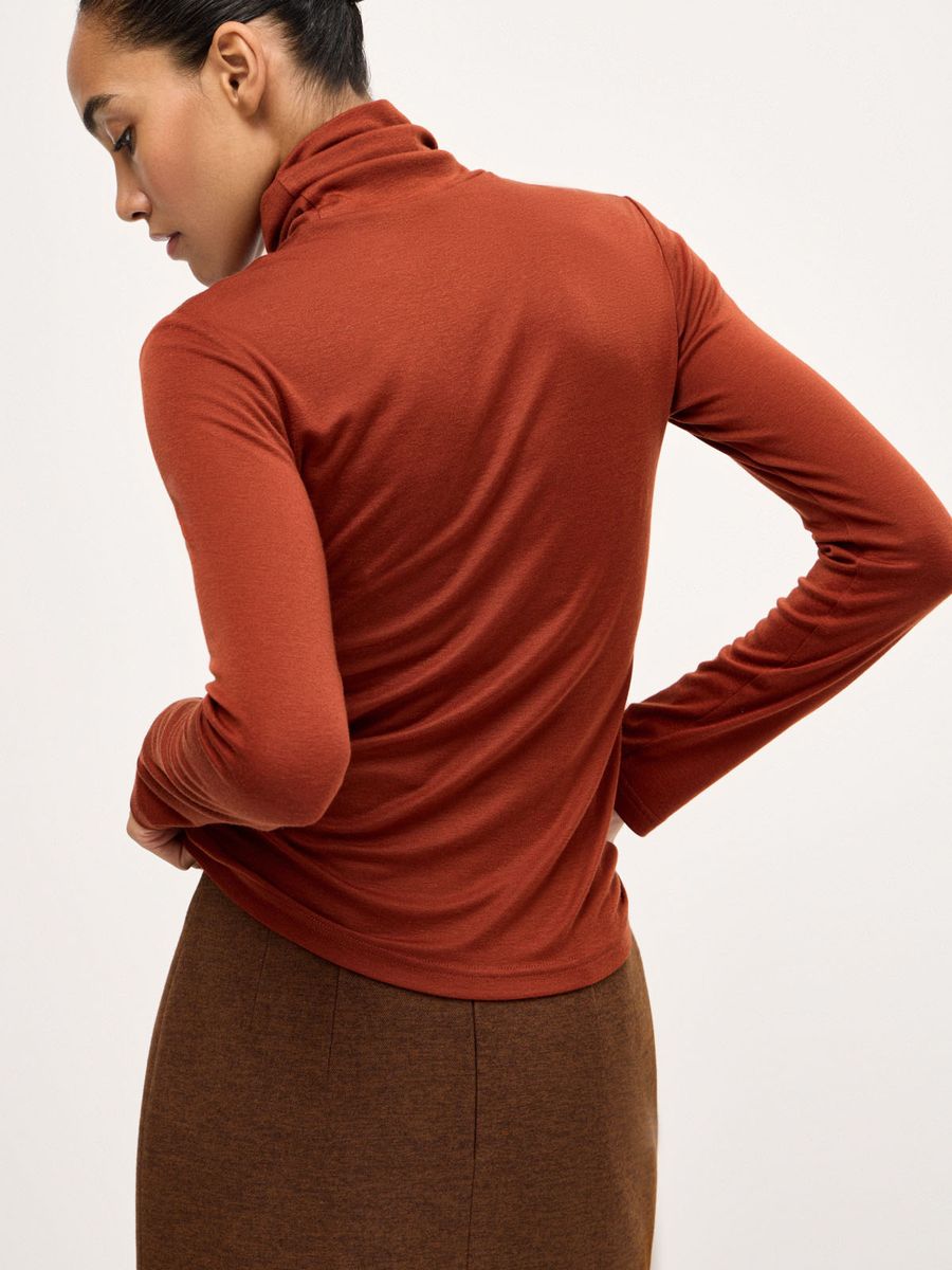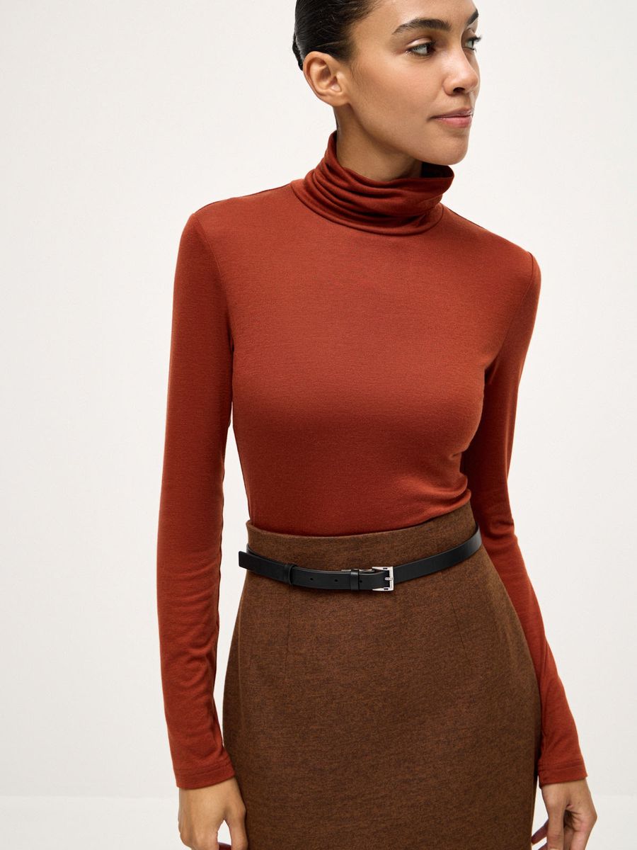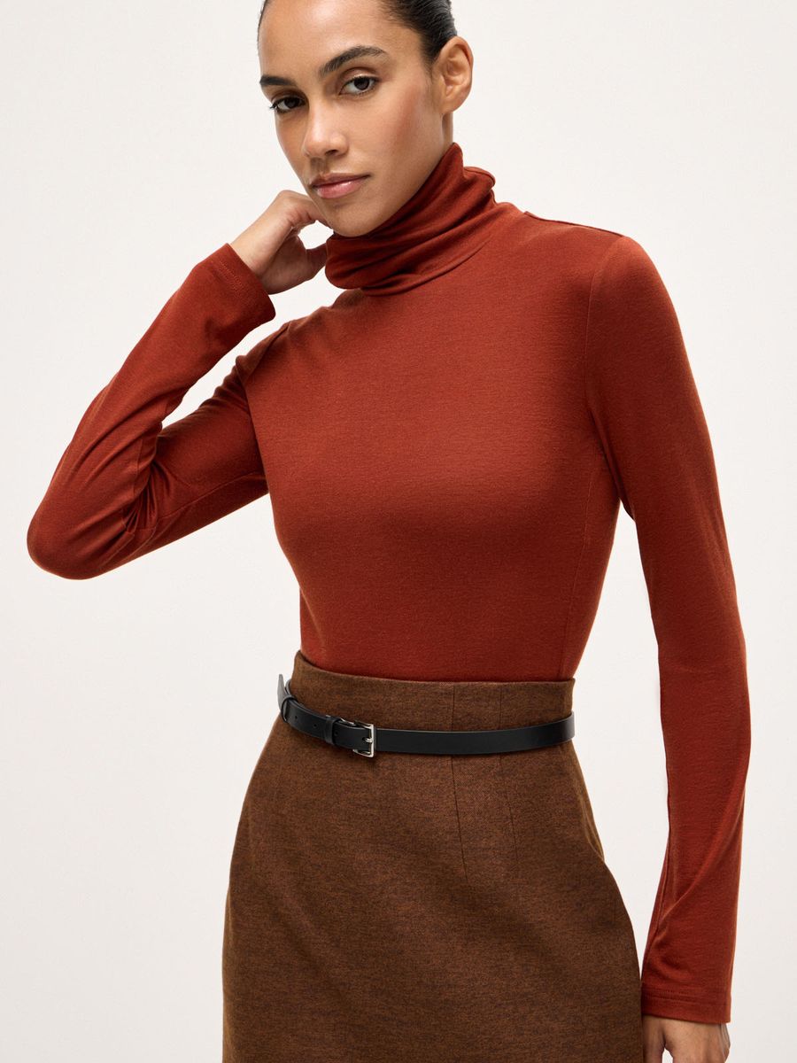 Деликатная водолазка Fall Chic — мастхэв для стильных образов в холодном сезоне. Облегающий силуэт и воротник-стойка с мягкой драпировкой идеальны для создания многослойных сочетаний с рубашками, джемперами и жакетами. Трикотаж из смеси лиоцелла и шерсти с нежнейшей фактурой делает айтем любимой базой, к которой хочется возвращаться снова и снова. Не ограничиваемся одной моделью и собираем безупречную осеннюю палитру оттенков, стилизуя с любым низом: от непринужденного денима до утонченной юбки-карандаш или идеальных palazzo.
