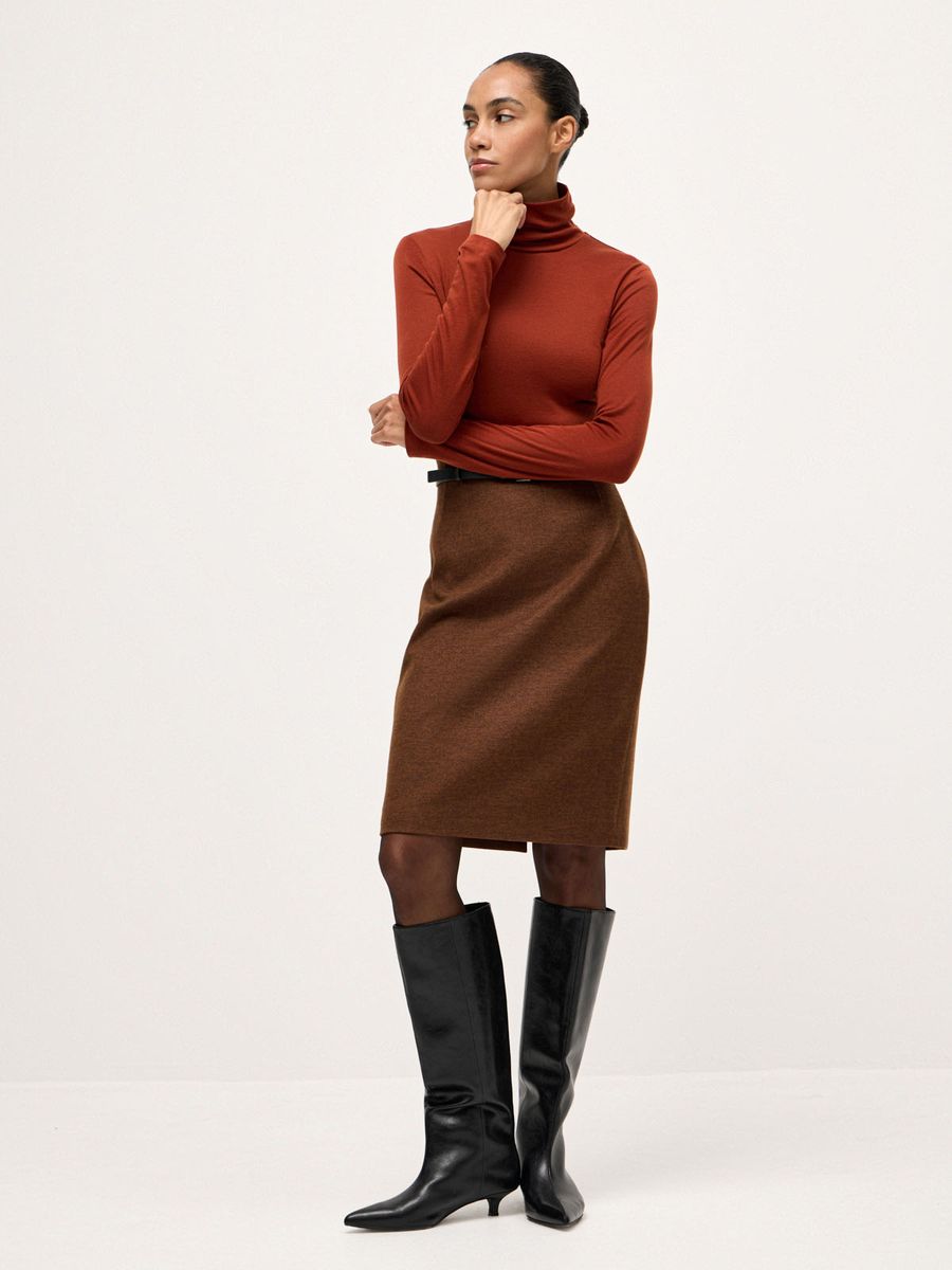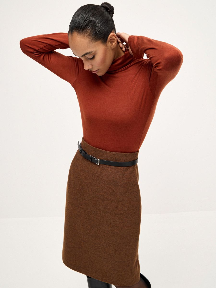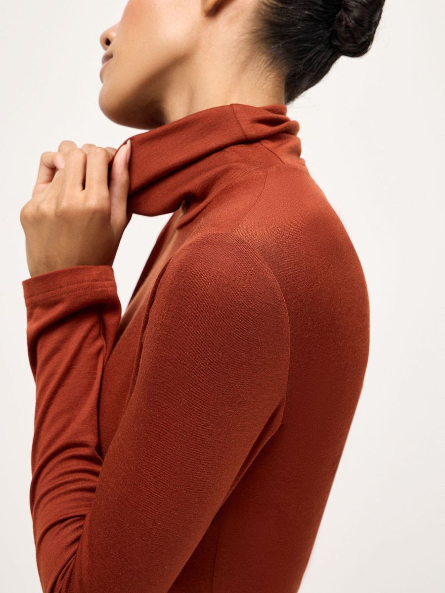 Деликатная водолазка Fall Chic — мастхэв для стильных образов в холодном сезоне. Облегающий силуэт и воротник-стойка с мягкой драпировкой идеальны для создания многослойных сочетаний с рубашками, джемперами и жакетами. Трикотаж из смеси лиоцелла и шерсти с нежнейшей фактурой делает айтем любимой базой, к которой хочется возвращаться снова и снова. Не ограничиваемся одной моделью и собираем безупречную осеннюю палитру оттенков, стилизуя с любым низом: от непринужденного денима до утонченной юбки-карандаш или идеальных palazzo.