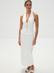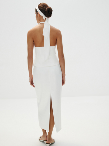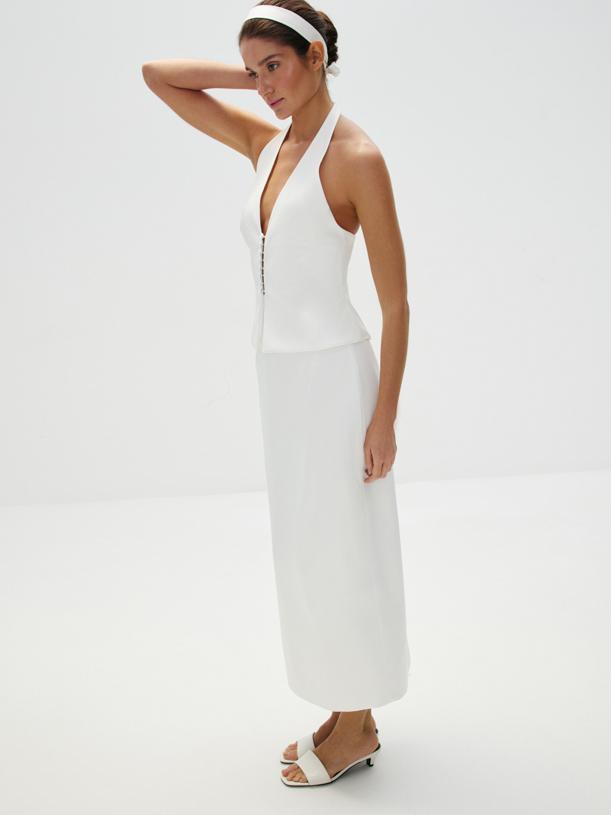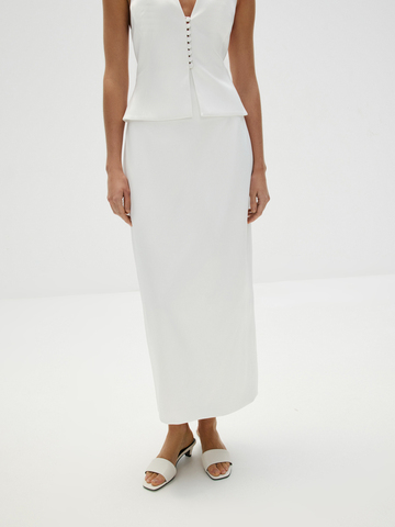 Юбка-миди с сатиновым блеском «Красота момента» — женственная классика в самом нежном исполнении. Вдохновляемся роскошью вневременного силуэта с завышенной талией и высоким разрезом сзади, подчеркивающим каждое элегантное движение. Собираем восхищающий молочный сет с изящным жилетом, выбирая легкость и чувственность главными спутниками в ваш торжественный день.