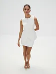 Длина мини. Завышенная линия талии. Застежка на молнию на спинке. На подкладке.