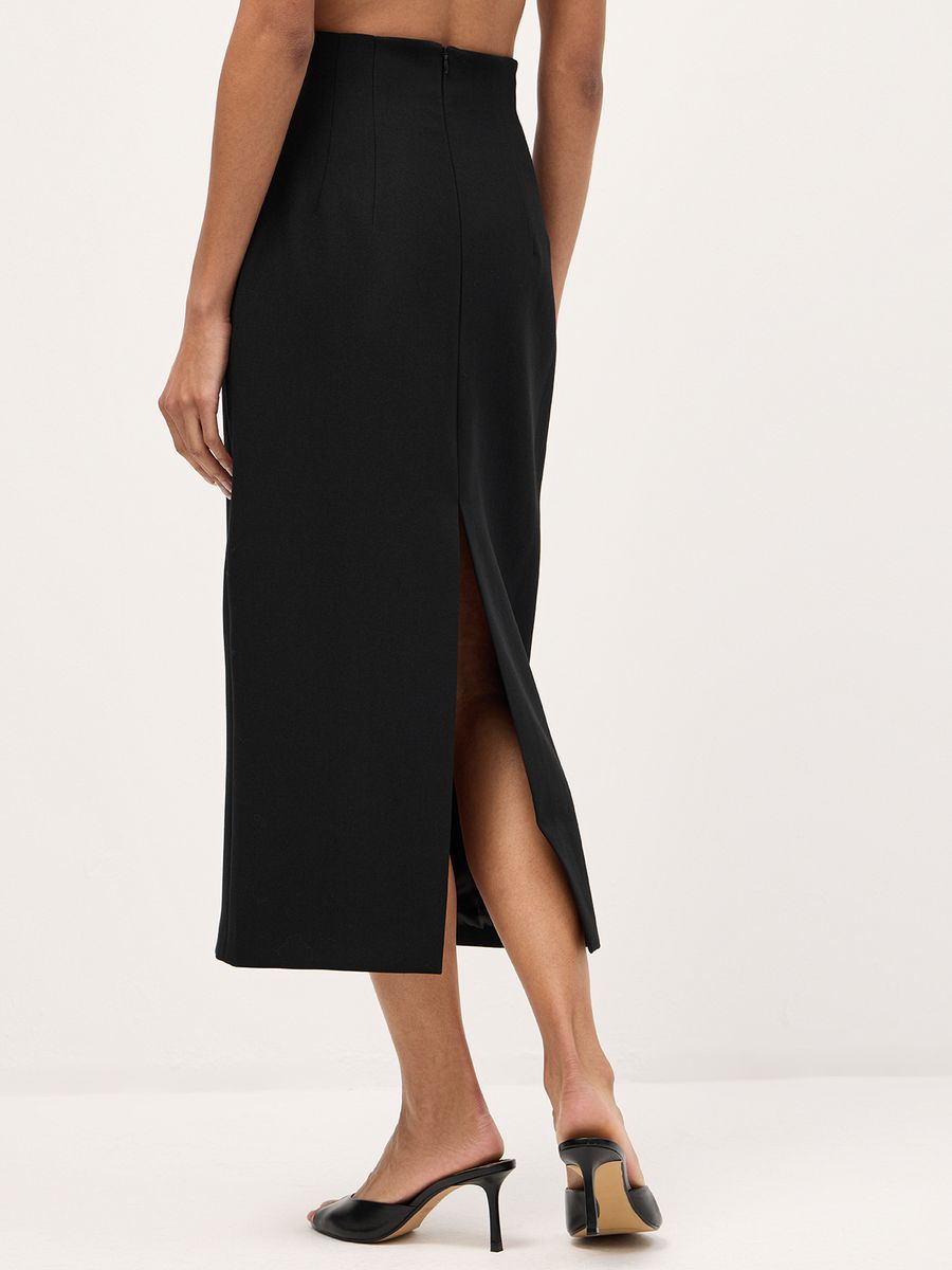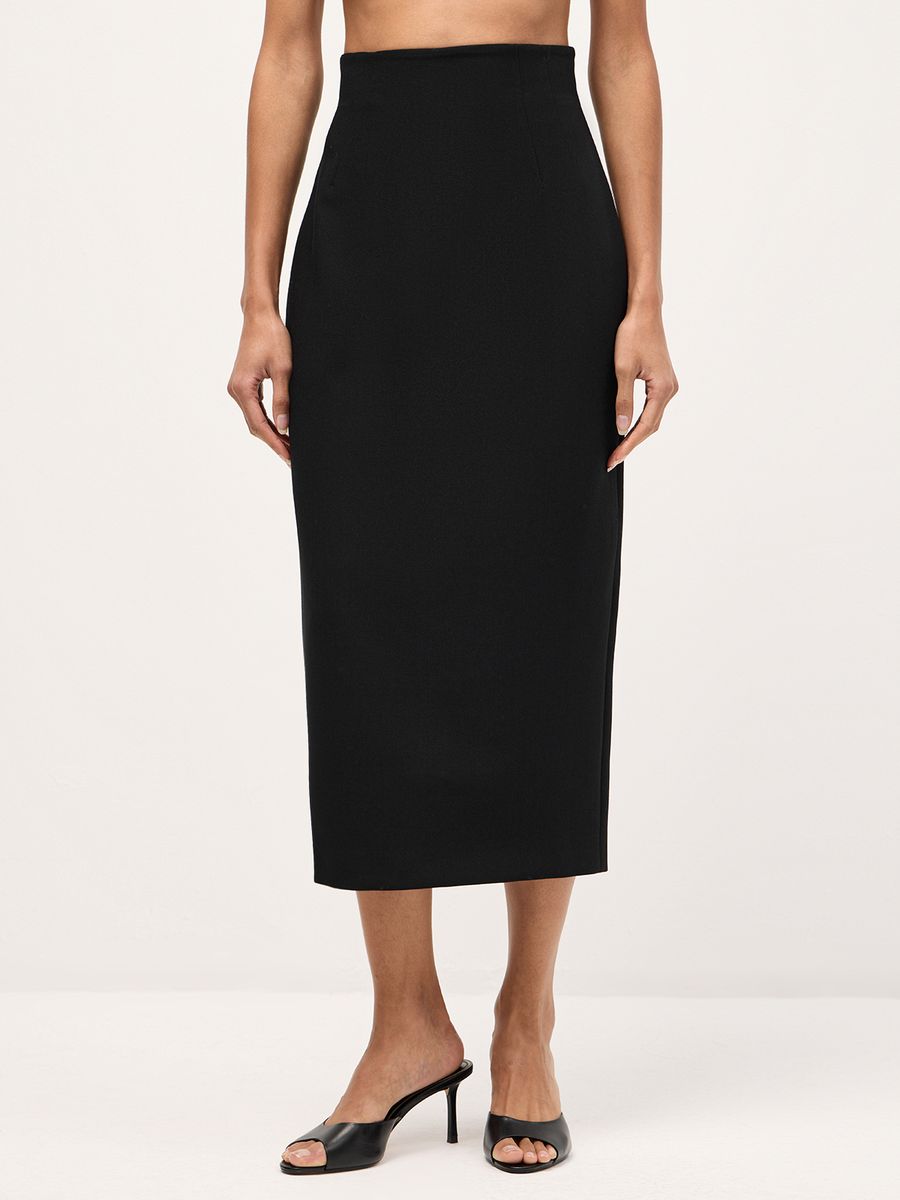 Утонченная юбка-миди Caviar Black — культовая база, не теряющая актуальности более полувека. Облегающая модель со слегка завышенной линией талии создает акцент на бедрах и вытягивает силуэт, а высокая шлица добавляет сдержанному изделию нотку игривости. Идеальный айтем для сочетаний в стиле офисного шика — женственный, строгий и притягательный. Носим с классической рубашкой из хлопка Office Day и эффектным структурным жакетом в тон — смотрим на деловой стиль свежим взглядом и не боимся экспериментировать.