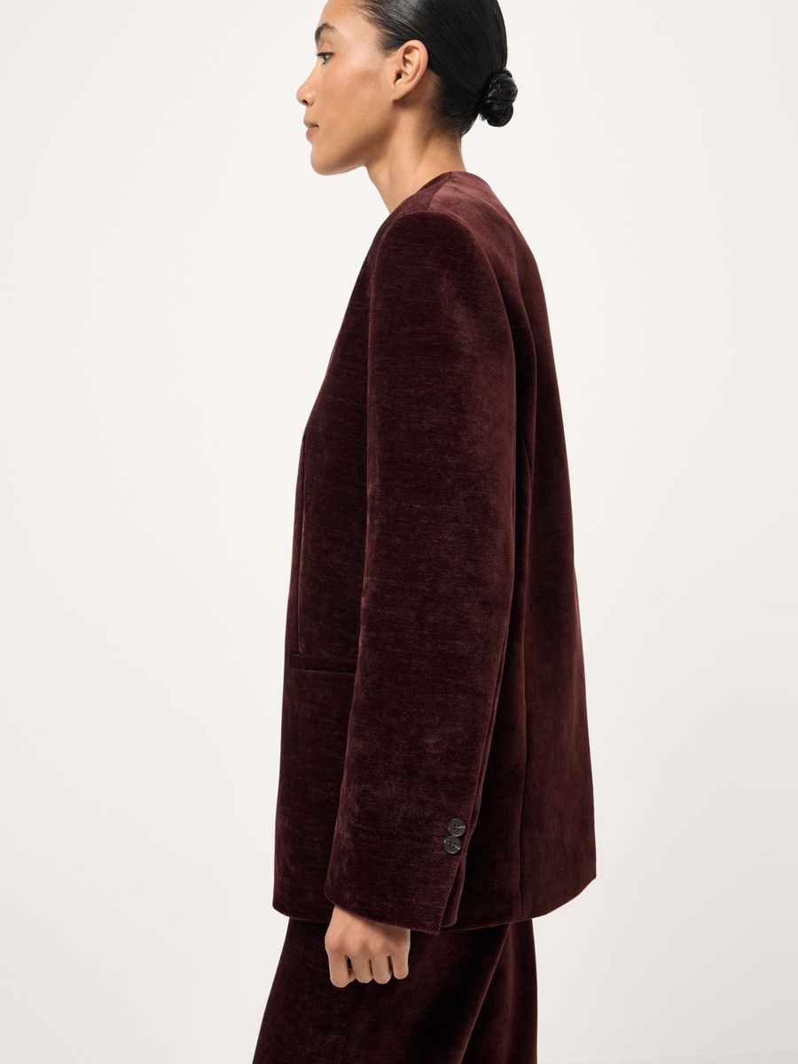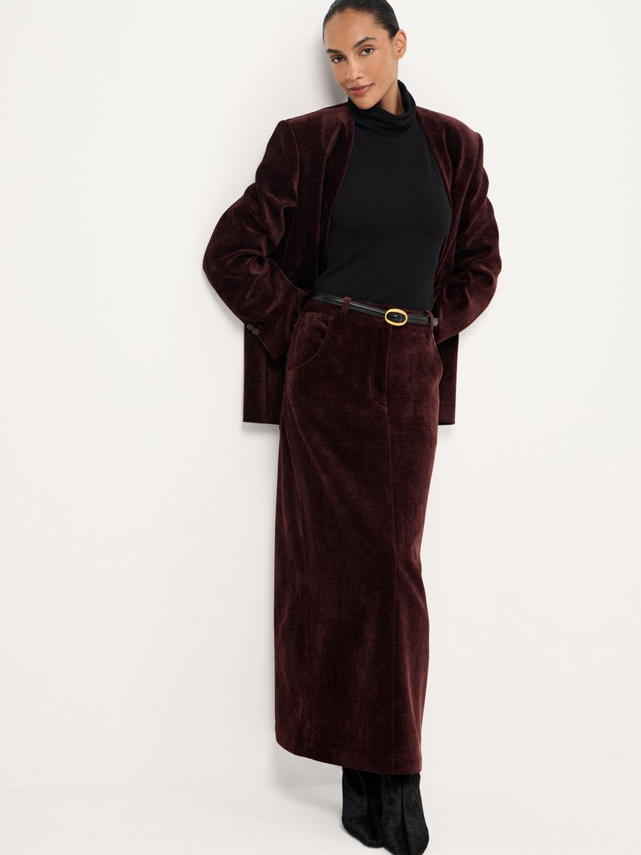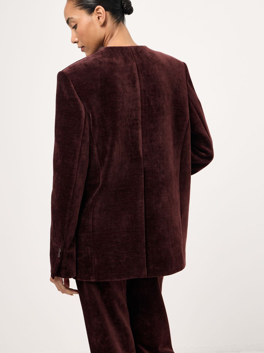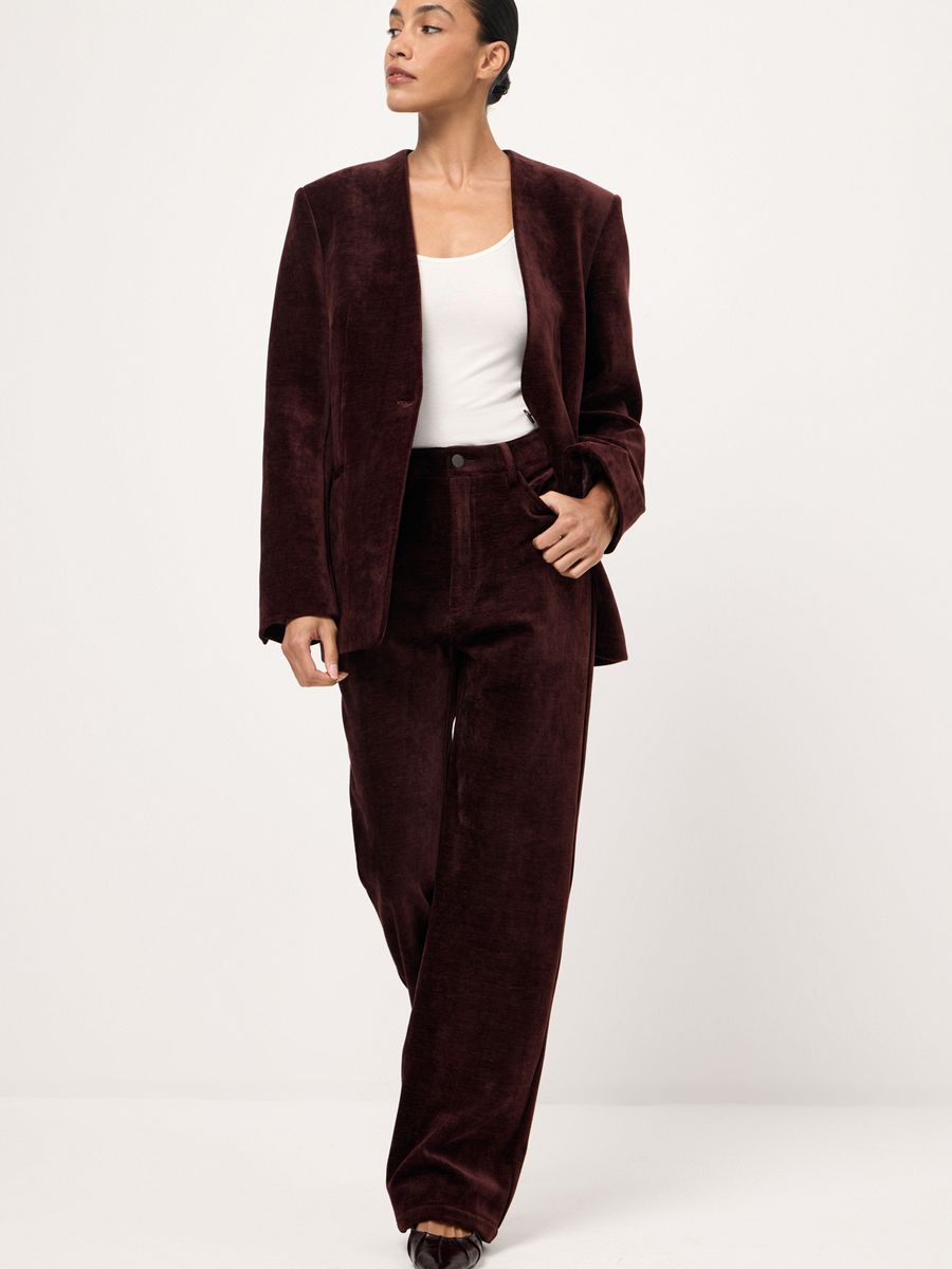 Лаконичный жакет из вельвета Vintage Wine — чистота линий и роскошная фактура ткани. Винный оттенок придает образу глубины и изысканного шарма. Четкая линия плеч, V-образный вырез и застежка на одну пуговицу становятся утонченными акцентами модели. Минималистичный силуэт в сочетании со структурным вельветом создают идеальный тандем для динамичной осени в большом городе — когда хочется выглядеть собранно, но ощущать уют и мягкость. Носим с прямыми брюками в тон для безупречного сета с легким оттенком ностальгии и добавляем базу в зависимости от сценария предстоящего дня: от облегающего топа до рубашки Office Day.
