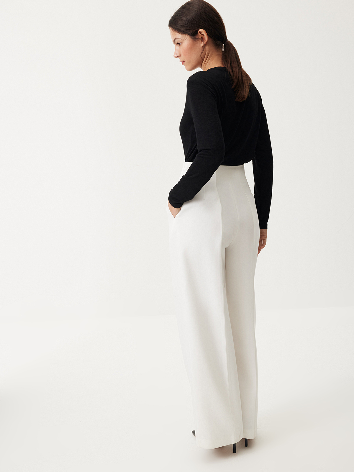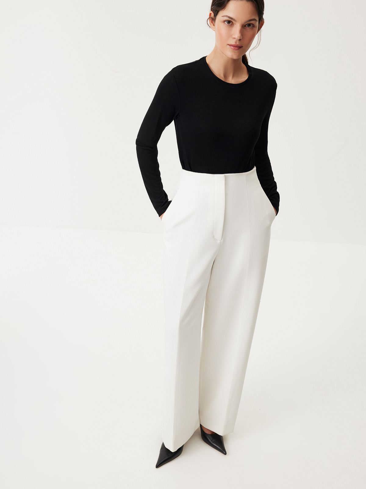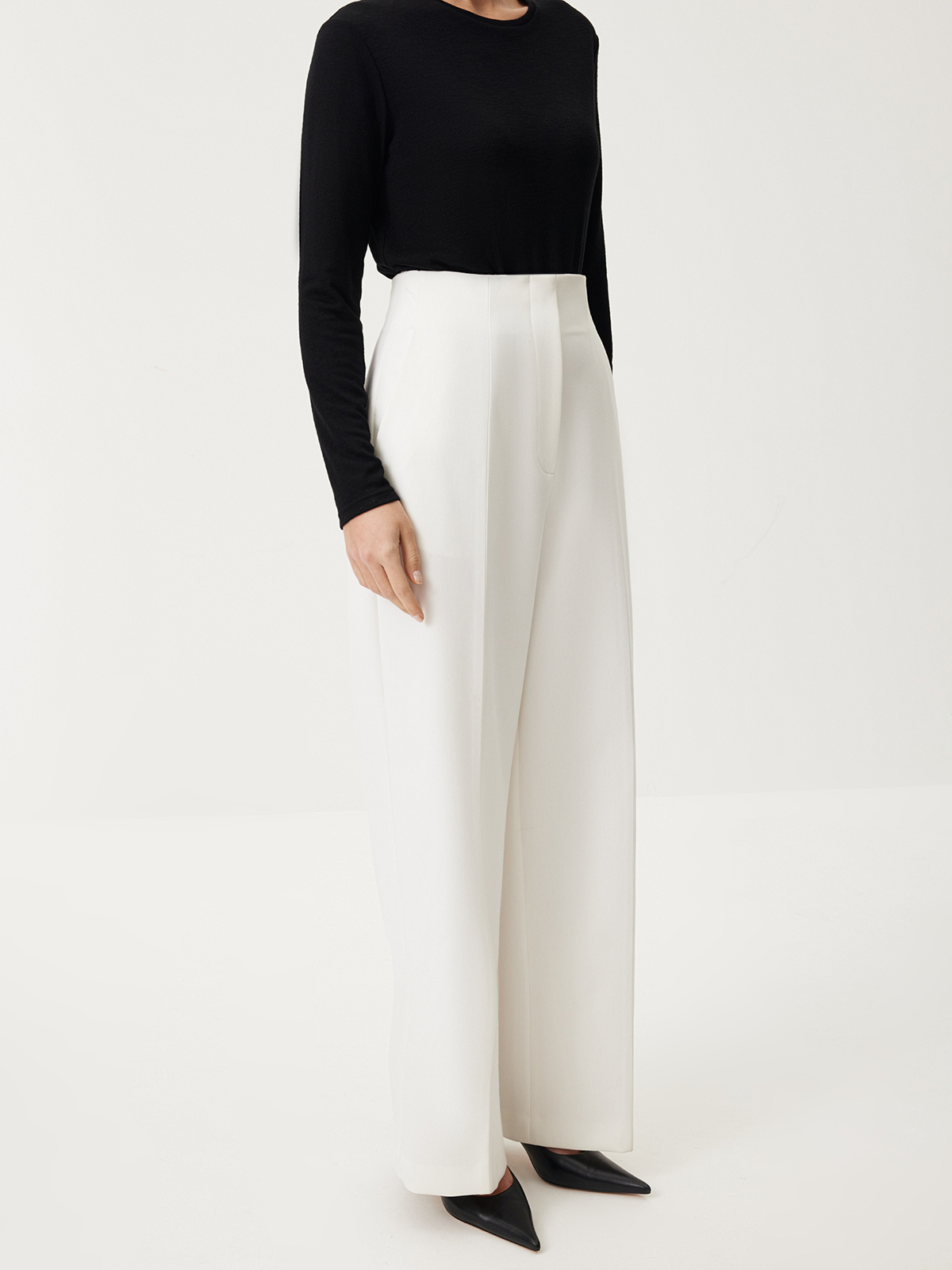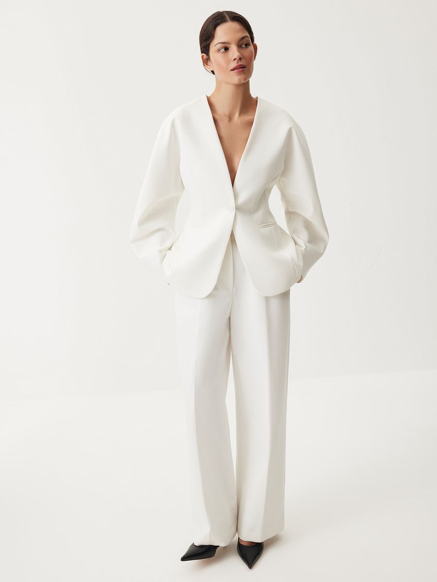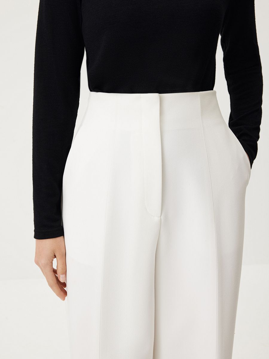 Брюки White Spell — безупречный выбор для вашей классической капсулы. Модель с высокой талией и стрелками создает выразительный силуэт, плавно подчеркивая изящные изгибы фигуры. То самое изделие, в котором вы будете чувствовать себя утонченной и изысканной в любой ситуации: от динамичных рабочих будней до вечерних мероприятий и насыщенных выходных. Носим в комбинациях с минималистичными топами или элегантными фигурными жакетами — всегда актуально и женственно.
