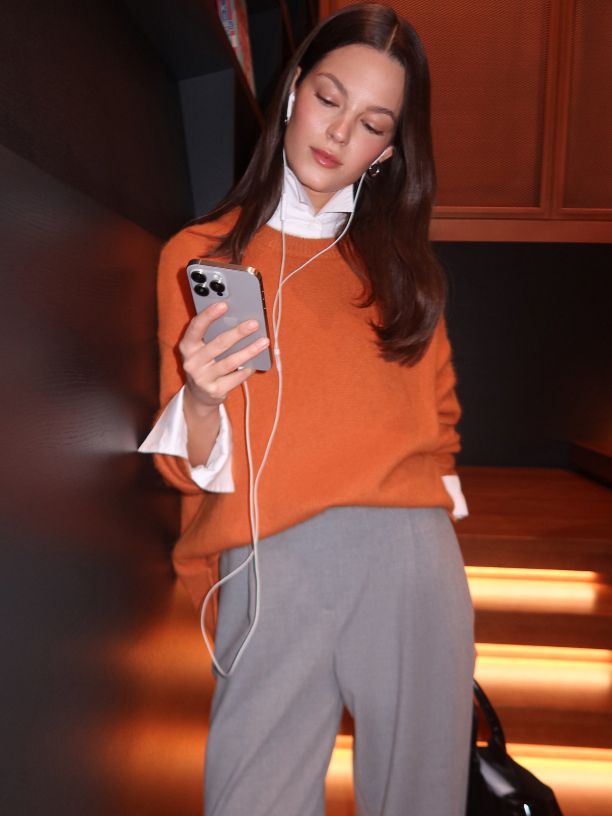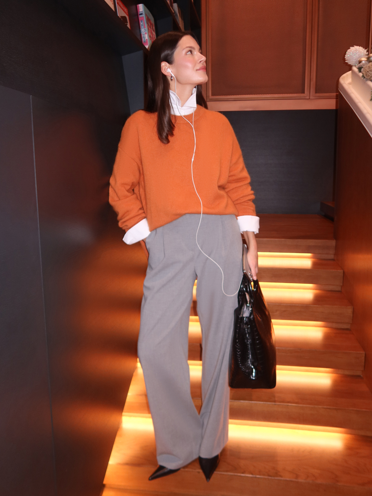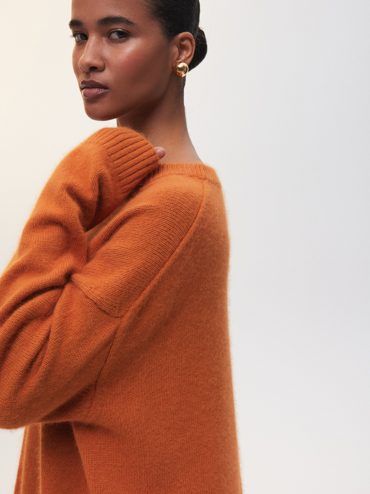 Наш классический объемный джемпер Merino Essential в ярком мандариновом цвете — специально для новогодней коллекции. Модель свободного кроя со слегка удлиненной спинкой идеально впишется в любой гардероб, добавит атмосферу праздника повседневным образам и нотку уюта вечерним выходам. Роскошная пряжа с шерстью енота и австралийского мериноса дарит мягкие прикосновения и бережно согревает. Создаем одновременно расслабленный и эффектный аутфит с брюками Eastern muse и изящными босоножками.
