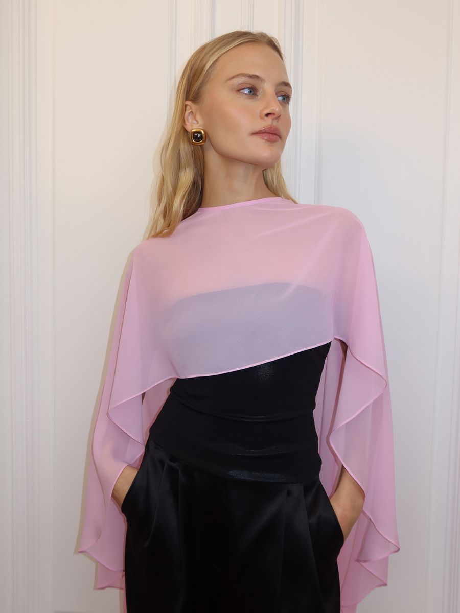 Невесомая вуаль Pink mist — тот самый айтем, создающий из любого образа роскошное сочетание с ноткой таинственности. Легкая струящаяся ткань в розовом оттенке покрывает кожу нежной полупрозрачной дымкой. Свободный крой позволяет вуали эффектно развеваться при движении и дарит простор для стилизаций. Собираем изящный образ, пропитанный атмосферой волшебства, с сияющими брюками Jasmine dream в тон и лаконичным топом-бандо Tube.
