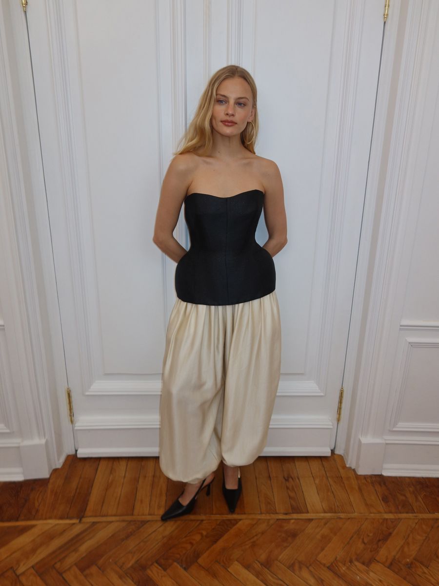 Скульптурный корсет Moon Night — искусное воплощение роскоши и сказочного блеска новогоднего сезона. Идеален для тех моментов, когда хочется быть фееричной и создавать атмосферу праздника внутри и снаружи. Смелый крой с плавными изгибами акцентирует зону декольте и подчеркивает выразительную линию талии, а плотная ткань с благородным сиянием добавляет образу нотку волшебства. Носим айтем как главный элемент праздничных сочетаний или выбираем быть extra, стилизуя корсет с утонченной юбкой-миди в тон. Пожалуйста, обратите внимание, что данная модель маломерит на полразмера. Рекомендуем ориентироваться на ваши обмеры и параметры изделия в таблице ниже, чтобы приобрести подходящий размер.