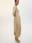 Сверкающее платье Whisper Of Sand — возрождение античной красоты в мягких и утонченных линиях. Ткань с добавлением вискозы нежно струится по коже, создавая изысканную драпировку, и красиво переливается на свету благодаря блестящим нитям люрекса. Выразительный силуэт с открытой спиной и акцентной юбкой с высоким разрезом восхищает с первого взгляда. Подбираем акцентные босоножки или мюли из нашей коллекции и наслаждаемся эффектным и подчеркнуто элегантным образом.